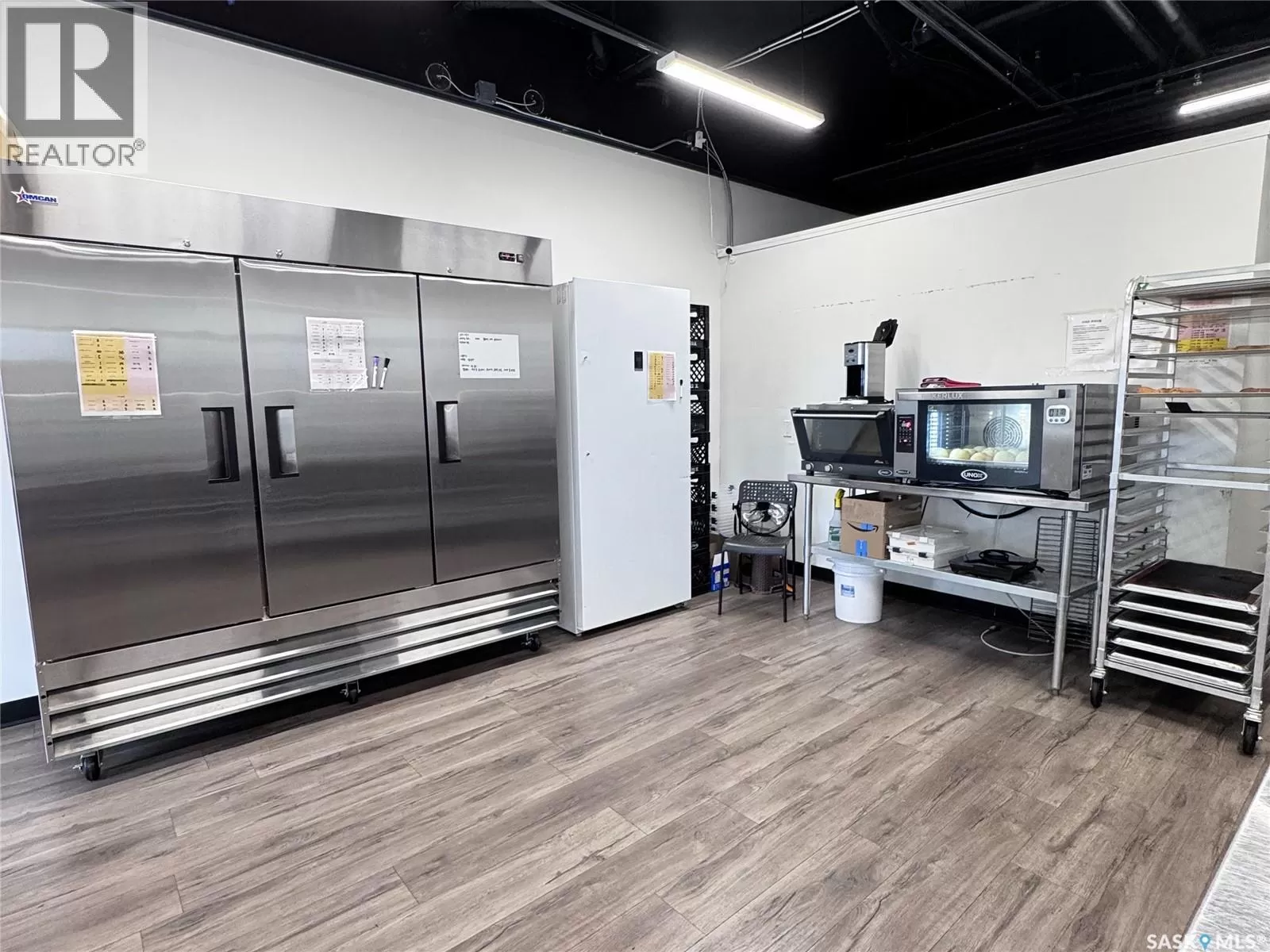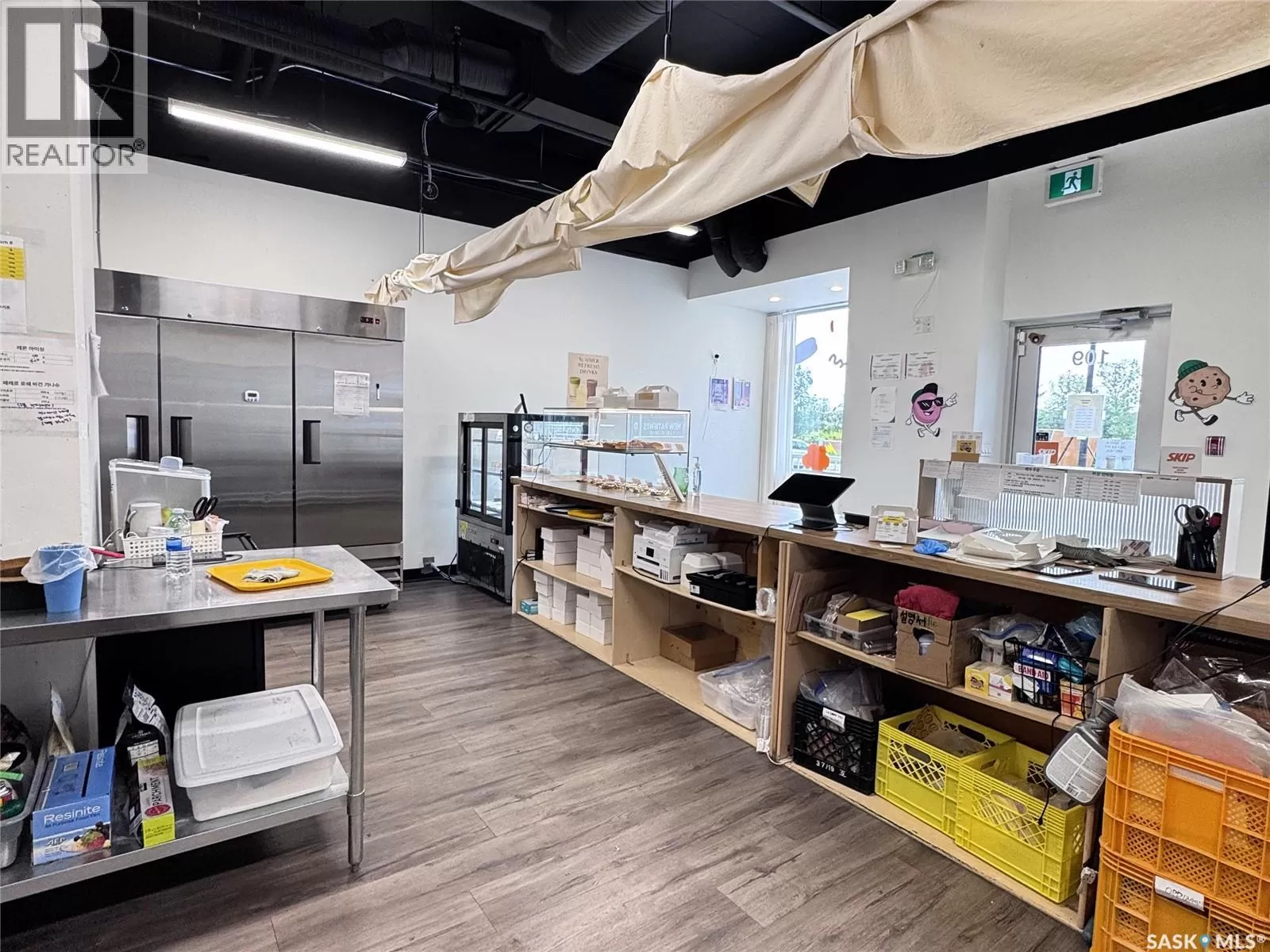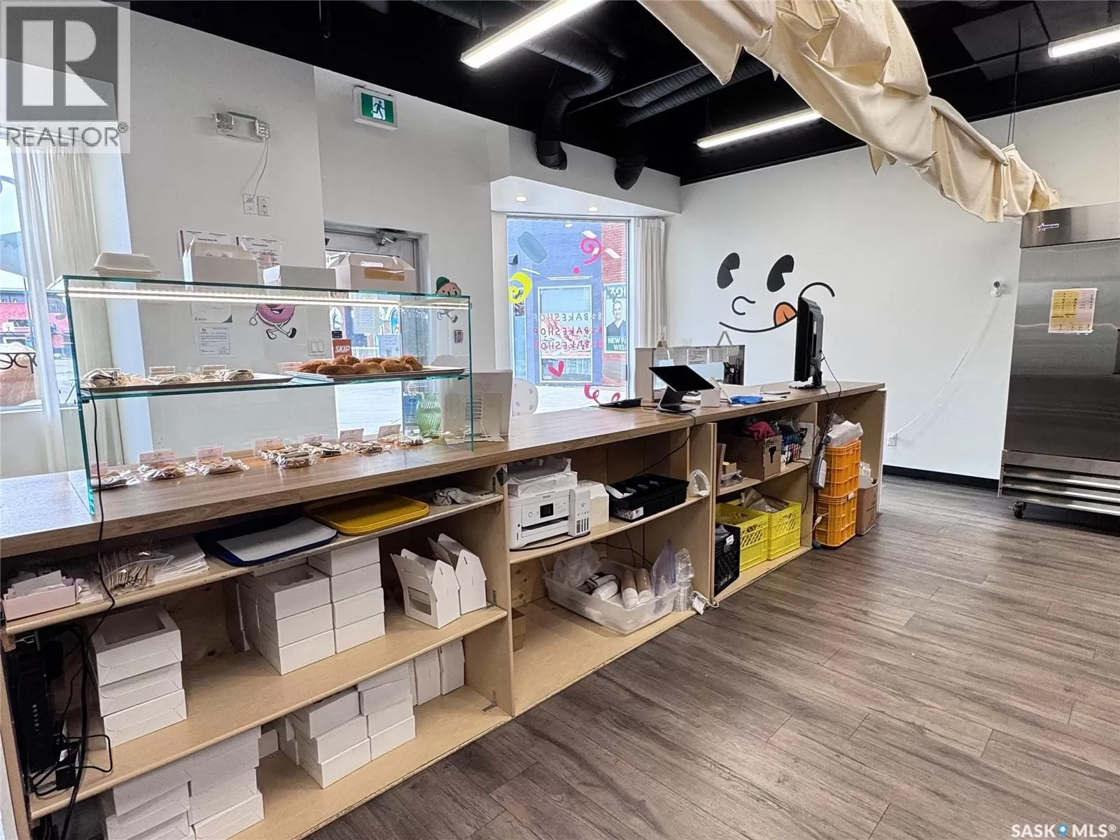 Rare opportunity for first-time business owners! Located in the heart of Willowgrove, this B1B-zoned retail unit in Gateway Plaza offers an affordable way to start your business with lower risk and strong growth potential. The plaza is directly across from Willowgrove and Holy Family Schools, with excellent exposure on Stensrud Rd and Willowgrove Blvd, surrounded by a safe, family-friendly neighbourhood. This fully finished 860 sqft unit includes a bathroom and comes with equipmentâideal for a dessert or takeout café. Currently operating as 82 Bakeshop, the owner is relocating, so vacant possession is available. The space is beautifully maintained with clean, modern interior finishes, requiring minimal work to get started. Whether you're opening a café, bakery, clothing boutique, or another retail concept, this unit is move-in ready. While currently set up for takeout, it can accommodate indoor tables as well. Foot traffic is strong to the current dessert shop and also to anchor tenants and new developments next door, bringing more visibility and future customers. Ample parking and a welcoming community make this a great business location. Donât miss this turnkey space in one of Saskatoonâs top neighbourhoods. (id:27476)