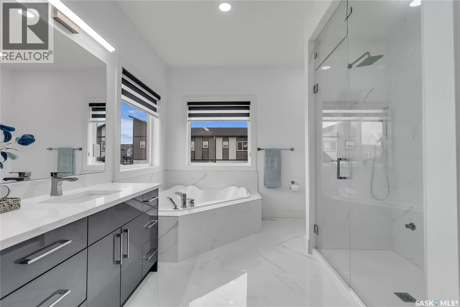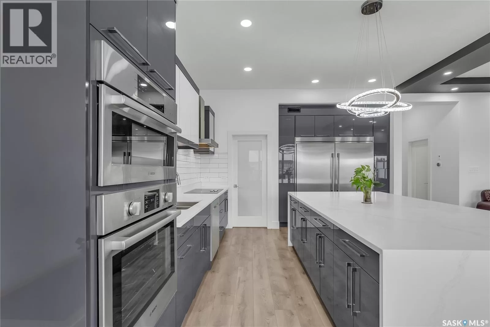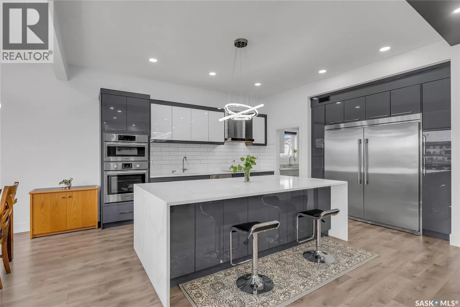 This one-of-a-kind 2,619 sq ft 2 storey home beams w/ modern elegance & the upmost quality. Walking into your foyer w/ oversized tile floors, chandelier, & elegant staircase leading you to the 2nd level. Main floor living space, w/ 10 ft ceilings, wide plank laminate flooring, upgraded trim/baseboards, tile feature wall, cove ceiling, recessed lighting, gas fireplace w/ stone accent, built-in sound system & motorized blinds. Leading to your dinette & kitchen w/ high-end appliances including dishwasher, glass top stove, built-in microwave & oven, Frigidaire fridge/freezer combo, custom vented hoodfan, soft-close cabinets, Calcutta quartz island w/ waterfall edge, custom backsplash/lighting pack. Equipped w/ a 2nd prep kitchen w/ quartz counter, backsplash, gas range w/ powerful exhaust fan, garburator, & walk-in pantry w/ custom shelving. Bedroom, 4pc bath w/ heated floors complete this floor. 2nd level primary bedroom, motorized blinds, ceiling fan, built-in speakers,walk-in closet w/ custom floor to ceiling mirror, ensuite w/ Calcutta quartz double vanity, jet soaker tub, tempered glass shower w/ tile surround, rainfall shower w/ steam option & heated tile flooring. 2 additional good sized bedrooms, 4-pc bath & walk-in laundry room w/ S.S sink & tile floors, additional bonus room w/ French doors & built in speakers, complete the 2nd floor. Basement equipped w/ full legal suite w/ separate entrance, laminate flooring, 2 bedrooms, separate laundry, SS appliances, 4pc bath w/ tile floors, quartz countertops, separate furnace/HRV unit. Additional bedroom in basement w/ 4pc ensuite that is in the owners side, but is being presently rented to tenant along with basement suite. Coming to your park backing yard, w/ upgraded metal fencing, oversized composite deck w/ glass aluminum railing, glass privacy screen, & BBQ gas line. Double attached heated garage w/ high ceilings, upgraded triple car driveway, security cameras, 2ft concrete apron around the home. B'ment rent $1700 (id:27476)