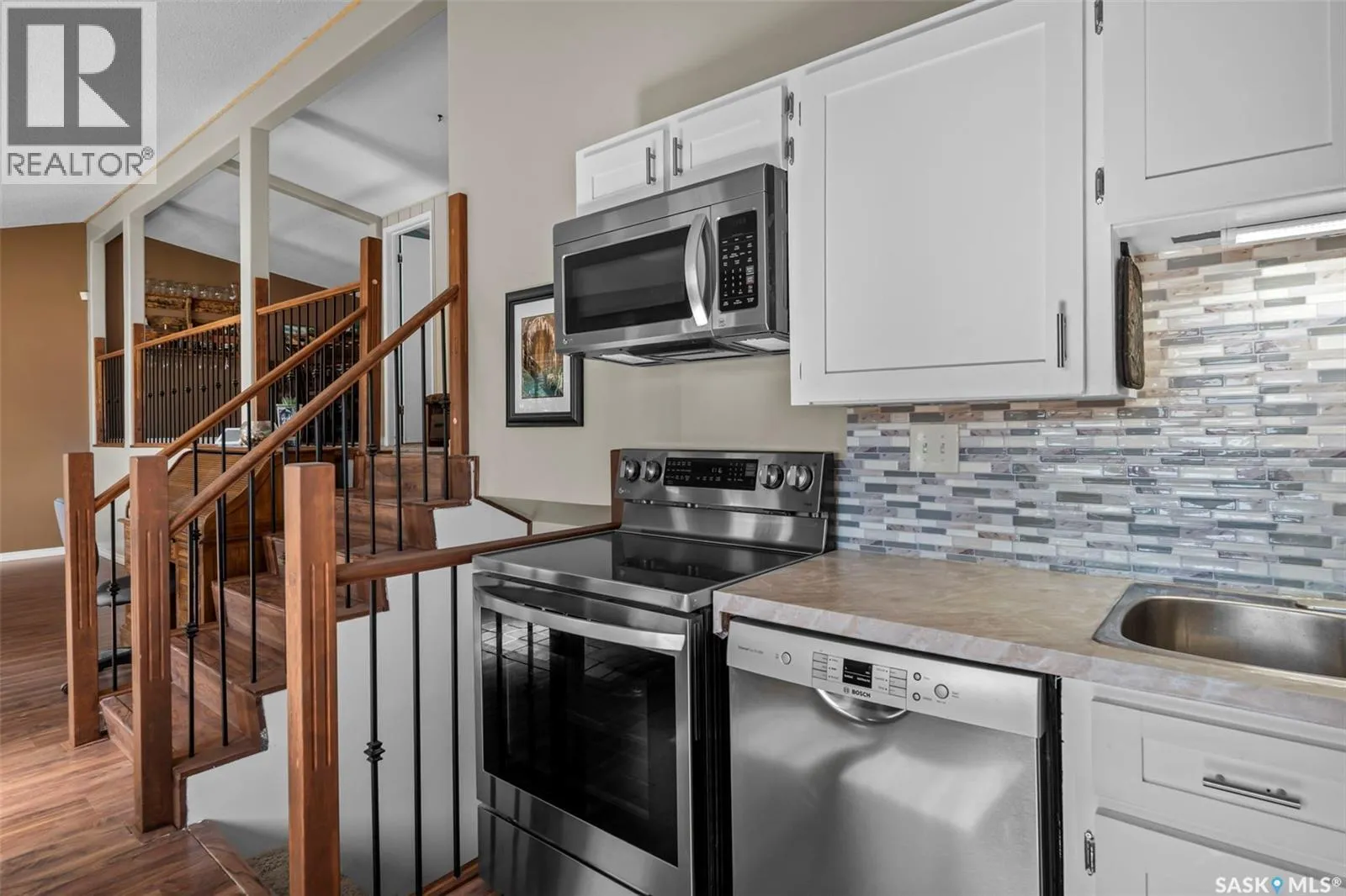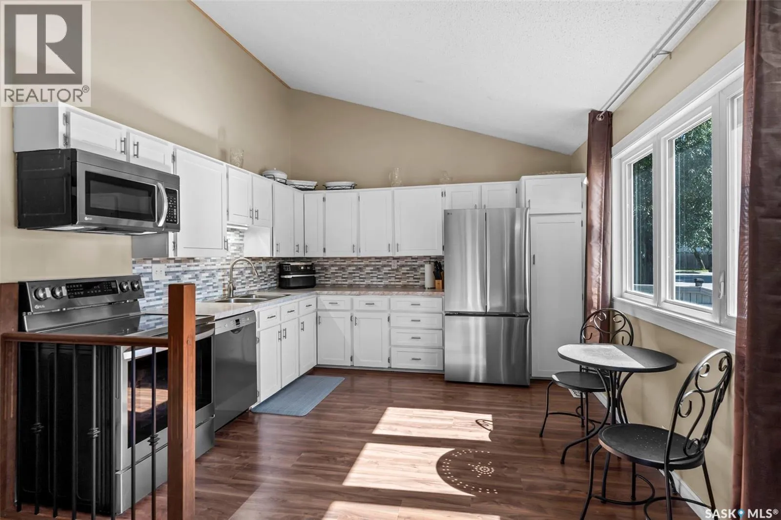 Welcome to 178 Neatby Crescent, located in the desirable Parkridge neighborhood. This spacious and well-maintained home offers 1,738 square feet above grade in a quiet, family-friendly area close to schools, the Shaw Centre, and a variety of nearby amenities. The main floor features an extremely spacious kitchen and dining area with vaulted ceilings. Two bedrooms and a full bathroom, along with a flex space currently set up as a bar area, flow seamlessly into the back family room, which provides direct access to the deck and a fully fenced private yard that backs onto green space. The upper-level addition is entirely dedicated to the primary suite, complete with a walk-in closet. The lower level offers additional living space with a partially finished bedroom and den, living room, and a back entry mudroom featuring laundry, storage, and a two-piece bathroom. A separate entrance adds potential for a future suite. Recent updates include central air conditioning units, furnaces, new siding, triple pane windows, and shinglesâreplaced two years ago on the main house and eight years ago on the addition. This exceptional home combines space, comfort, and convenience, making it an ideal choice for your next chapter in Parkridge. (id:27476)