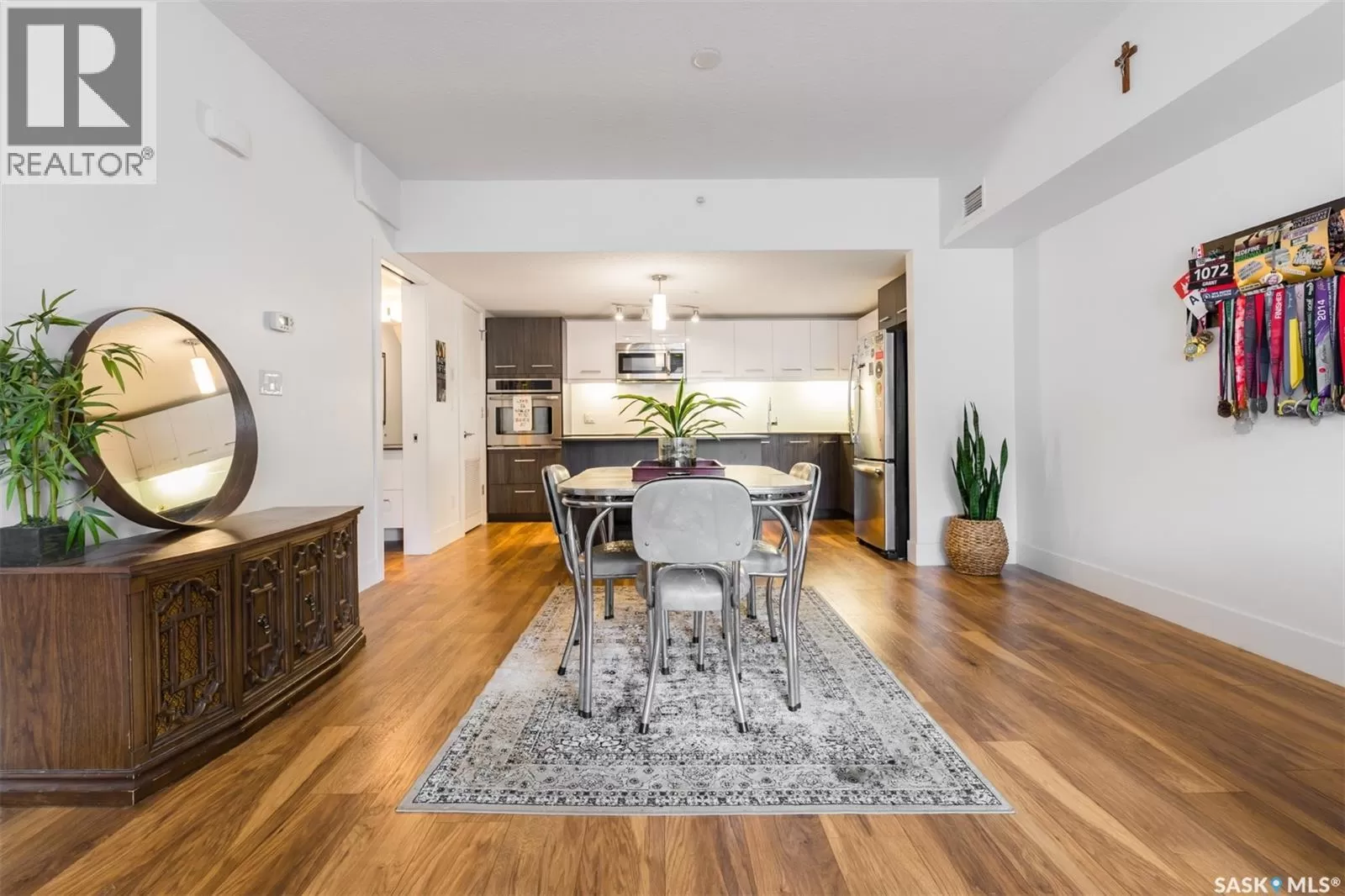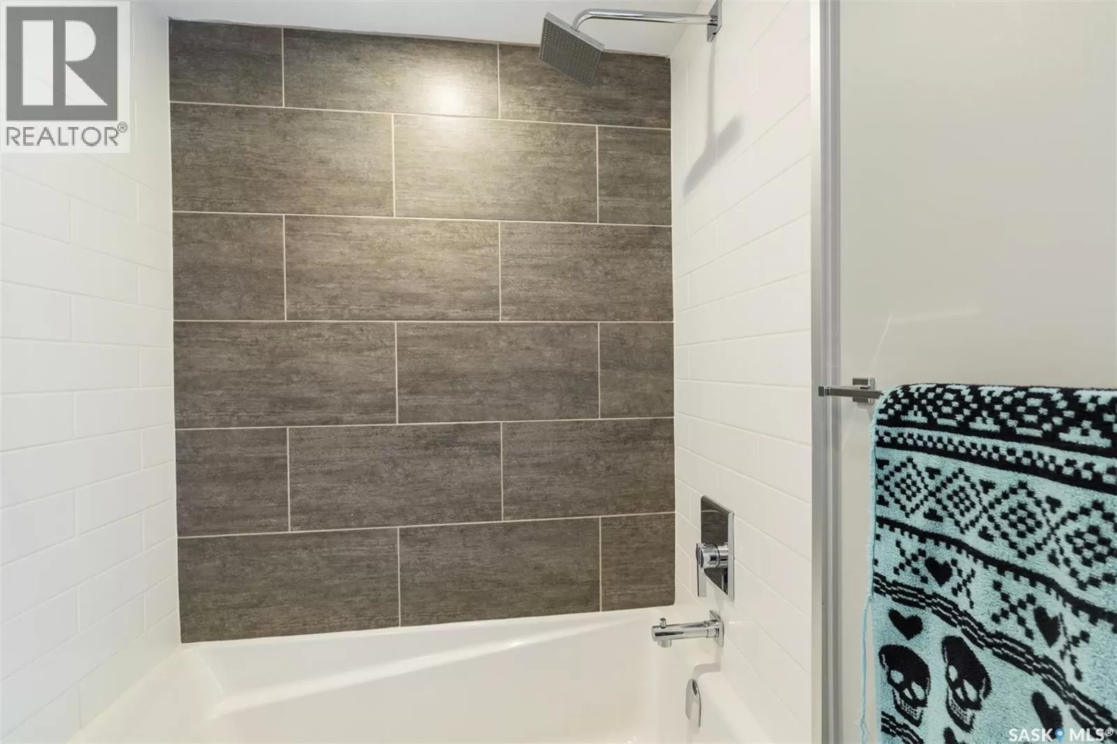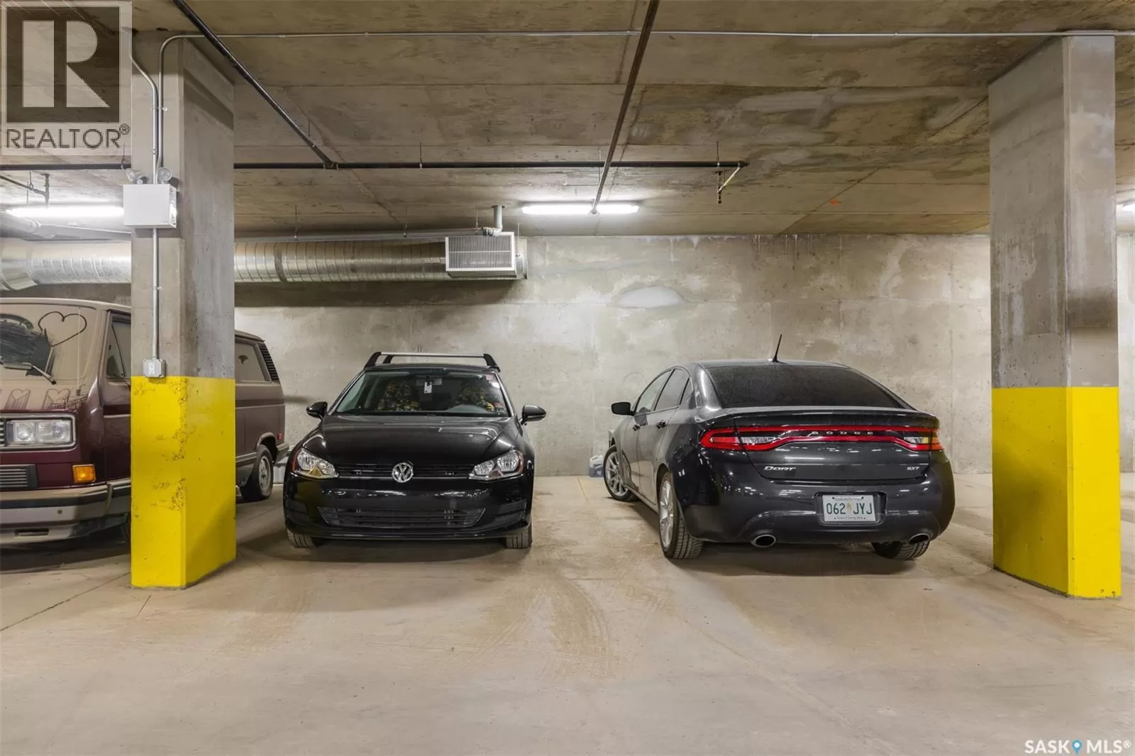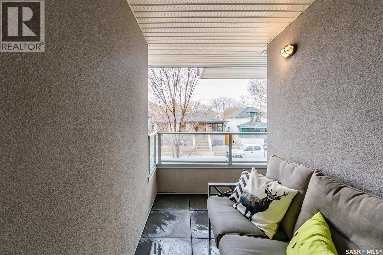 Enjoy downtown living in this newer, modern townhome located steps to the river. Well constructed and completed in 2017, this home is part of the popular Banks complex. Featuring 2 bedrooms, 3 bathrooms, an open concept layout on the main floor with lots of cabinetry and quartz countertops as well as stainless steel appliances, a Napoleon fireplace with new surround in the living room, a concrete feature wall and a two piece modern bath. Upstairs you will find a three piece bath with tiled shower and glass door, a Bosch washer and dryer, spacious primary bedroom with 4 piece en-suite and an additional bedroom both with balcony doors leading to a covered deck overlooking Avenue C. Brand new carpet throughout the upstairs and on the staircase. The townhome comes with TWO titled, heated underground side-by-side stalls and a storage unit. Other features include central air, natural gas hook-up for bbq, underground parking for your guests, rooftop deck and bike room. With only a few of these two-story style townhomes built, this is definitely a rare find. Enjoy the convenient location with many amenities close by including the newest restaurants, boutique shops and coffee spots. (id:27476)