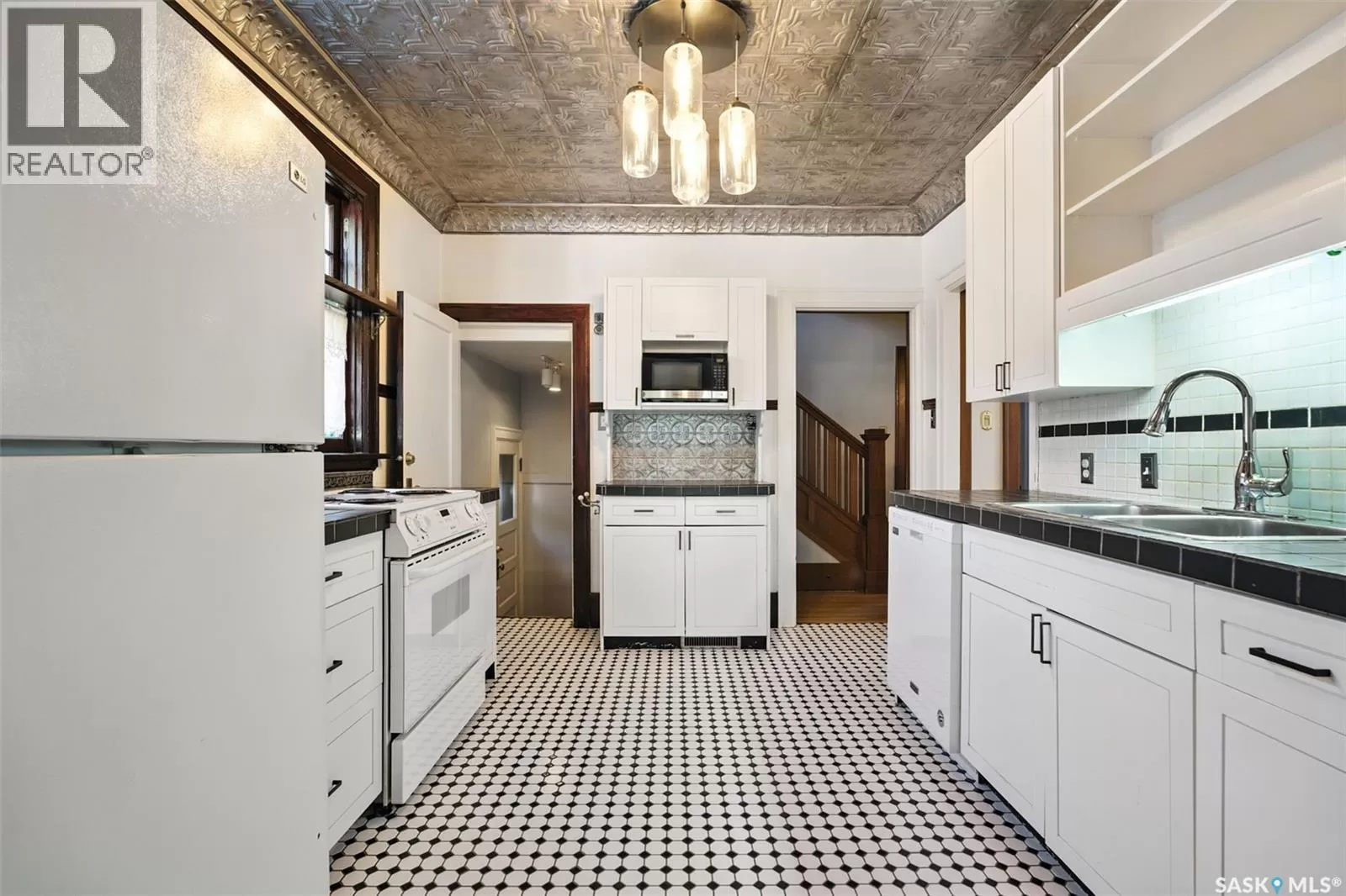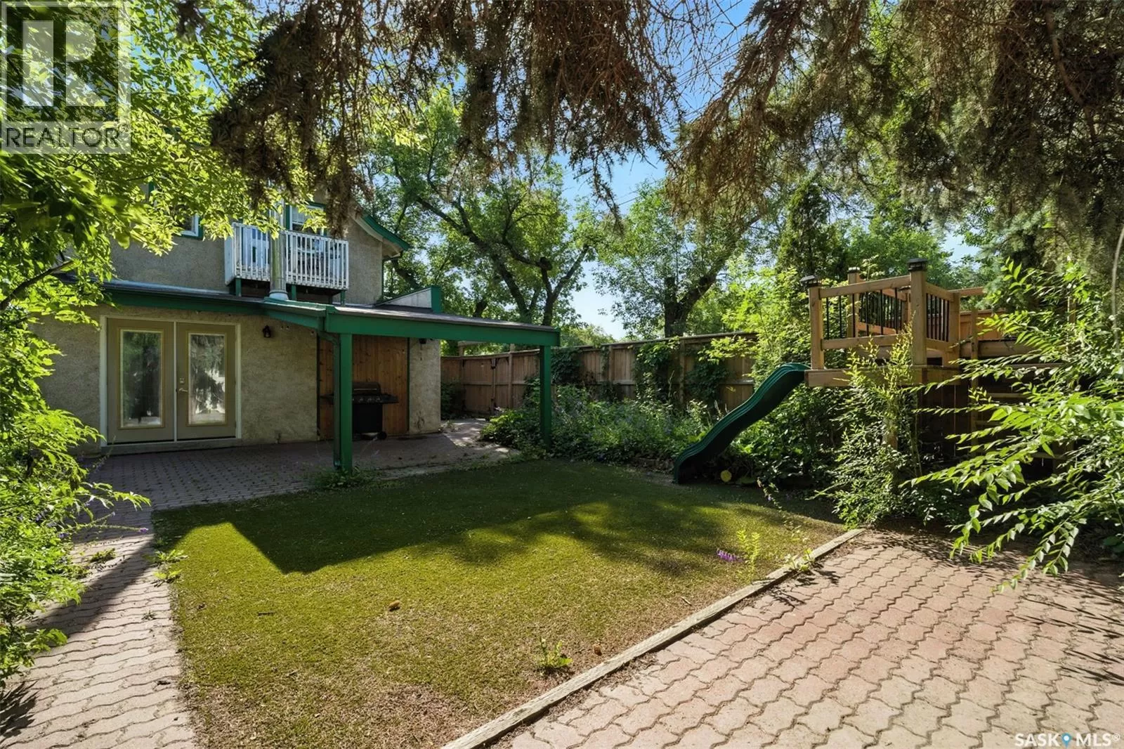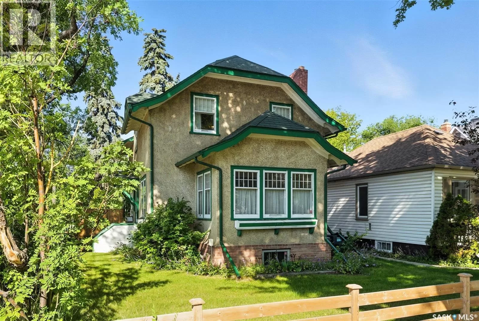 Wow!! Outstanding character home in trendy walkable Nutana/Broadway neighbourhood. This beautiful home is in move-in condition and feat. hardwood floors, gorgeous chef's kitchen with white shaker cabinets with tin ceiling, large formal dining room, Large living room with wood fireplace with a side bright sunroom, family room with wood fireplace overlooking a mature, private back yard, with covered patio with paving stones and turf creating a low-maintenance backyard. This home is made to entertain and host your family and friends. The 2nd floor features a large primary with double closets, two other bedrooms, one with a second-floor deck, and a 4pc bathroom. Great basement development, including a one-bedroom suite that could help with your mortgage. A large Laundry/ Utility room with tons of storage. Old world charm in a much-desired locale. A large 23x23 detached garage to park your vehicles and toys. This one is a true gem and won't last!! Call your favourite realtor for a private viewing!! QUICK Possession available!! (id:27476)