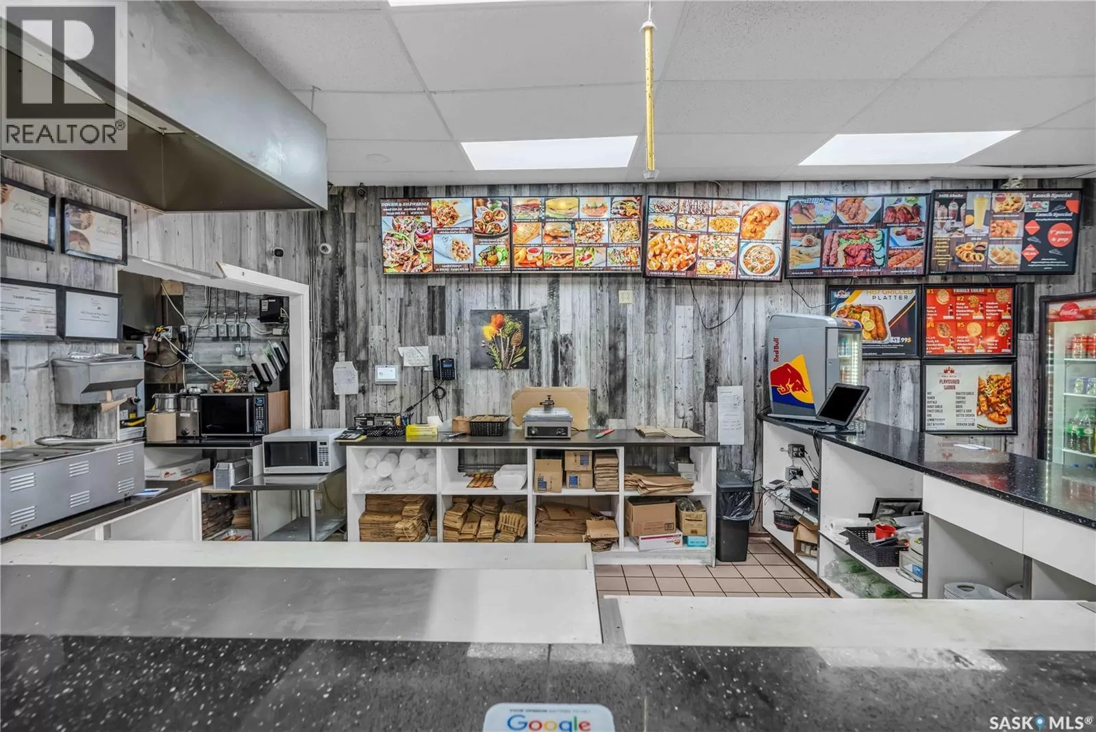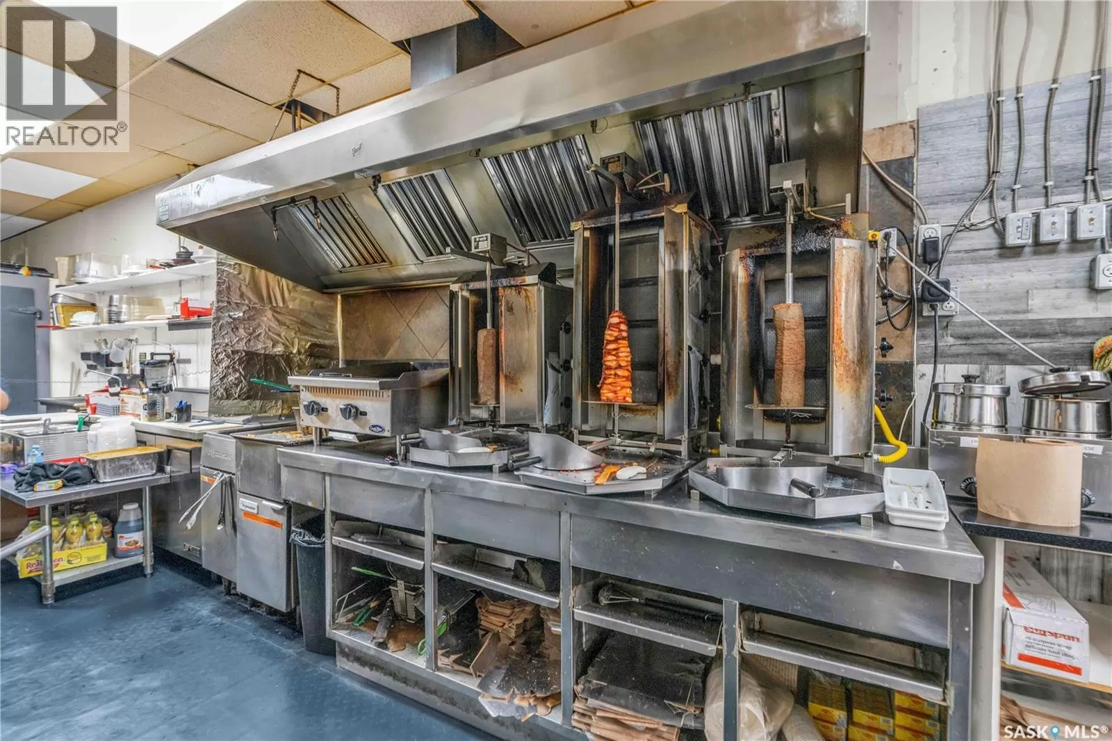 Ready to Invest in Saskatoon? Check out this turn key restaurant with a low monthly rent of only $3700! H67 Donair and Pizza Palace. Perfect for owner/operators to take over and located on one of the busiest streets in Saskatoon. This restaurant sells some of the highest margin foods, including pizza and donairs. Features include a fully equipped kitchen with walk in cooler, walk in freezer, pizza oven, donair machines, dough mixers, refrigerated prep tables, multiple hoods and seating for 45+ people. Interior renovated in 2021, including new booths, counters, screens for menus and CCTV security system. This is a great chance to step into a restaurant with strong potential, established loyal customer base and low overhead in one of Saskatoonâs busiest corridors. SINP and LMIA eligible. (id:27476)