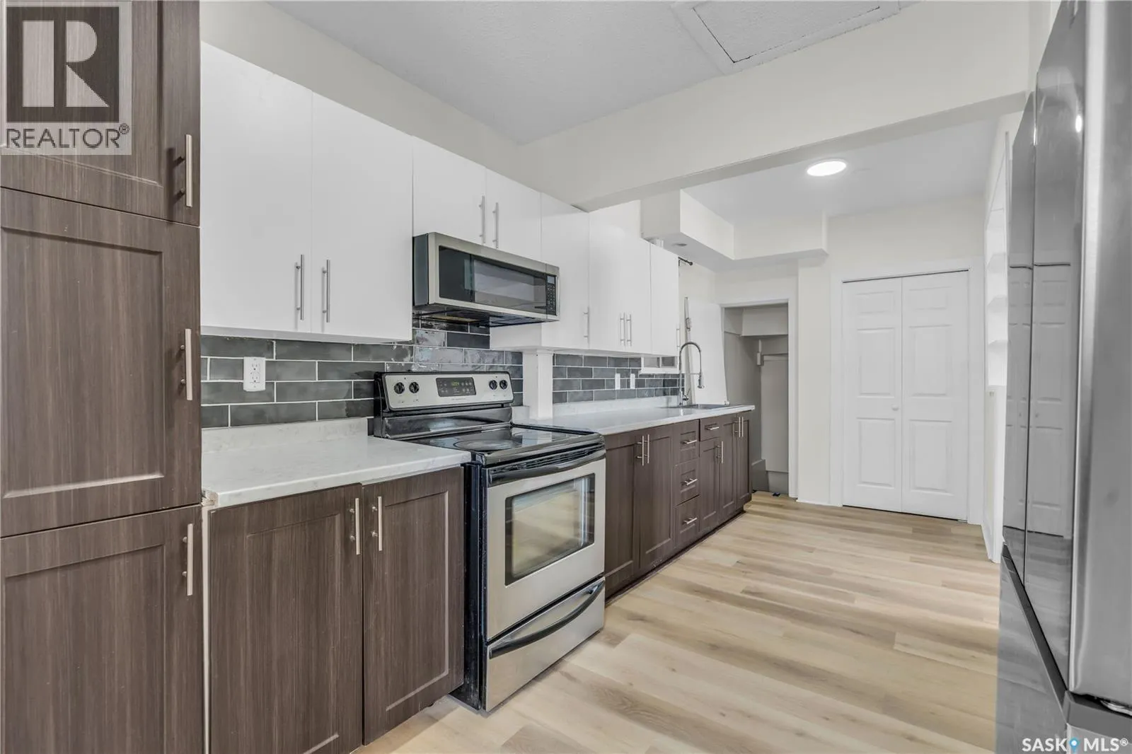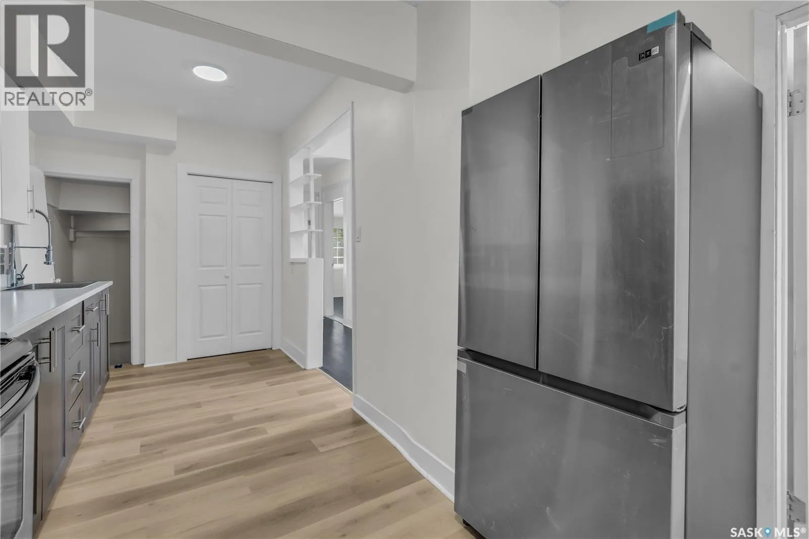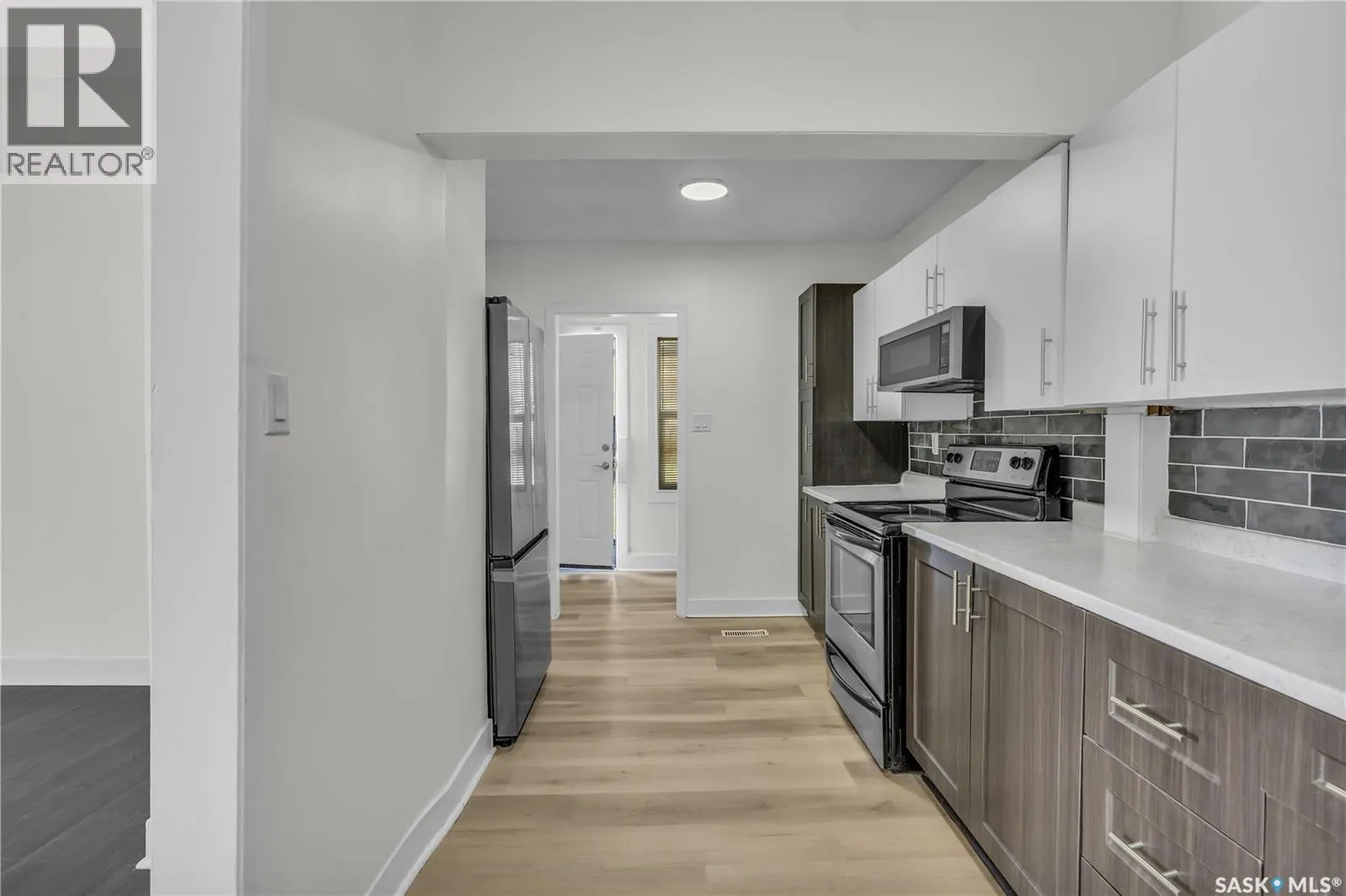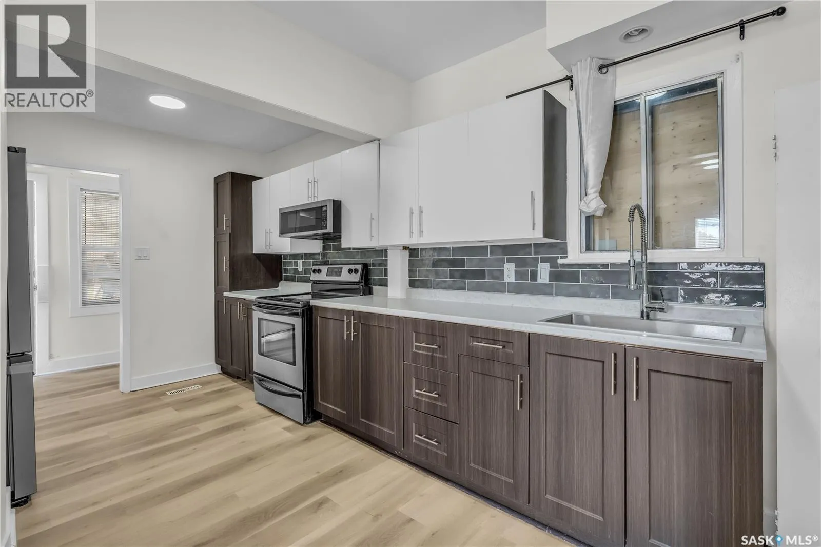 This newly upgraded 1½ storey home in Riversdale offers excellent potential with a blend of modern updates and functional living space. Featuring 3 bedrooms and 2 bathrooms, the main floor includes a bedroom, a versatile office/den, a spacious living room, a renovated kitchen with pantry and dining area, a back mudroom, and a stylish 3-piece bathroom with tile and glass shower. Upstairs you will find two additional bedrooms and a refreshed 4-piece bathroom with new bathtub and surround, while the fully finished basement provides a family room, laundry area, utility space, and extra storage. The property boasts a fully fenced and gated yard with a low-profile deck, interlocking brick patio, garden area, a large shed, and an interlocking brick driveway with parking for two vehicles. Recent upgrades include new painting, kitchen renovation, vinyl plank flooring, and light fixtures (2025), shingles (2020), flooring (2019), windows (2012, 2023/24), a high-efficiency furnace (2012), and electrical updates (2023). With immediate possession available, this home is move-in ready and offers flexibility as a comfortable family residence or an income-generating rental property. (id:27476)