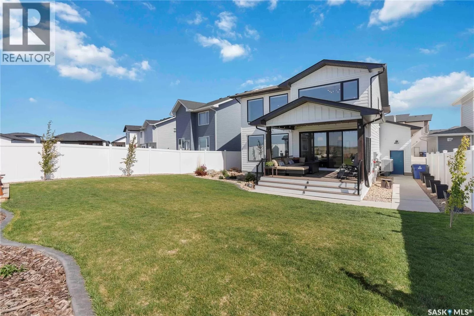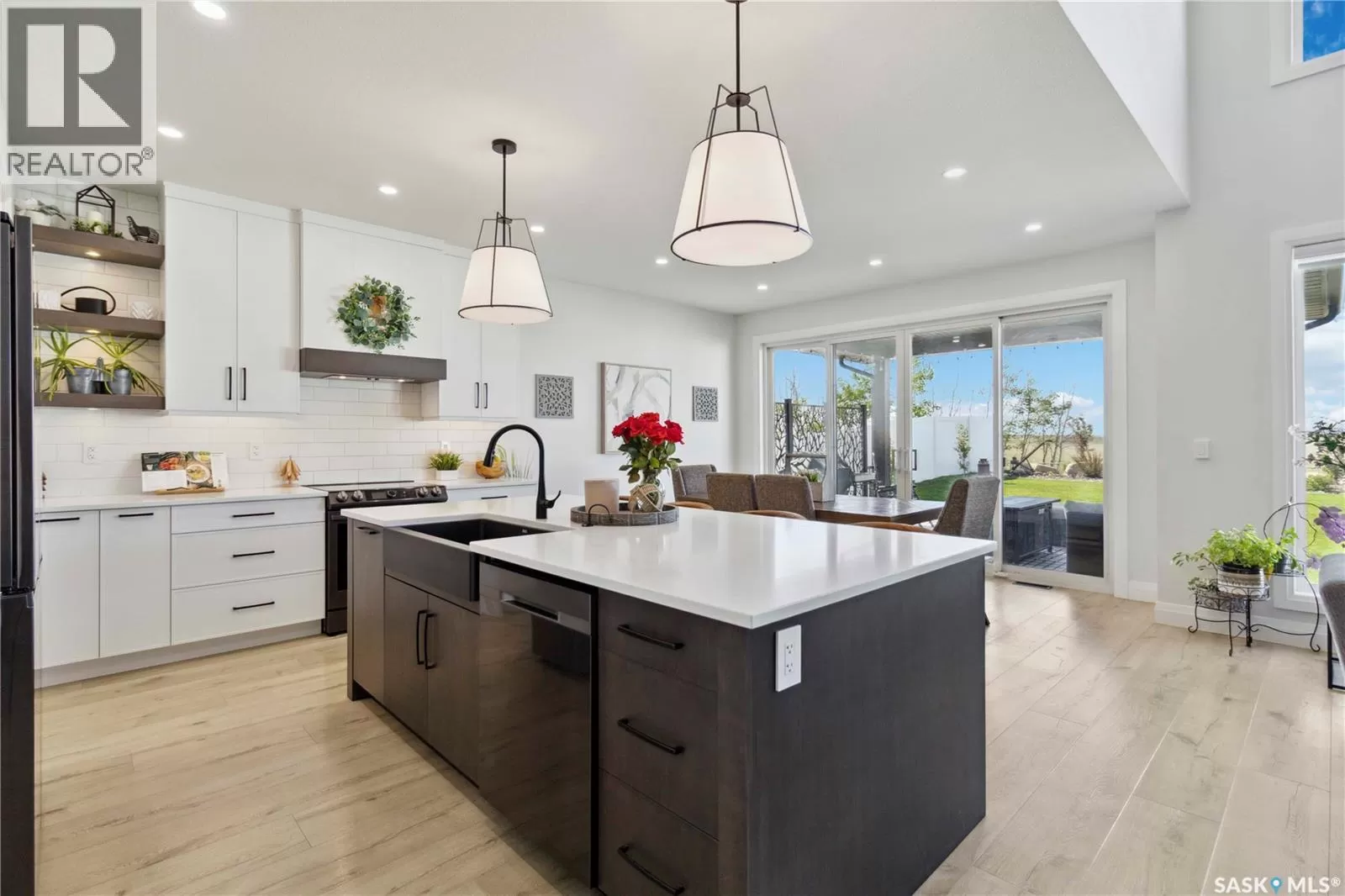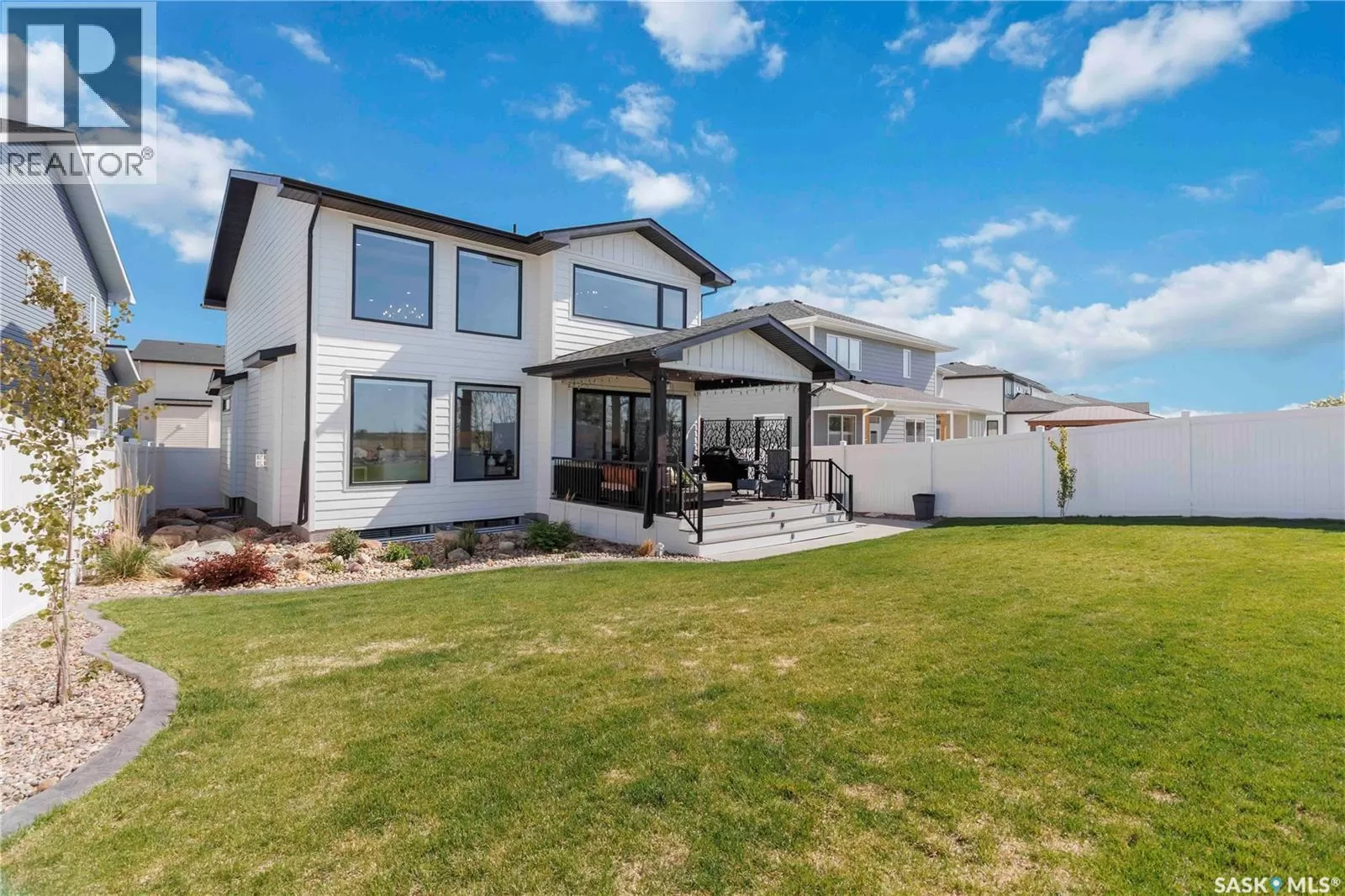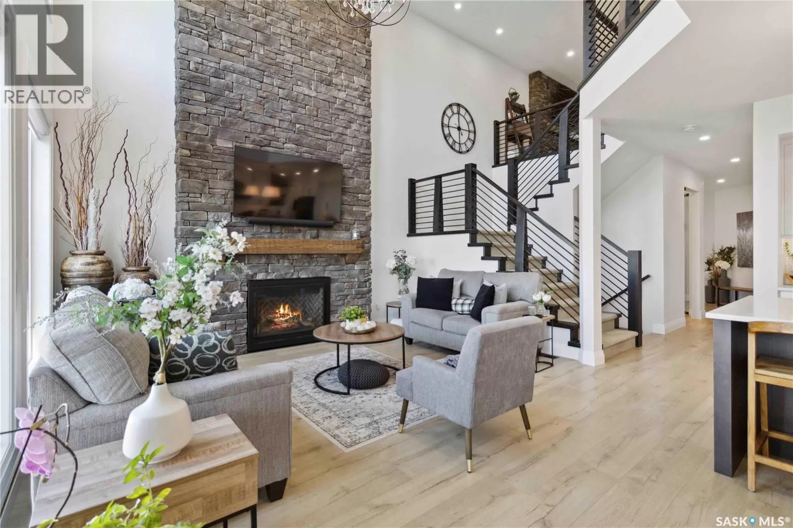 Welcome to this stunning, meticulously designed home in one of Saskatoon's most sought-after neighbourhoods. From the moment you step inside, youâre greeted by soaring ceilings, abundant natural light, and a beautifully open-concept main floor thatâs perfect for both everyday living and entertaining. The spacious kitchen is a chefâs dream, featuring sleek quartz countertops, black stainless steel appliances, a separate walk-in pantry, and a convenient bar fridge for added functionality. The adjacent living room is a showstopper, centered around a gas fireplace with a dramatic floor-to-ceiling feature wall, creating a cozy yet sophisticated ambiance. A dedicated main floor office provides the perfect space for working from home. The fully developed basement extends your living space with a family room, wet bar, additional bedroom, and full bathroomâideal for guests or entertaining. Situated on a huge, fully landscaped lot, this home offers privacy and tranquility with no neighbours behind. A garden shed adds extra outdoor storage, and the yard is perfect for enjoying Saskatoon's beautiful seasons. This home truly has it allâstyle, space, and a prime location. (id:27476)
