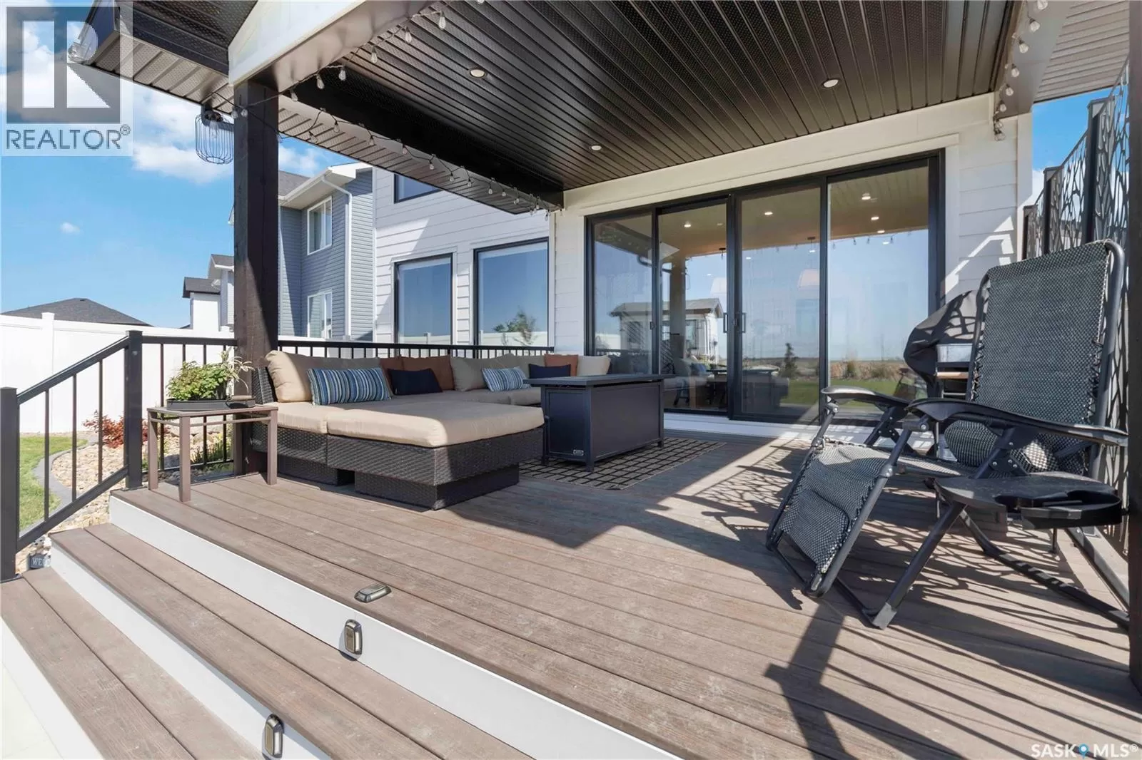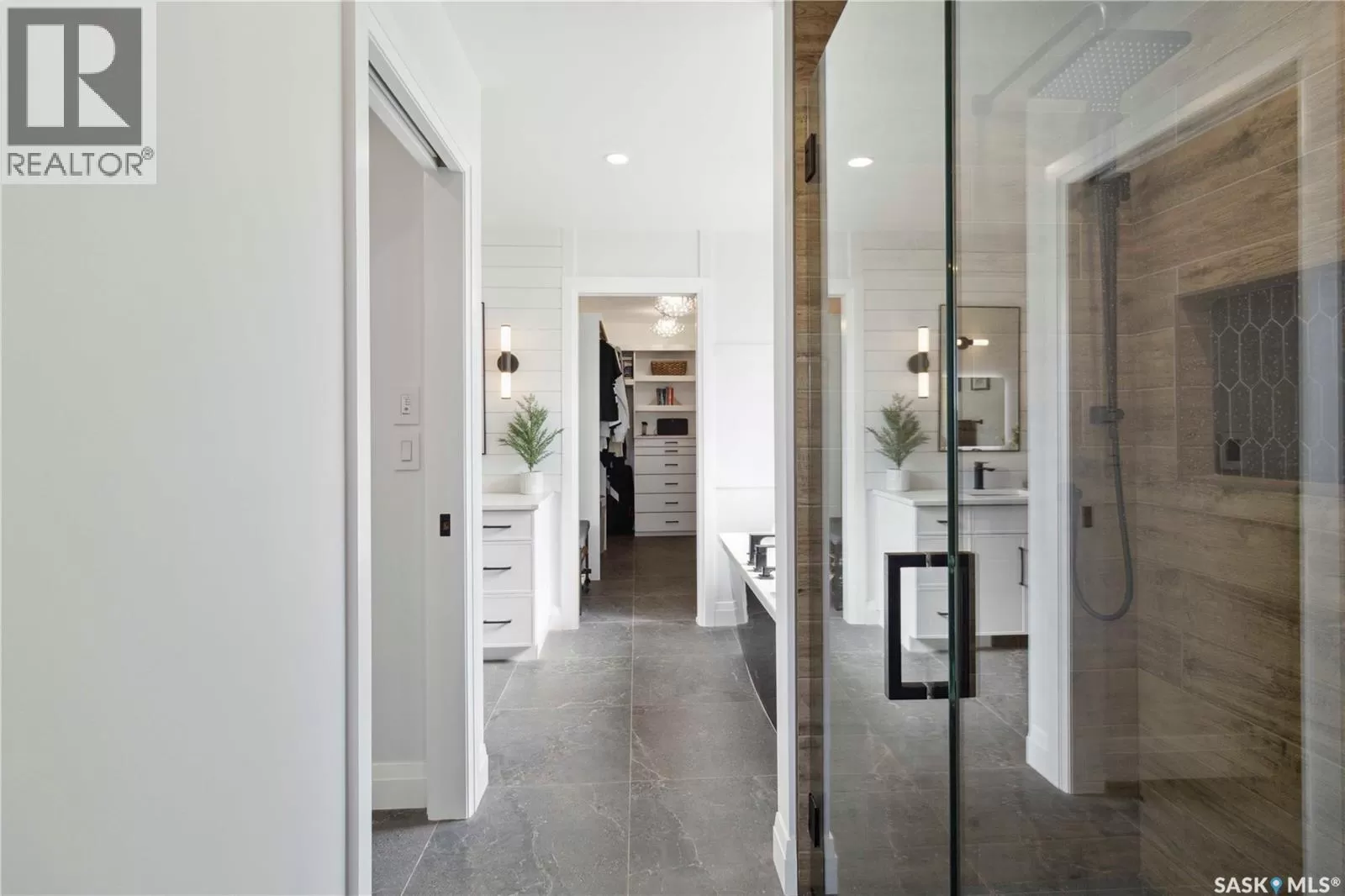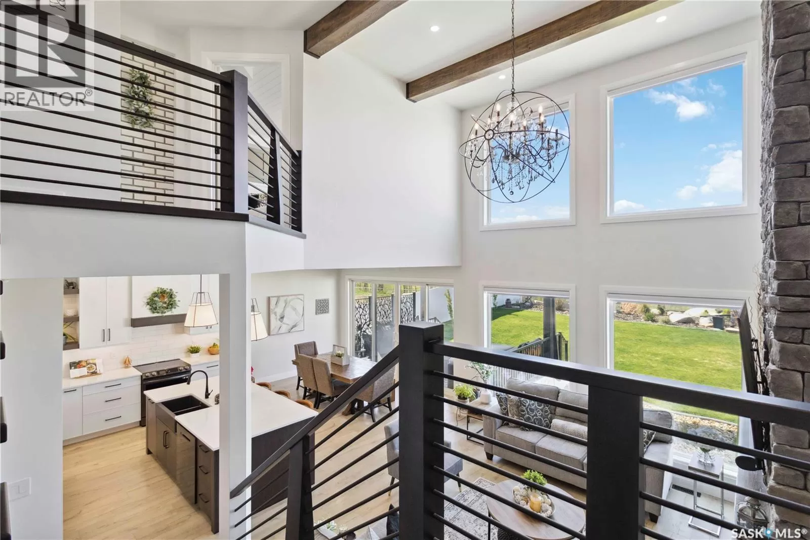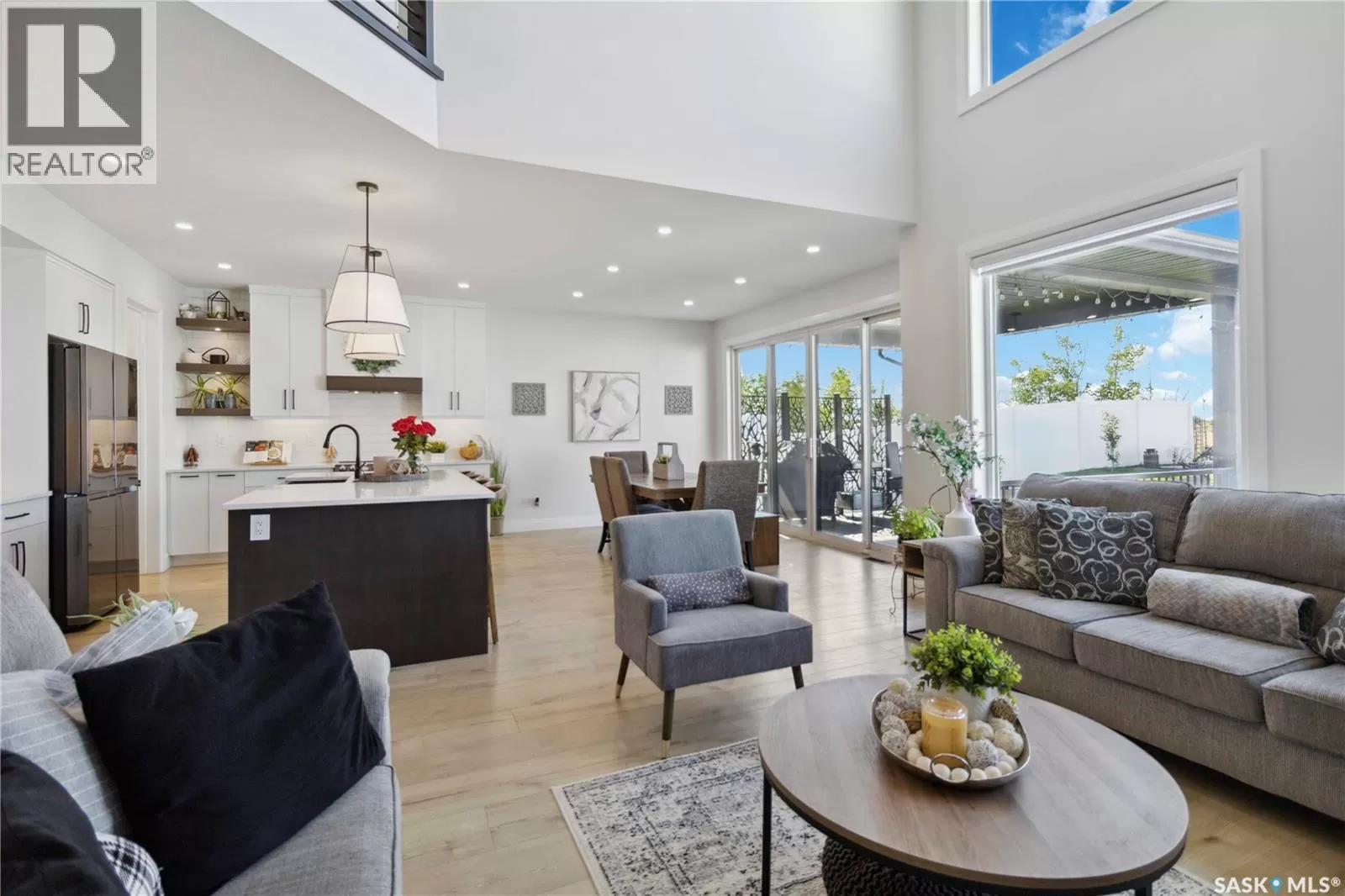 Welcome to this stunning, meticulously designed home in one of Saskatoon's most sought-after neighbourhoods. From the moment you step inside, youâre greeted by soaring ceilings, abundant natural light, and a beautifully open-concept main floor thatâs perfect for both everyday living and entertaining. The spacious kitchen is a chefâs dream, featuring sleek quartz countertops, black stainless steel appliances, a separate walk-in pantry, and a convenient bar fridge for added functionality. The adjacent living room is a showstopper, centered around a gas fireplace with a dramatic floor-to-ceiling feature wall, creating a cozy yet sophisticated ambiance. A dedicated main floor office provides the perfect space for working from home. The fully developed basement extends your living space with a family room, wet bar, additional bedroom, and full bathroomâideal for guests or entertaining. Situated on a huge, fully landscaped lot, this home offers privacy and tranquility with no neighbours behind. A garden shed adds extra outdoor storage, and the yard is perfect for enjoying Saskatoon's beautiful seasons. This home truly has it allâstyle, space, and a prime location. (id:27476)