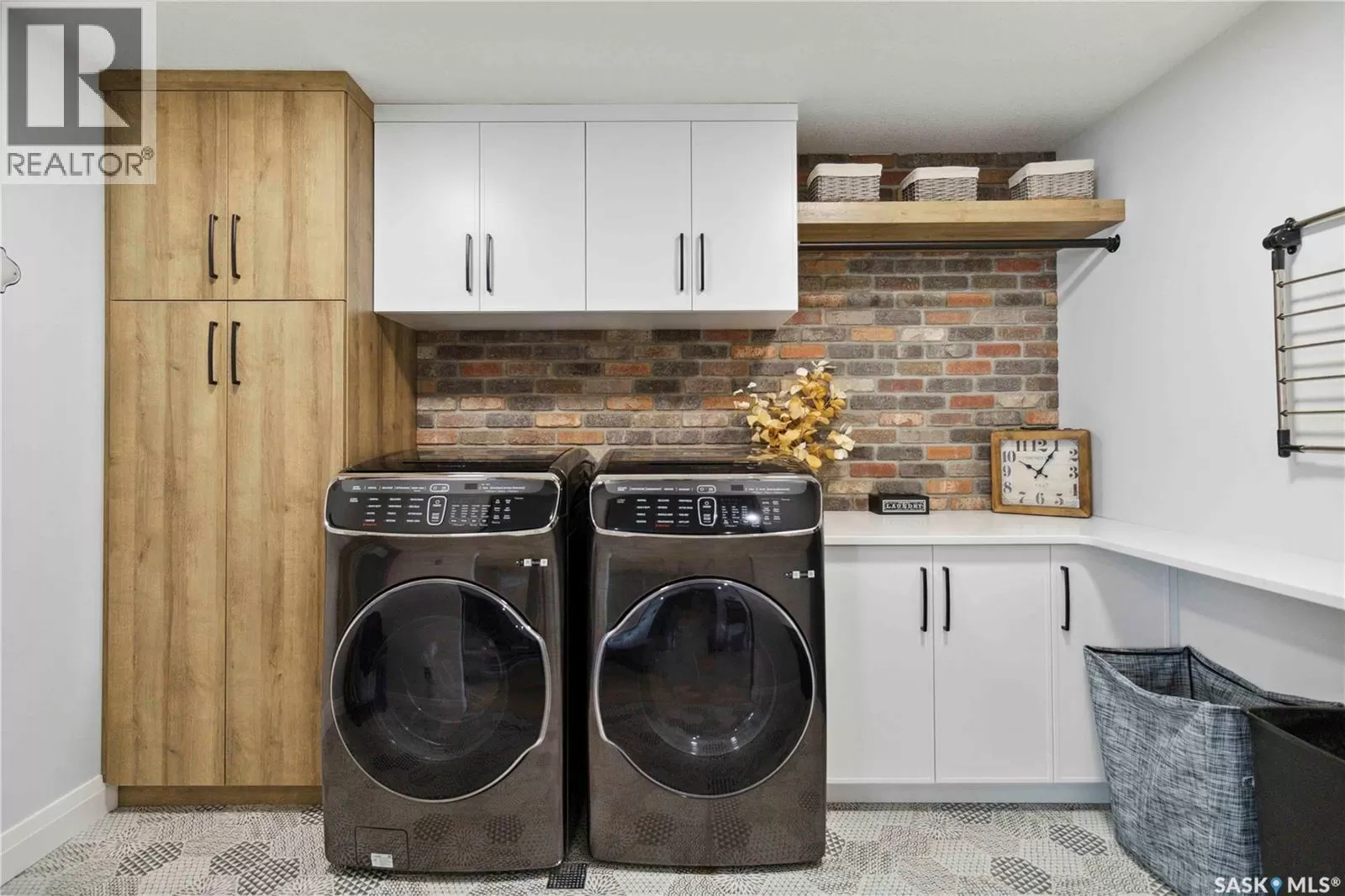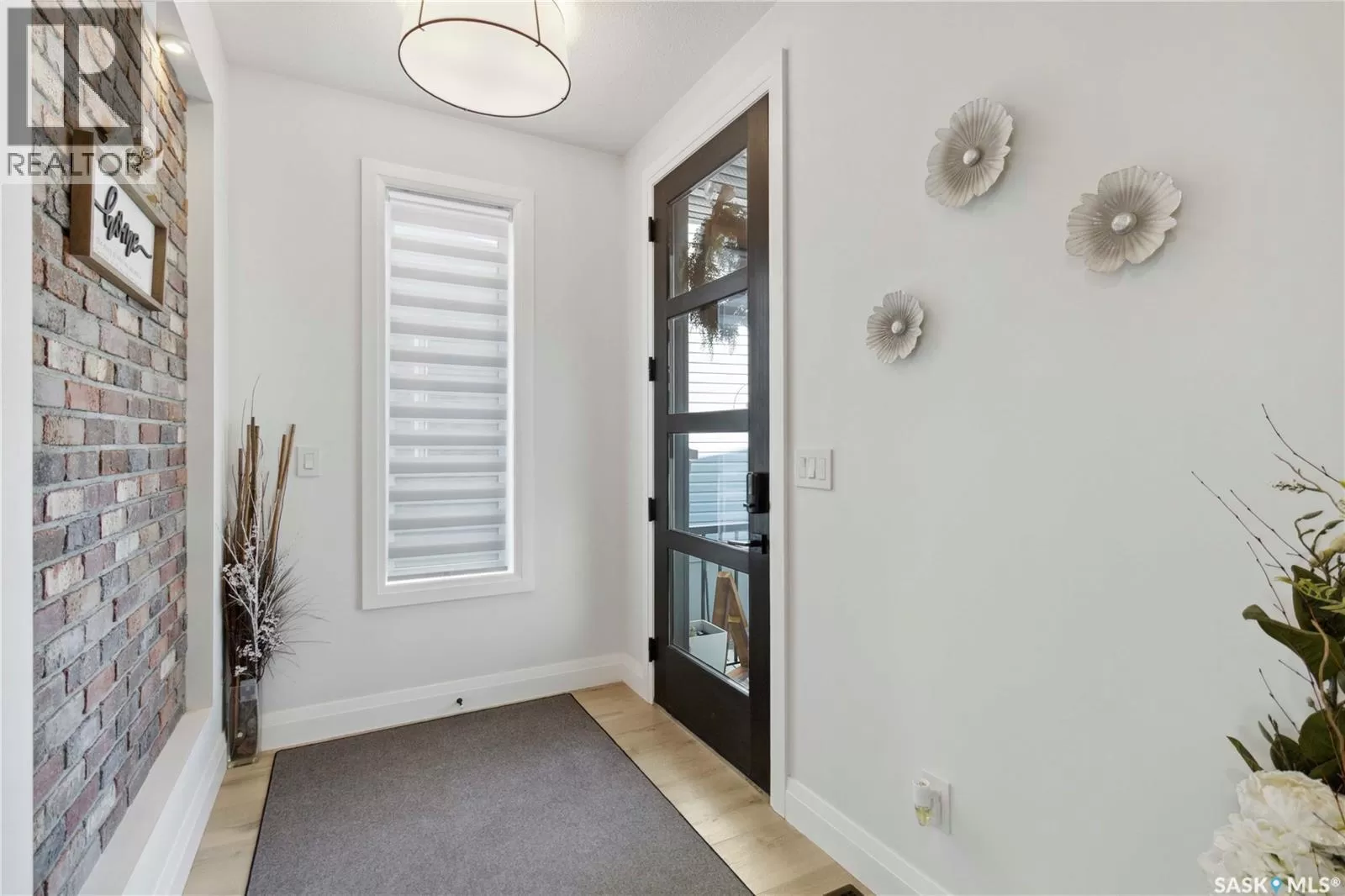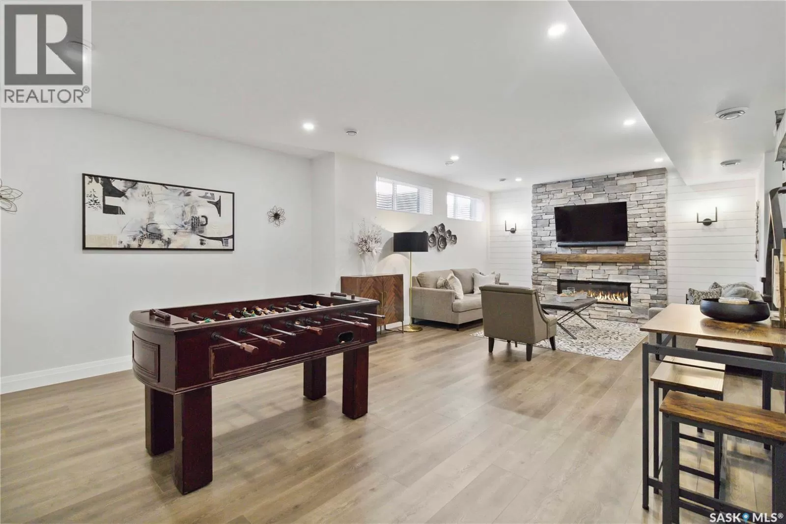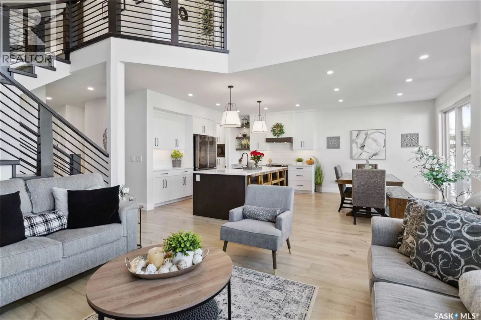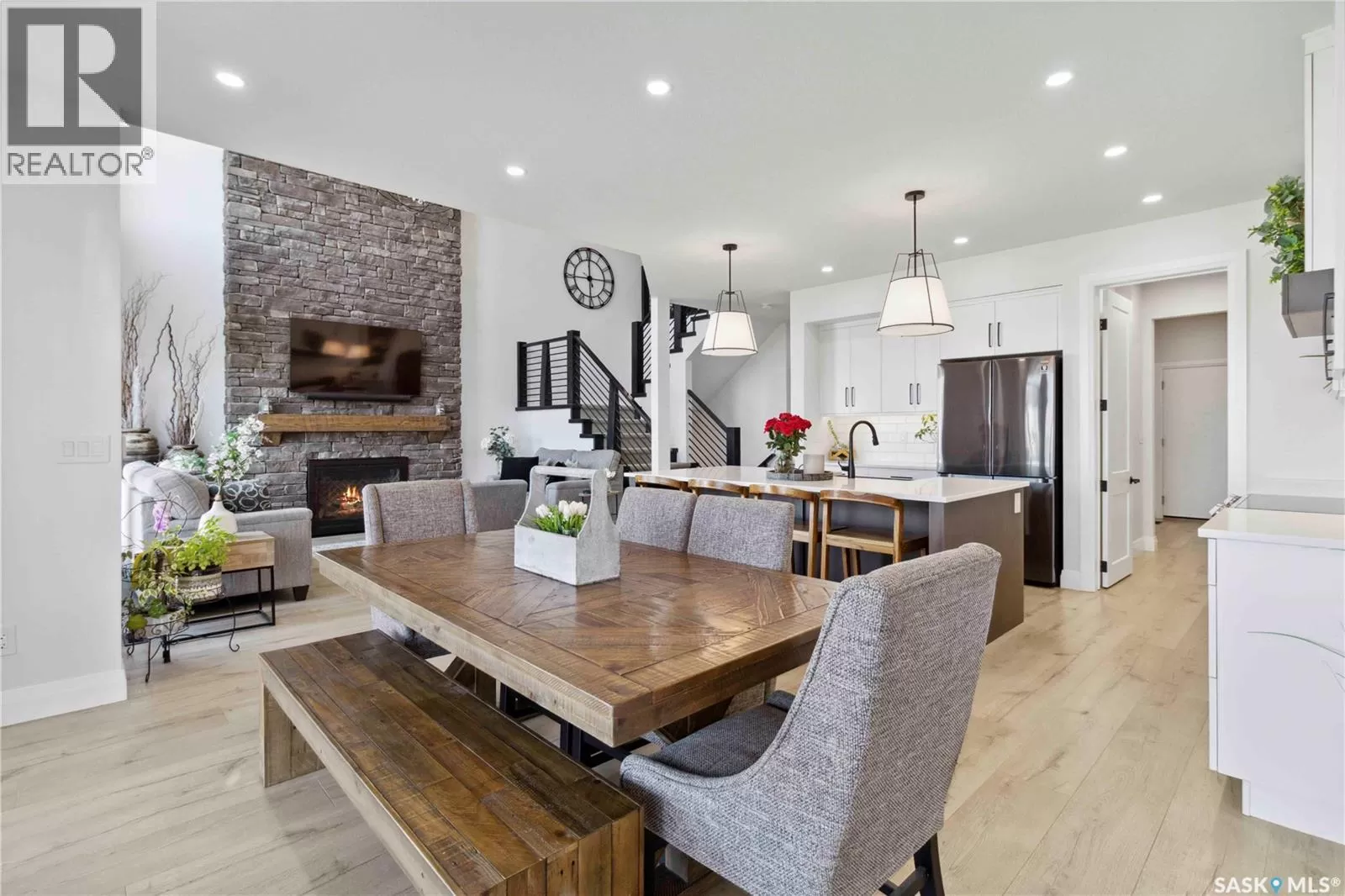 Welcome to this stunning, meticulously designed home in one of Saskatoon's most sought-after neighbourhoods. From the moment you step inside, youâre greeted by soaring ceilings, abundant natural light, and a beautifully open-concept main floor thatâs perfect for both everyday living and entertaining. The spacious kitchen is a chefâs dream, featuring sleek quartz countertops, black stainless steel appliances, a separate walk-in pantry, and a convenient bar fridge for added functionality. The adjacent living room is a showstopper, centered around a gas fireplace with a dramatic floor-to-ceiling feature wall, creating a cozy yet sophisticated ambiance. A dedicated main floor office provides the perfect space for working from home. The fully developed basement extends your living space with a family room, wet bar, additional bedroom, and full bathroomâideal for guests or entertaining. Situated on a huge, fully landscaped lot, this home offers privacy and tranquility with no neighbours behind. A garden shed adds extra outdoor storage, and the yard is perfect for enjoying Saskatoon's beautiful seasons. This home truly has it allâstyle, space, and a prime location. (id:27476)