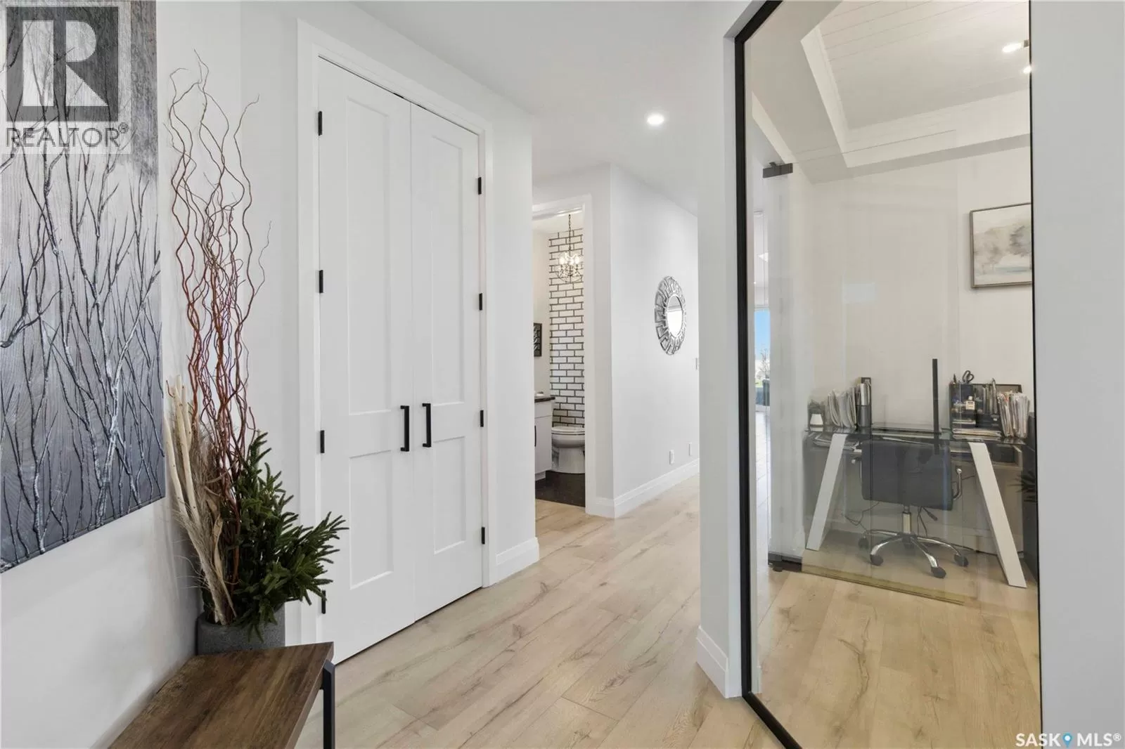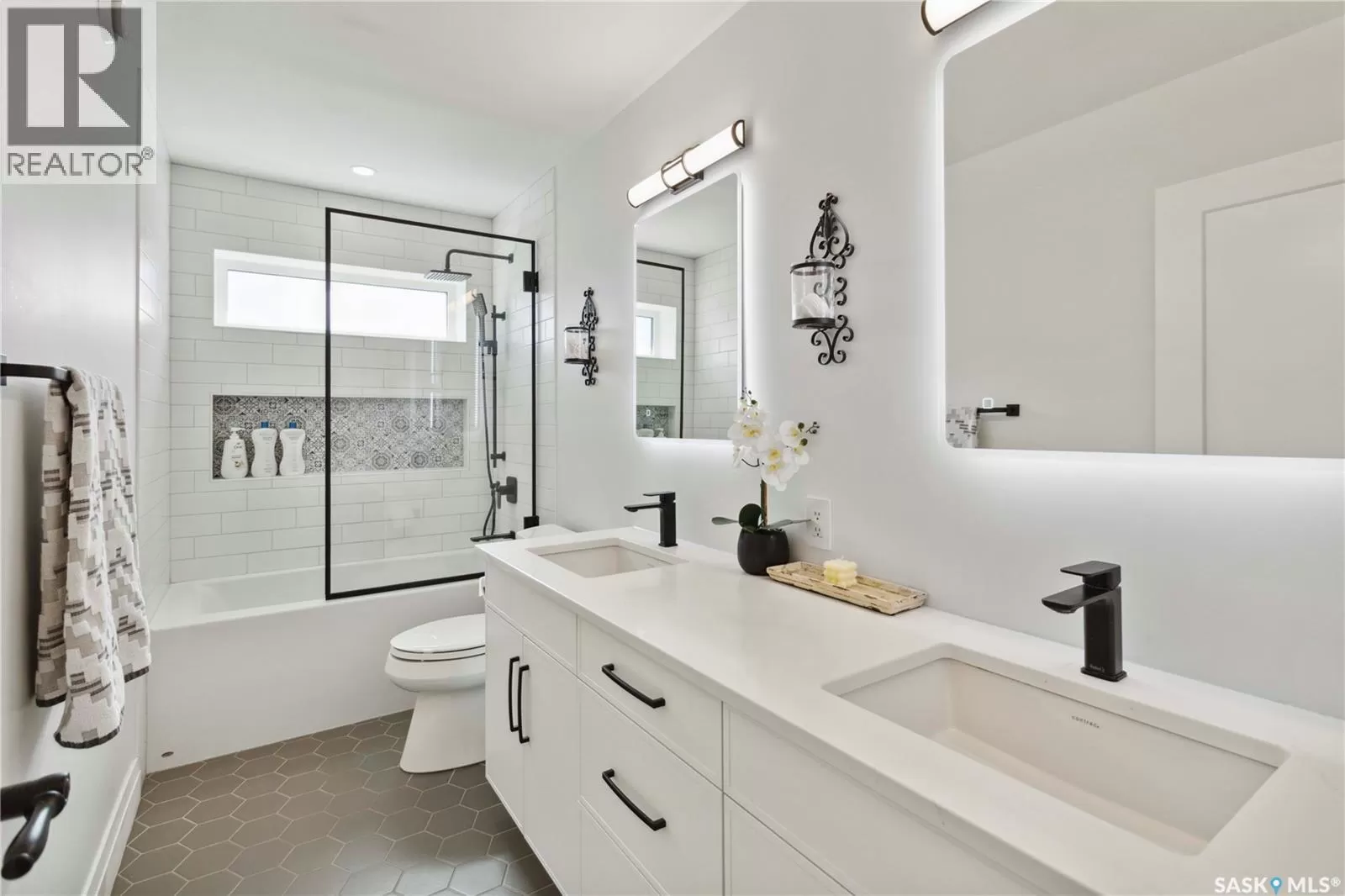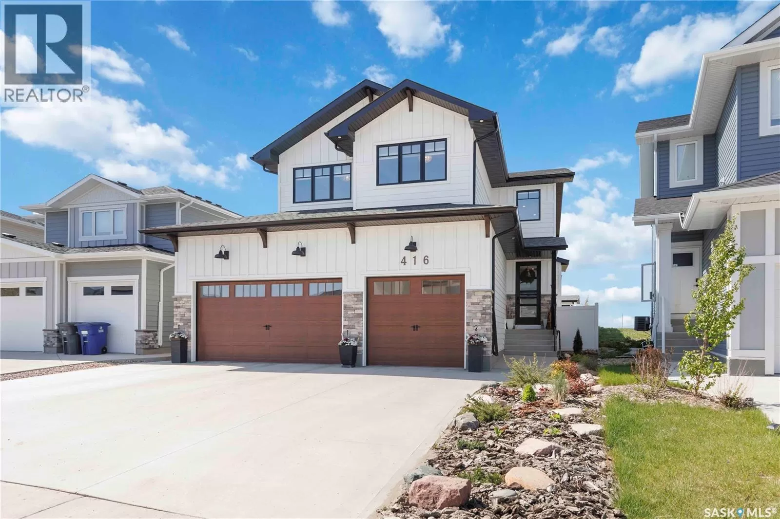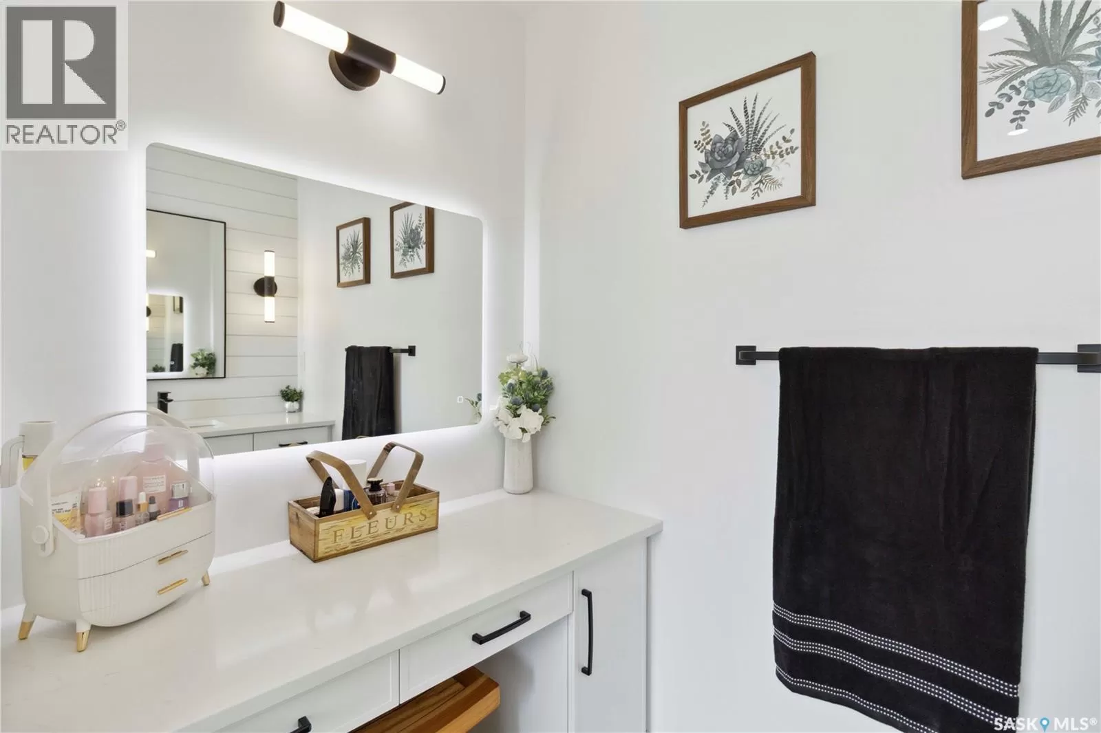 Welcome to this stunning, meticulously designed home in one of Saskatoon's most sought-after neighbourhoods. From the moment you step inside, youâre greeted by soaring ceilings, abundant natural light, and a beautifully open-concept main floor thatâs perfect for both everyday living and entertaining. The spacious kitchen is a chefâs dream, featuring sleek quartz countertops, black stainless steel appliances, a separate walk-in pantry, and a convenient bar fridge for added functionality. The adjacent living room is a showstopper, centered around a gas fireplace with a dramatic floor-to-ceiling feature wall, creating a cozy yet sophisticated ambiance. A dedicated main floor office provides the perfect space for working from home. The fully developed basement extends your living space with a family room, wet bar, additional bedroom, and full bathroomâideal for guests or entertaining. Situated on a huge, fully landscaped lot, this home offers privacy and tranquility with no neighbours behind. A garden shed adds extra outdoor storage, and the yard is perfect for enjoying Saskatoon's beautiful seasons. This home truly has it allâstyle, space, and a prime location. (id:27476)