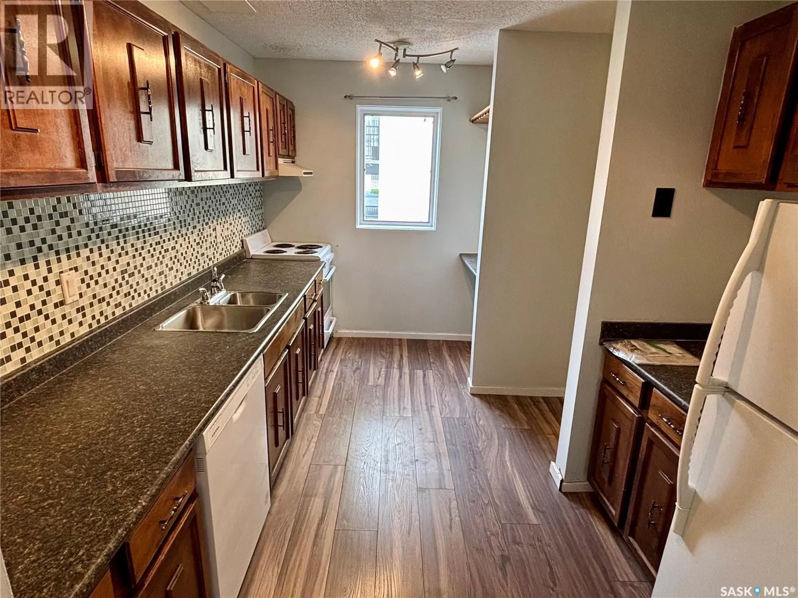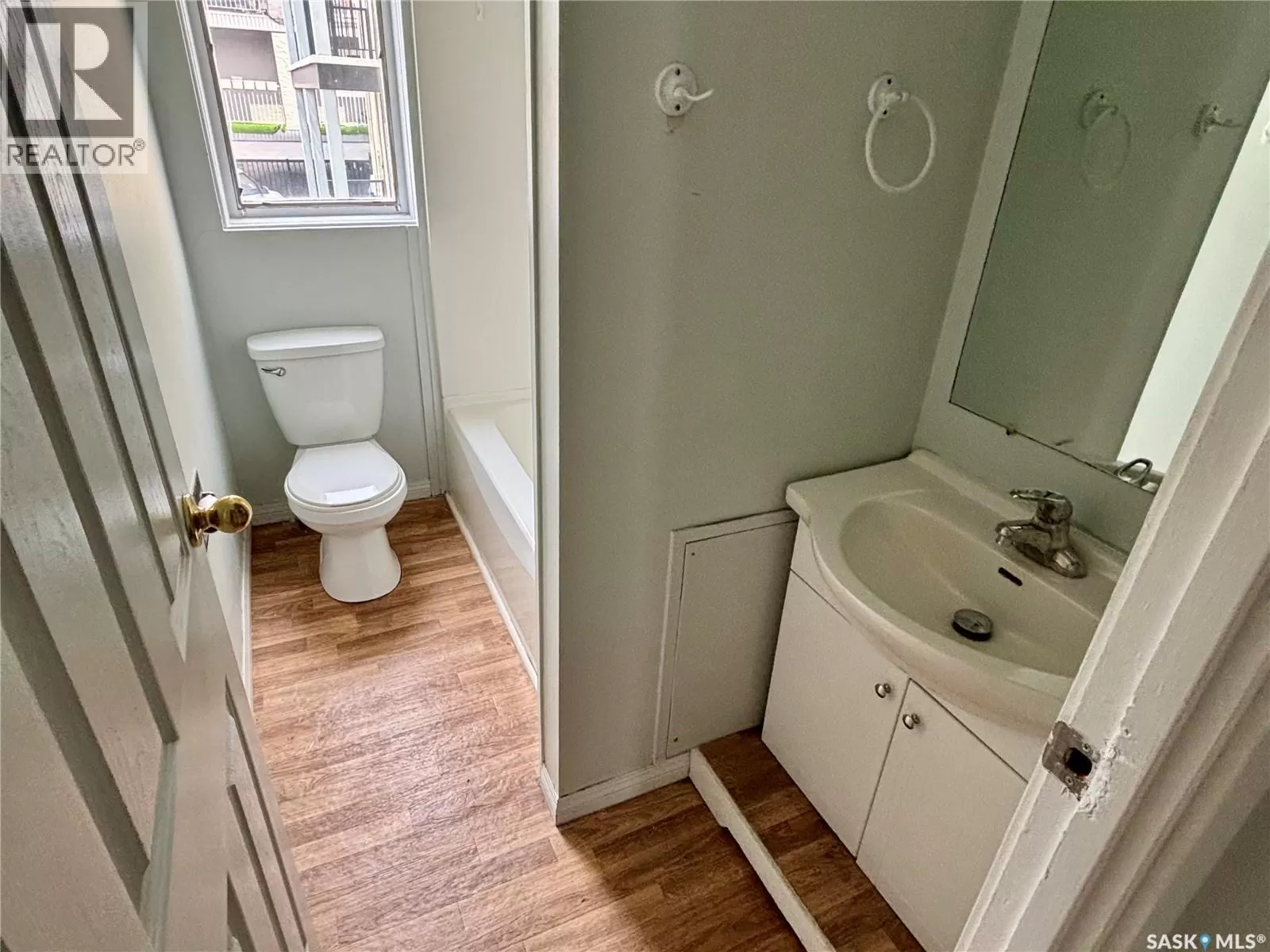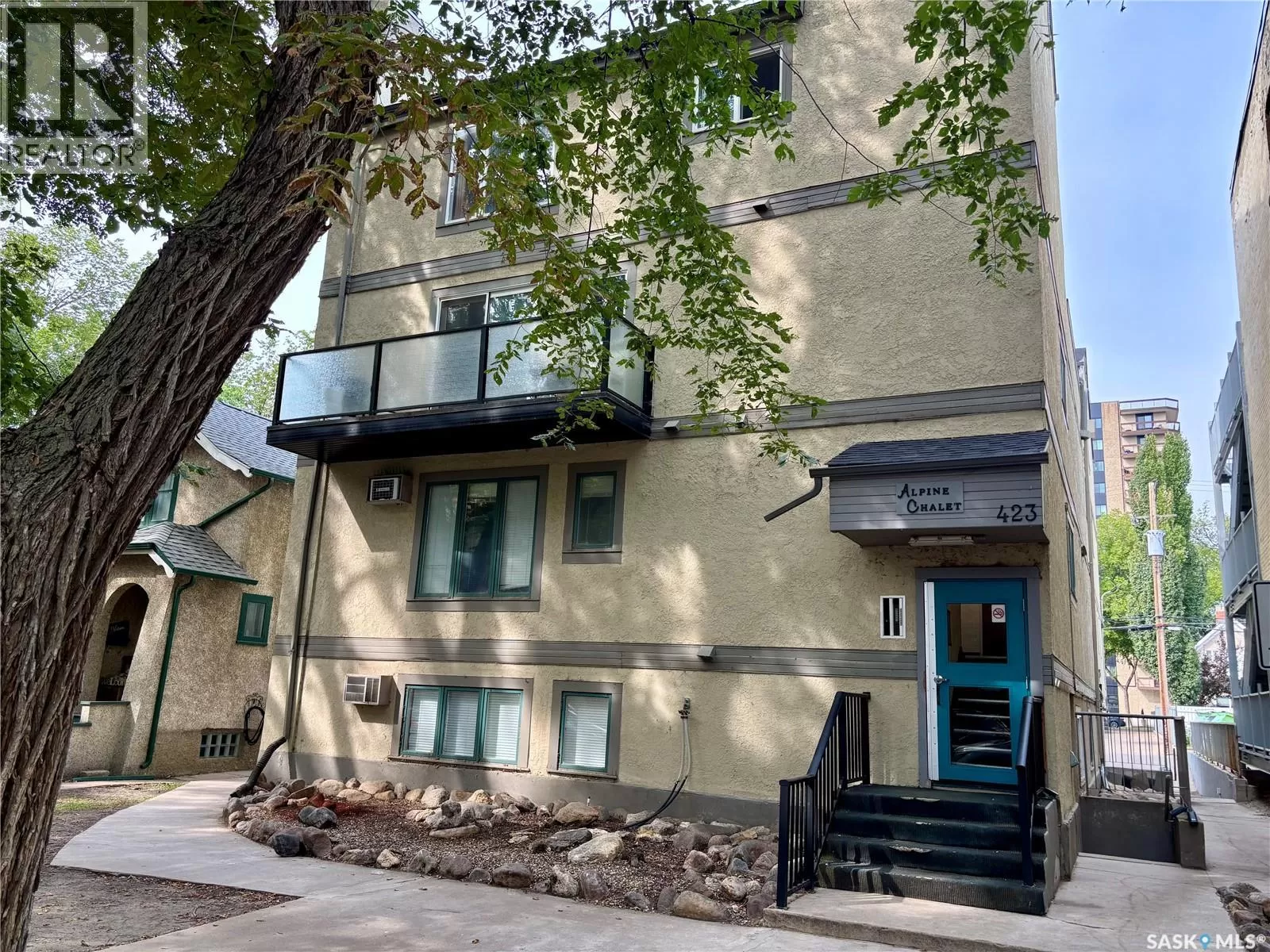 Updated 3-bedroom condo is ideally located in the heart of downtown Saskatoon, offering both convenience and comfort. Situated on the second floor, the unit provides an excellent balance of accessibility and privacy. The condo shows well with all laminate flooring throughout, all kitchen appliances included and a balcony. Shared laundry in the building. Benefit of being steps away from Saskatoonâs downtown amenities, including shops, restaurants, entertainment venues, and the scenic river valley. One covered parking stall is included. (id:27476)