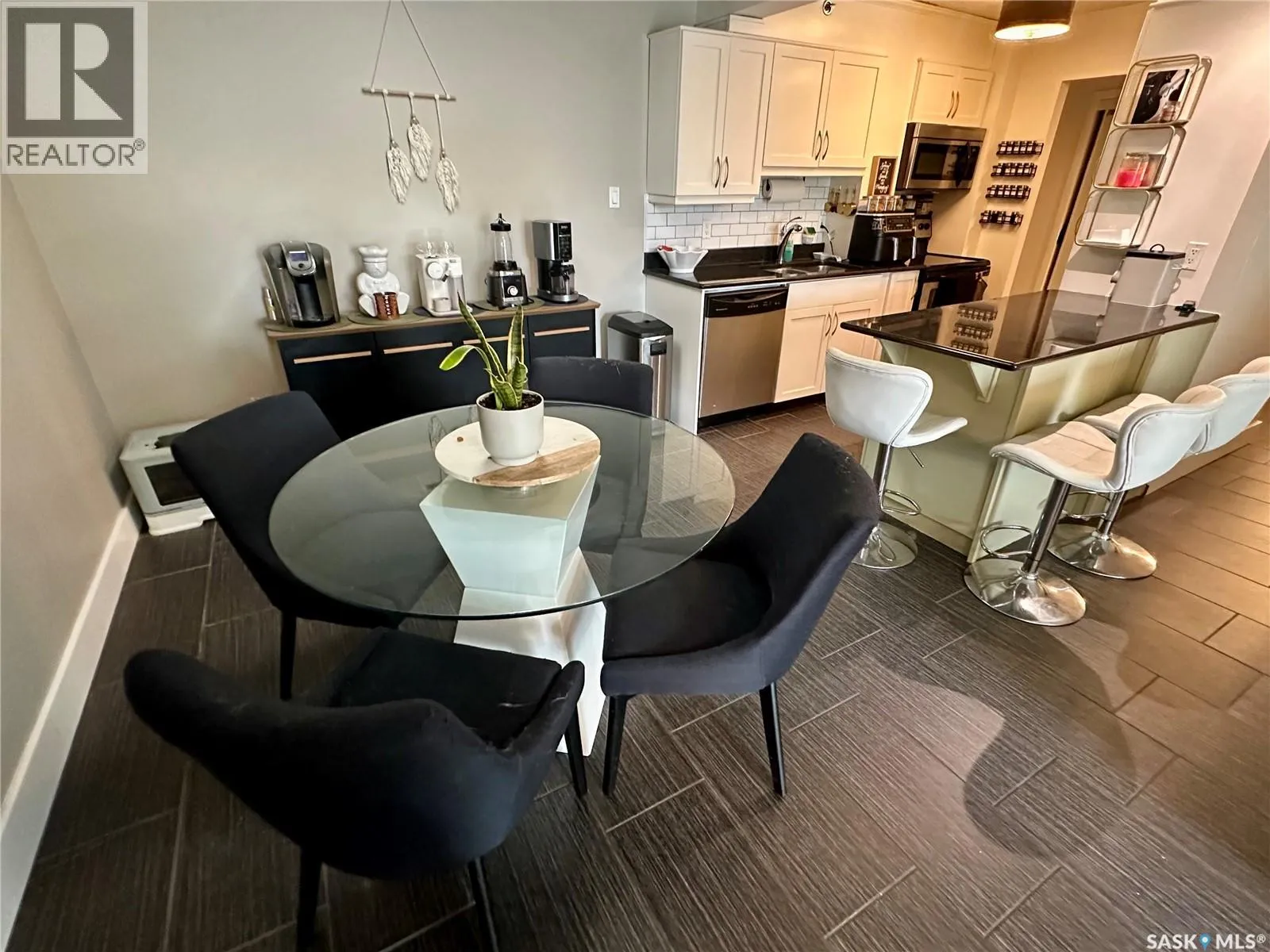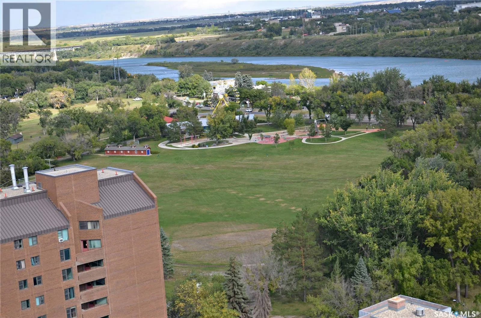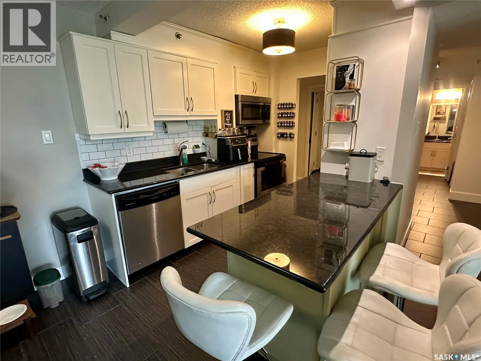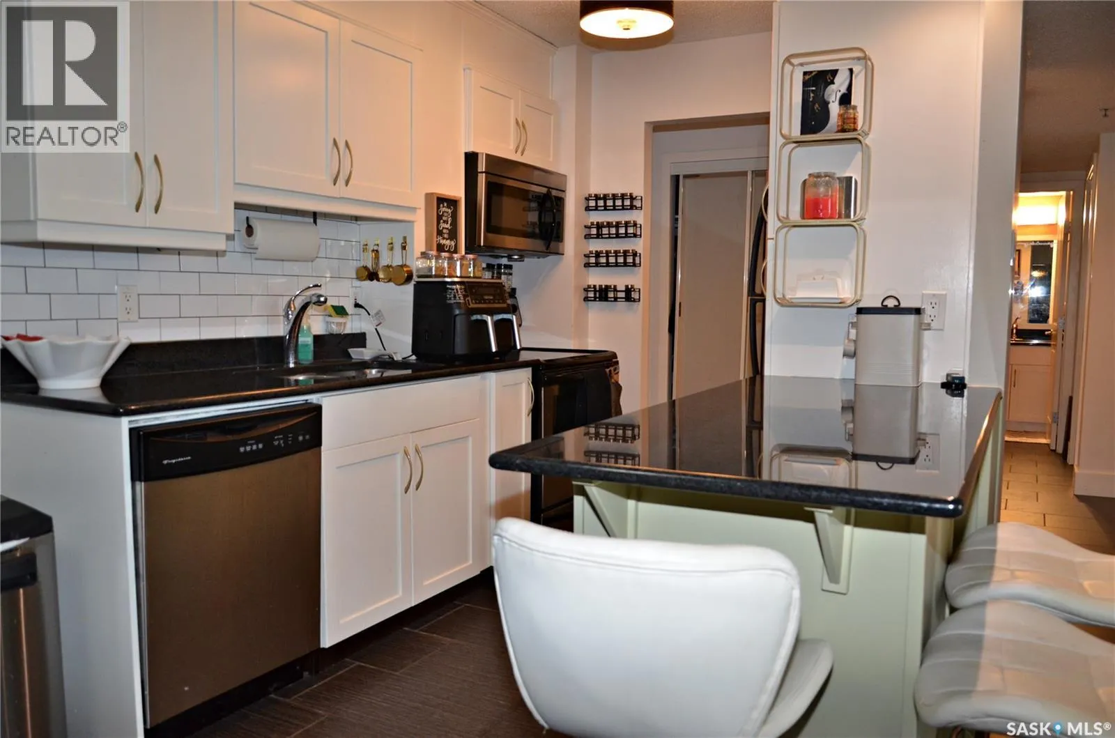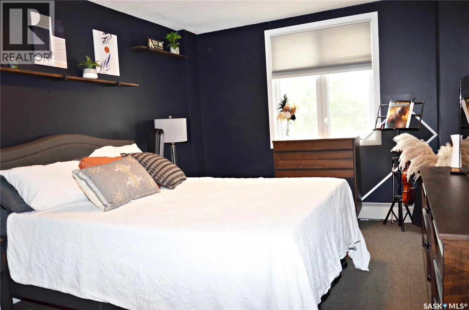 Welcome to The View on Fifth, where urban living meets comfort and convenience in this beautifully maintained 965 sq. ft. apartment-style condo located in the heart of downtown Saskatoon. This spacious unit features two large bedrooms, one full bathroom with a big soaker tub, an open living area, and a west-facing balcony perfect for enjoying sunsets. This unit comes with a prime covered parking stall which is only steps away from the building entrance. The home is move-in ready with no work needed and includes hookups for in-suite laundry, while free shared laundry is also available on every floor. Building amenities include two stunning rooftop patios with breathtaking views, a fully equipped gym, and a nice amenities room for gatherings which includes a pool table. Condo fees include heat, water, and power, offering excellent value. With its prime location just steps from the river, walking trails, transit, shops, restaurants, and entertainment, this is an ideal choice for first-time buyers, downsizers, or investors seeking a low-maintenance home in a vibrant downtown setting. (id:27476)