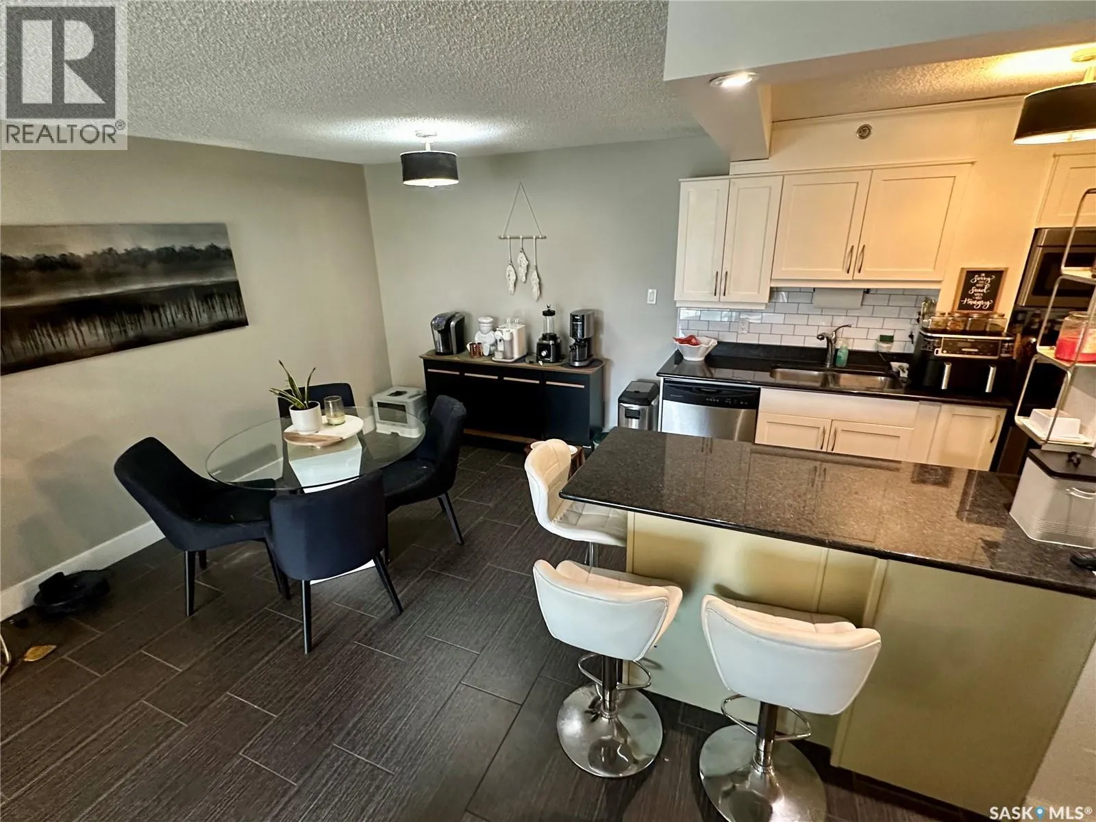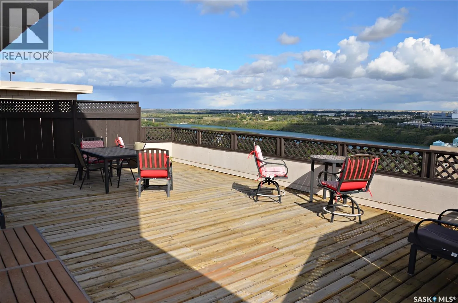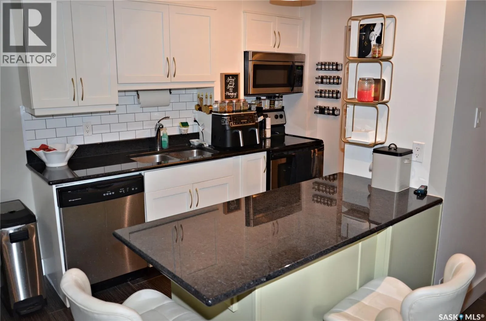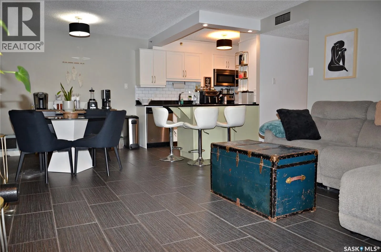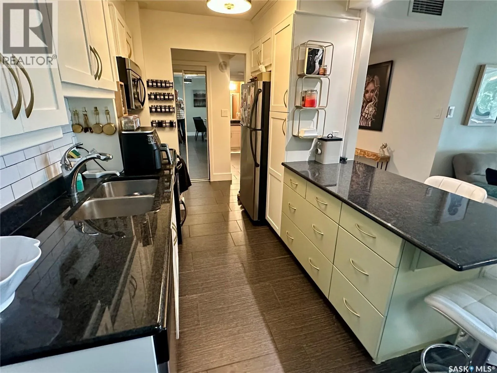 Welcome to The View on Fifth, where urban living meets comfort and convenience in this beautifully maintained 965 sq. ft. apartment-style condo located in the heart of downtown Saskatoon. This spacious unit features two large bedrooms, one full bathroom with a big soaker tub, an open living area, and a west-facing balcony perfect for enjoying sunsets. This unit comes with a prime covered parking stall which is only steps away from the building entrance. The home is move-in ready with no work needed and includes hookups for in-suite laundry, while free shared laundry is also available on every floor. Building amenities include two stunning rooftop patios with breathtaking views, a fully equipped gym, and a nice amenities room for gatherings which includes a pool table. Condo fees include heat, water, and power, offering excellent value. With its prime location just steps from the river, walking trails, transit, shops, restaurants, and entertainment, this is an ideal choice for first-time buyers, downsizers, or investors seeking a low-maintenance home in a vibrant downtown setting. (id:27476)