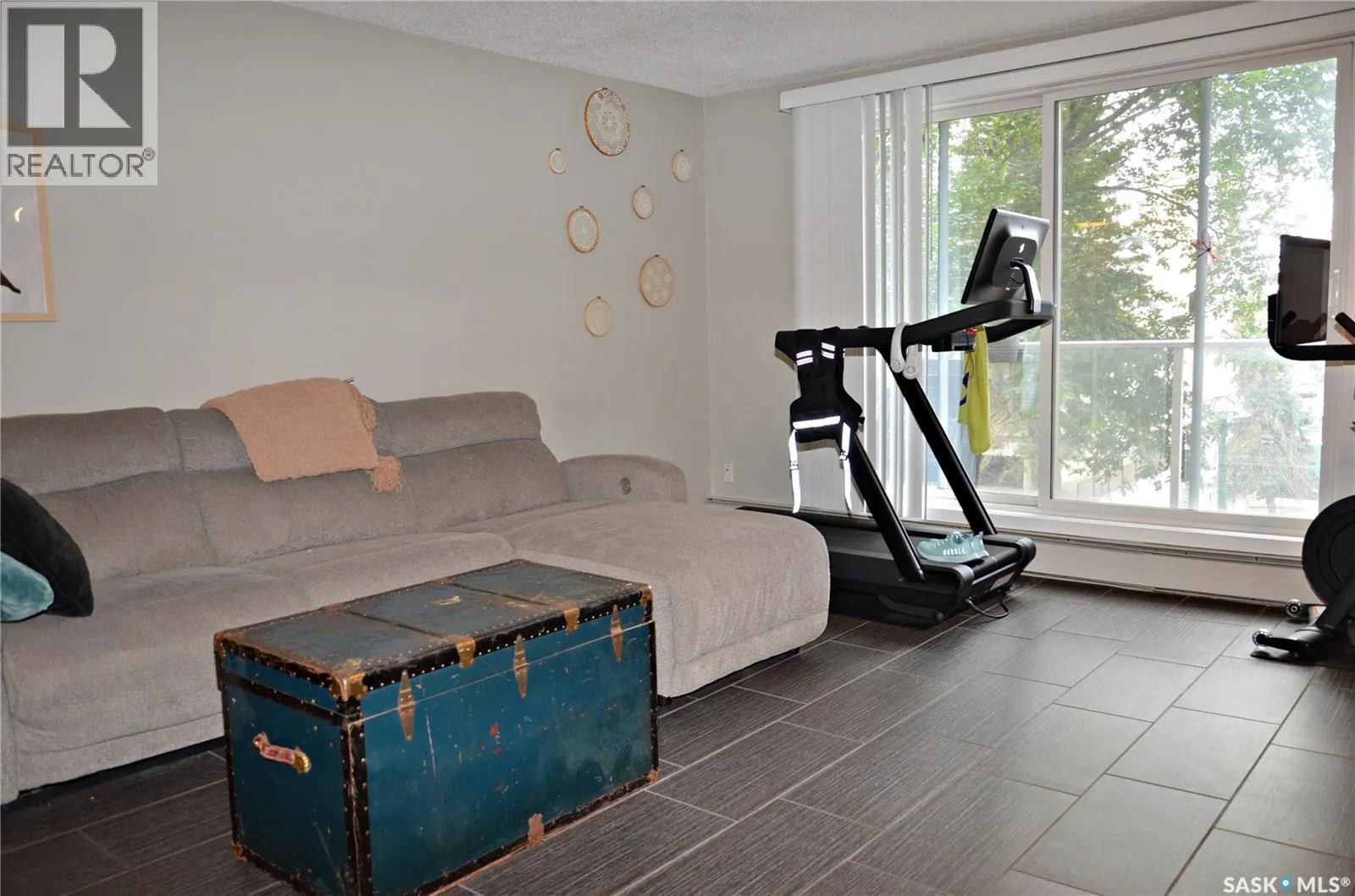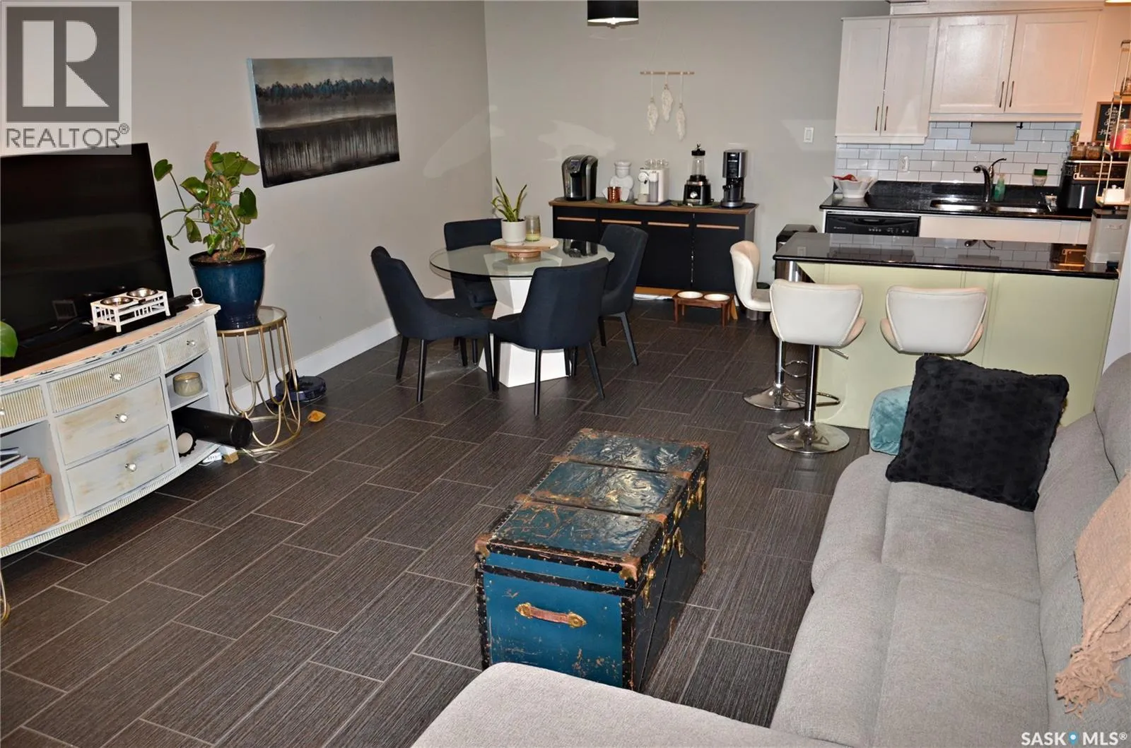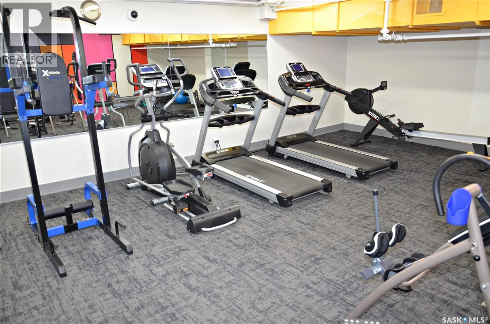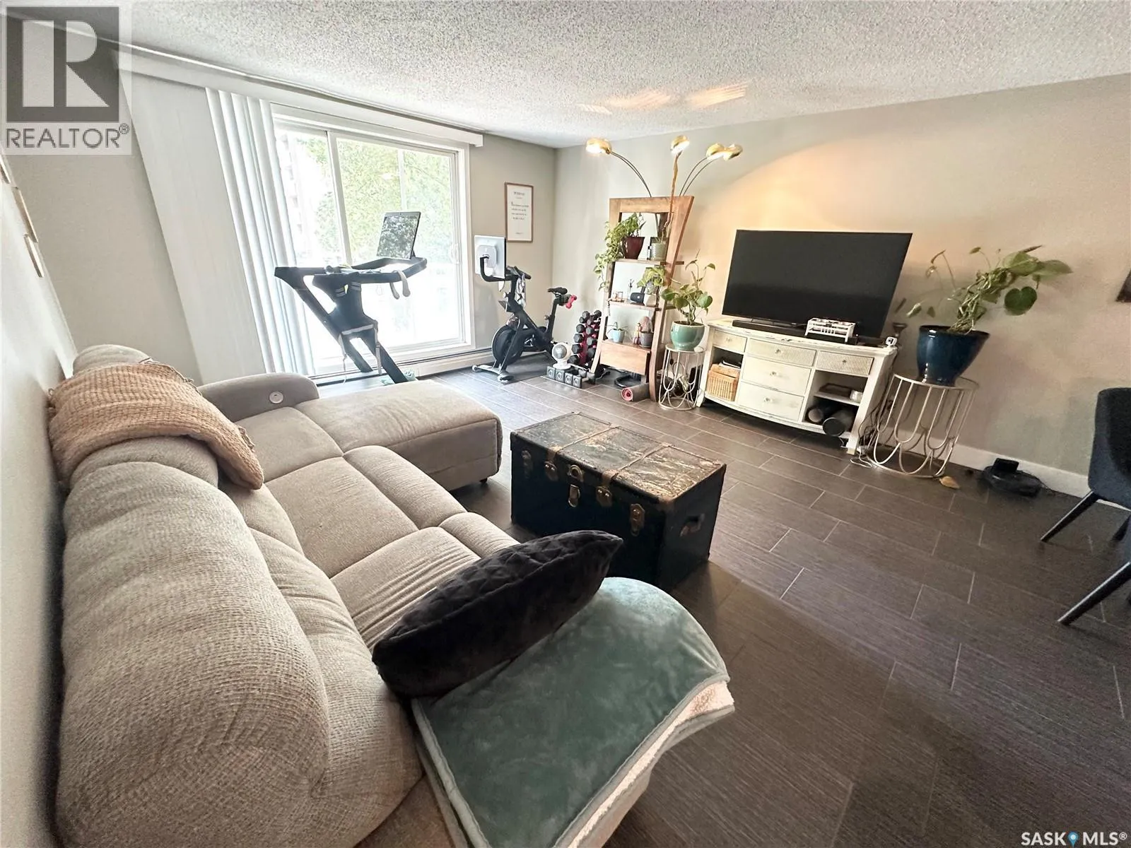 Welcome to The View on Fifth, where urban living meets comfort and convenience in this beautifully maintained 965 sq. ft. apartment-style condo located in the heart of downtown Saskatoon. This spacious unit features two large bedrooms, one full bathroom with a big soaker tub, an open living area, and a west-facing balcony perfect for enjoying sunsets. This unit comes with a prime covered parking stall which is only steps away from the building entrance. The home is move-in ready with no work needed and includes hookups for in-suite laundry, while free shared laundry is also available on every floor. Building amenities include two stunning rooftop patios with breathtaking views, a fully equipped gym, and a nice amenities room for gatherings which includes a pool table. Condo fees include heat, water, and power, offering excellent value. With its prime location just steps from the river, walking trails, transit, shops, restaurants, and entertainment, this is an ideal choice for first-time buyers, downsizers, or investors seeking a low-maintenance home in a vibrant downtown setting. (id:27476)