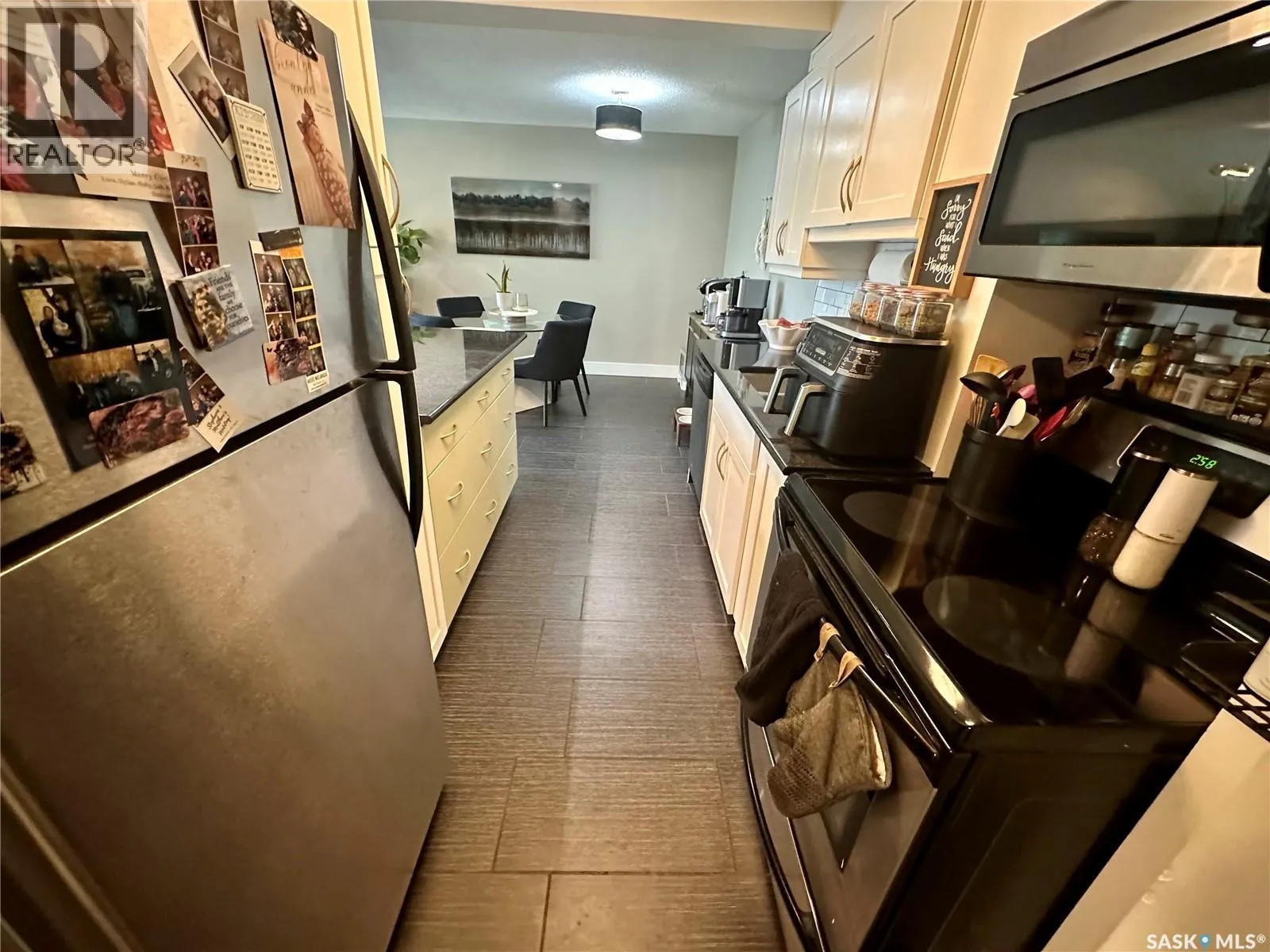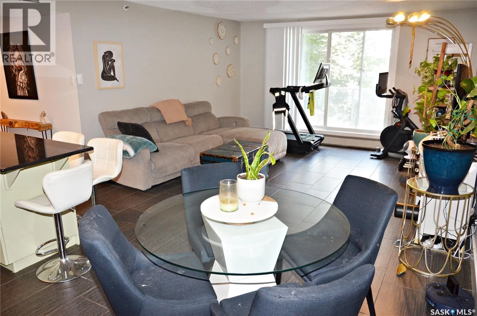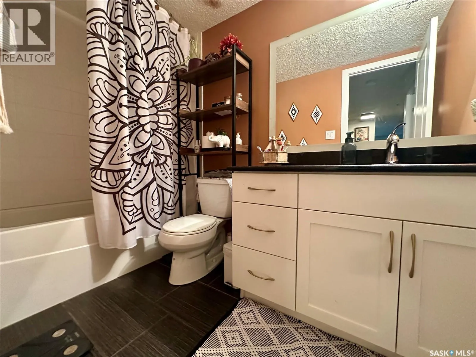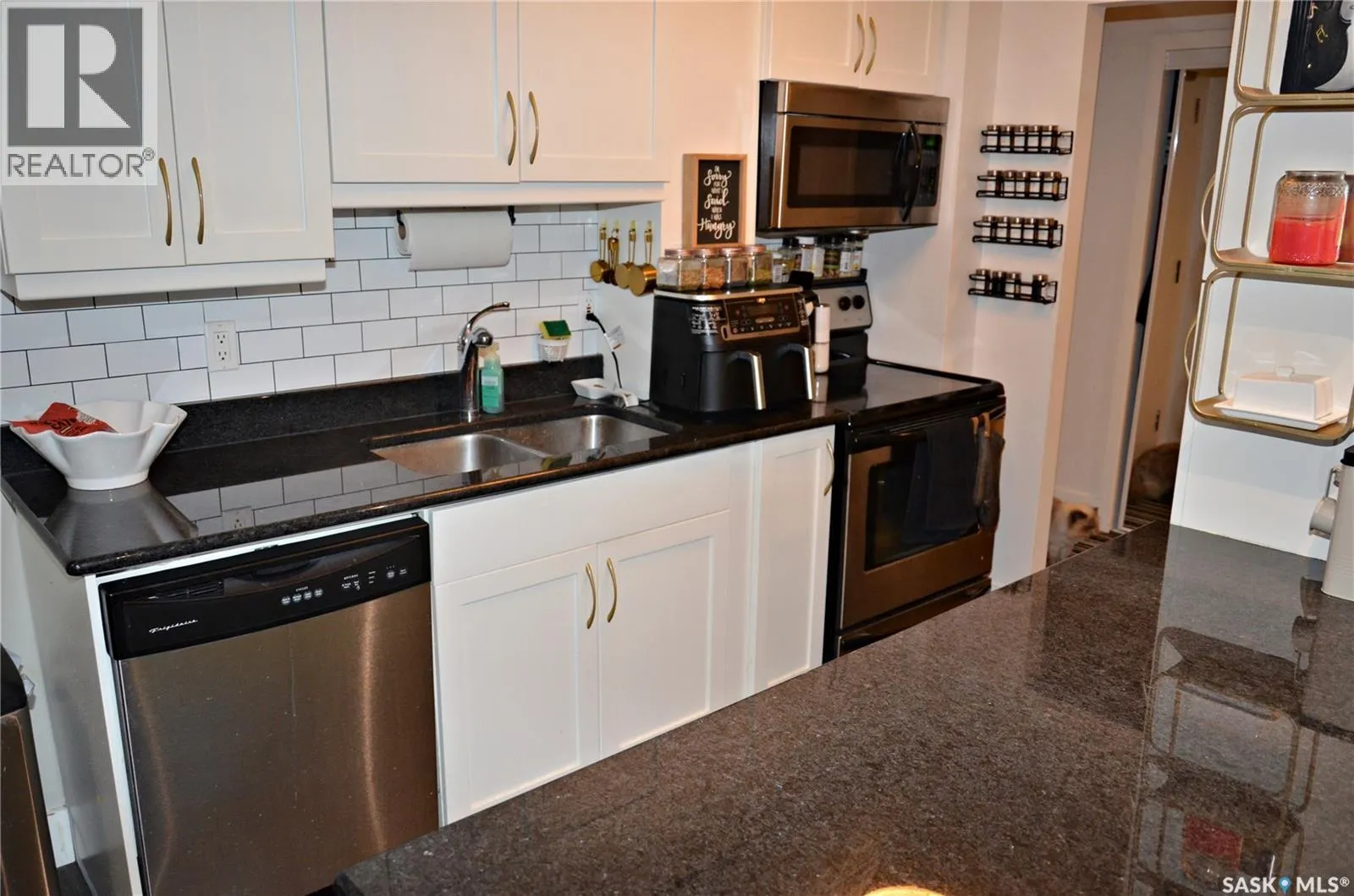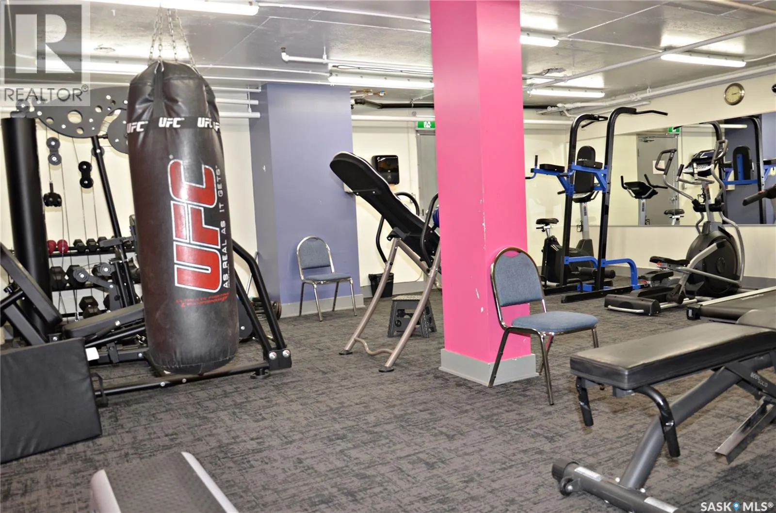 Welcome to The View on Fifth, where urban living meets comfort and convenience in this beautifully maintained 965 sq. ft. apartment-style condo located in the heart of downtown Saskatoon. This spacious unit features two large bedrooms, one full bathroom with a big soaker tub, an open living area, and a west-facing balcony perfect for enjoying sunsets. This unit comes with a prime covered parking stall which is only steps away from the building entrance. The home is move-in ready with no work needed and includes hookups for in-suite laundry, while free shared laundry is also available on every floor. Building amenities include two stunning rooftop patios with breathtaking views, a fully equipped gym, and a nice amenities room for gatherings which includes a pool table. Condo fees include heat, water, and power, offering excellent value. With its prime location just steps from the river, walking trails, transit, shops, restaurants, and entertainment, this is an ideal choice for first-time buyers, downsizers, or investors seeking a low-maintenance home in a vibrant downtown setting. (id:27476)