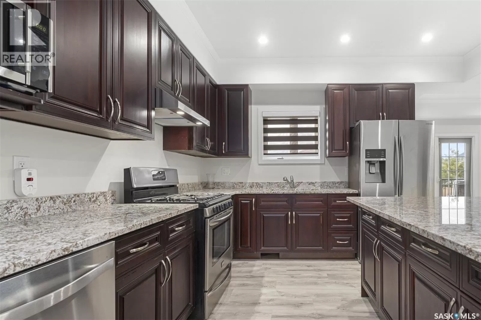 Welcome to this stunning home located in the desirable neighborhood of Evergreen. The fully developed and Fully renovated home offers a luxurious and comfortable lifestyle on a 7128 Sqft lot with lane access. Spacious kitchen featuring large island large dining area as well as stainless steel appliances, Gas Range, and hood fan. The living room impresses with its Laminate flooring, creating an inviting and elegant atmosphere. Upstairs you'll find four bedrooms, providing ample space for your family's needs. The primary bedroom is a true retreat, featuring carpet flooring, and a massive walk-in closet with built-in shelving. The 5 pc ensuite has a tile floor, a Jacuzzi, and a separate shower. The lower level of this home is a fully developed mortgage helper A two-bedroom legal Suite with stainless steel appliances a separate laundry rented for $1500 +utilty on a month-to-month basis. The attention to detail extends to the Large backyard has a Large Deck With Lane Access, including a 2-car attached garage. zero maintenance front yard with parking for 5 off street. Close to park, school & all amenities. This one won't last long call your favorite Realtor to book a private viewing today! Don't miss out on the opportunity to view this exceptional home. (id:27476)