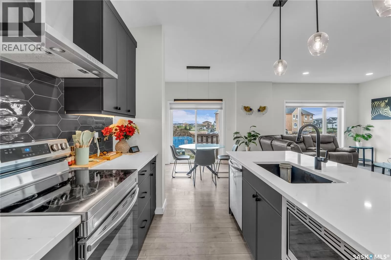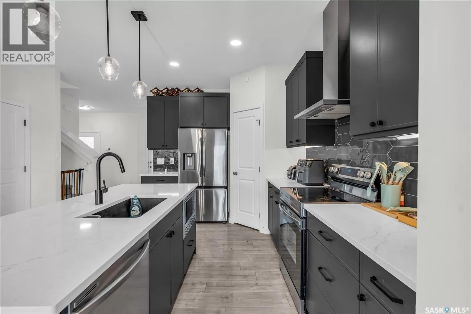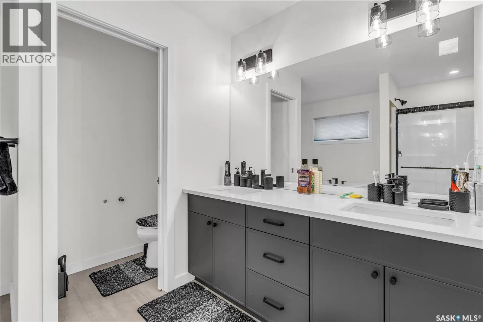 Welcome to this well maintained home in the most desiring neighbourhood of Brighton situated few blocks from Brighton Core Park. The main floor offers open concept floor plan featuring dining room, living room with fireplace, triple pane windows & Laminate flooring. The Kitchen offers upgraded kitchen appliances, backsplash, quartz countertops, lots of cabinets & a kitchen pantry. A 2-pc bathroom is located at this level. The 2nd level offers a MASTER Bedroom with it's en suite 5pc bathroom, two additional bedrooms which share a common 4pc bathroom. The huge BONUS ROOM greats you at this level. Laundry is located at this level for your convenience. The basement has a separate entrance & is currently unfinished. The home comes with a concrete driveway & 2 car attached garage which is insulated & heated with a natural gas garage heater. The property is centrally air conditioned. There are underground sprinklers (located at the front only). This home is must see! Call your favourite Realtor® to view this gorgeous home TODAY! (id:27476)