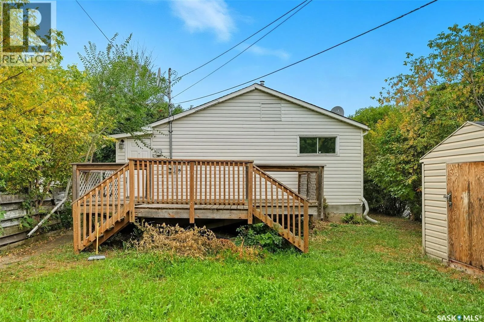 Welcome to 838 Ave K North located in Westmount area with 2 bedrooms on corner lot. The house has a 100 amp electrical panel, mid efficient furnace and high efficient hot water heater. There is new flooring in the 2 bedrooms and porch area. The property has main floor laundry and shed for storage. Plenty of room to build a future garage. (id:27476)
