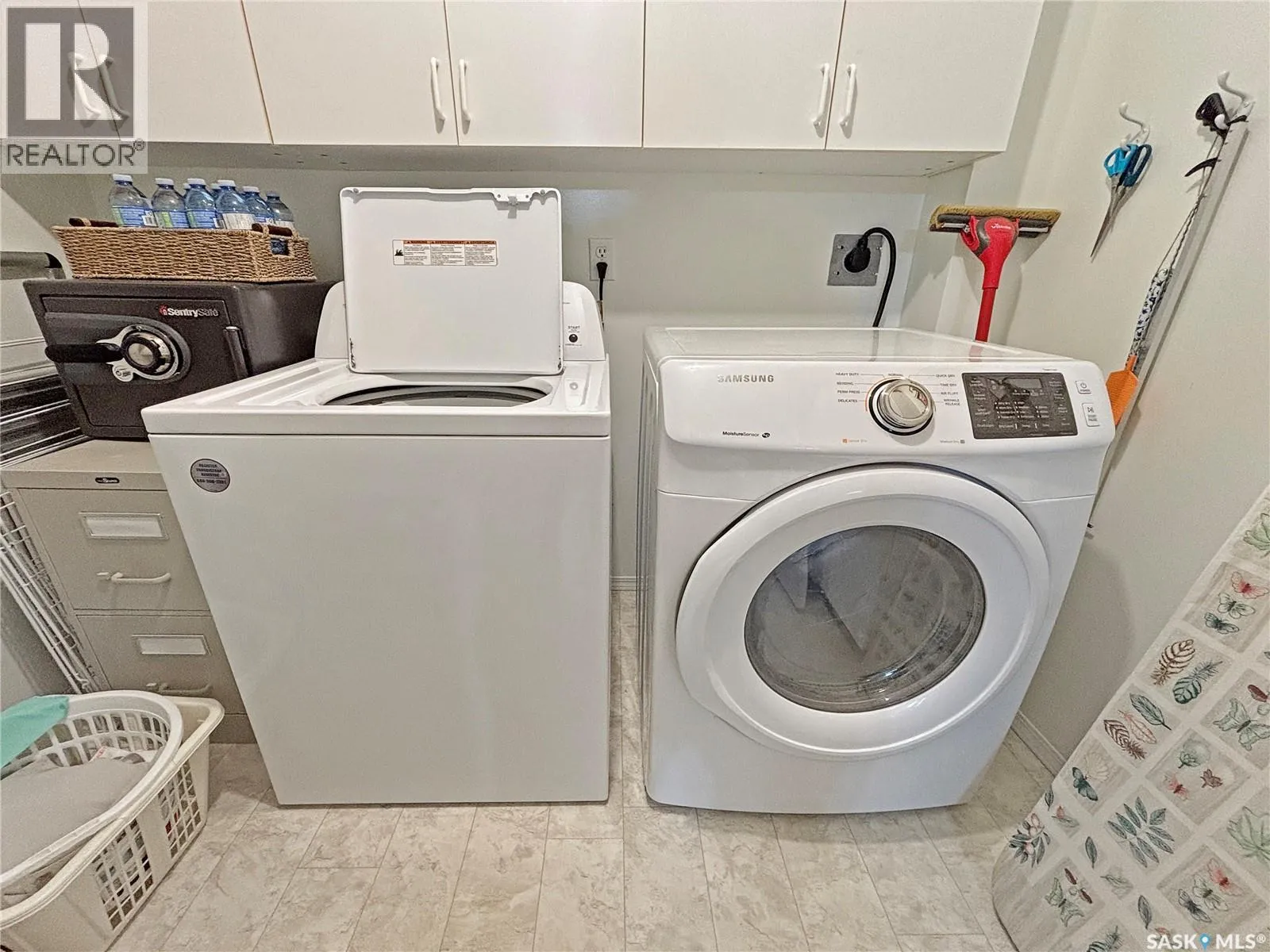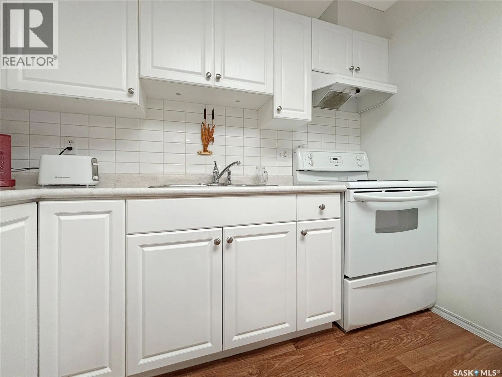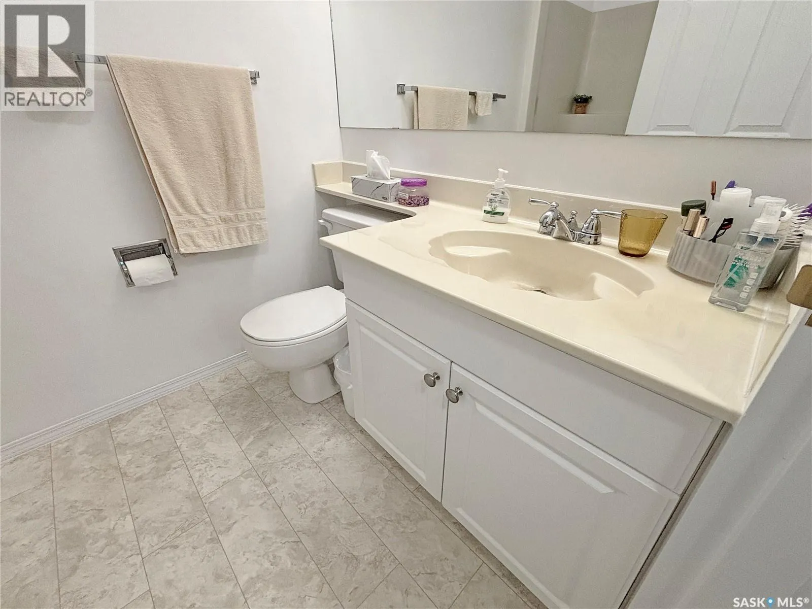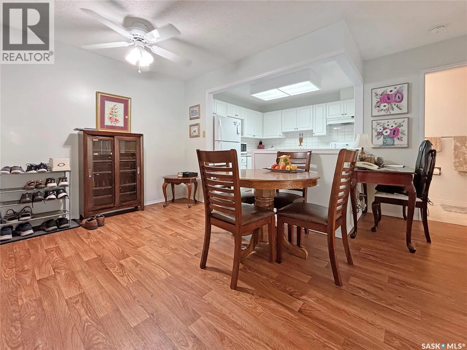 Immaculate top floor, 2 bed, 2 bath condo at St James Place on Cree Crescent in Lawson Heights. This bright unit features many upgrades such as windows and window coverings, newer carpet in the living room and primary bedroom, a newer washing machine, updated kitchen cupboards and backsplash, and newer linoleum in bathroom and laundry room. Very open design with bedrooms and bathrooms on either side of the living room. The 2nd bedroom has glass doors to the living room for potential as a den. Storage on the balcony. 2 year old wall air conditioner. Full bath off the primary bedroom with walk-through closets. One electrified parking stall. The building has a new elevator. No pets. End of October/early November possession date. (id:27476)