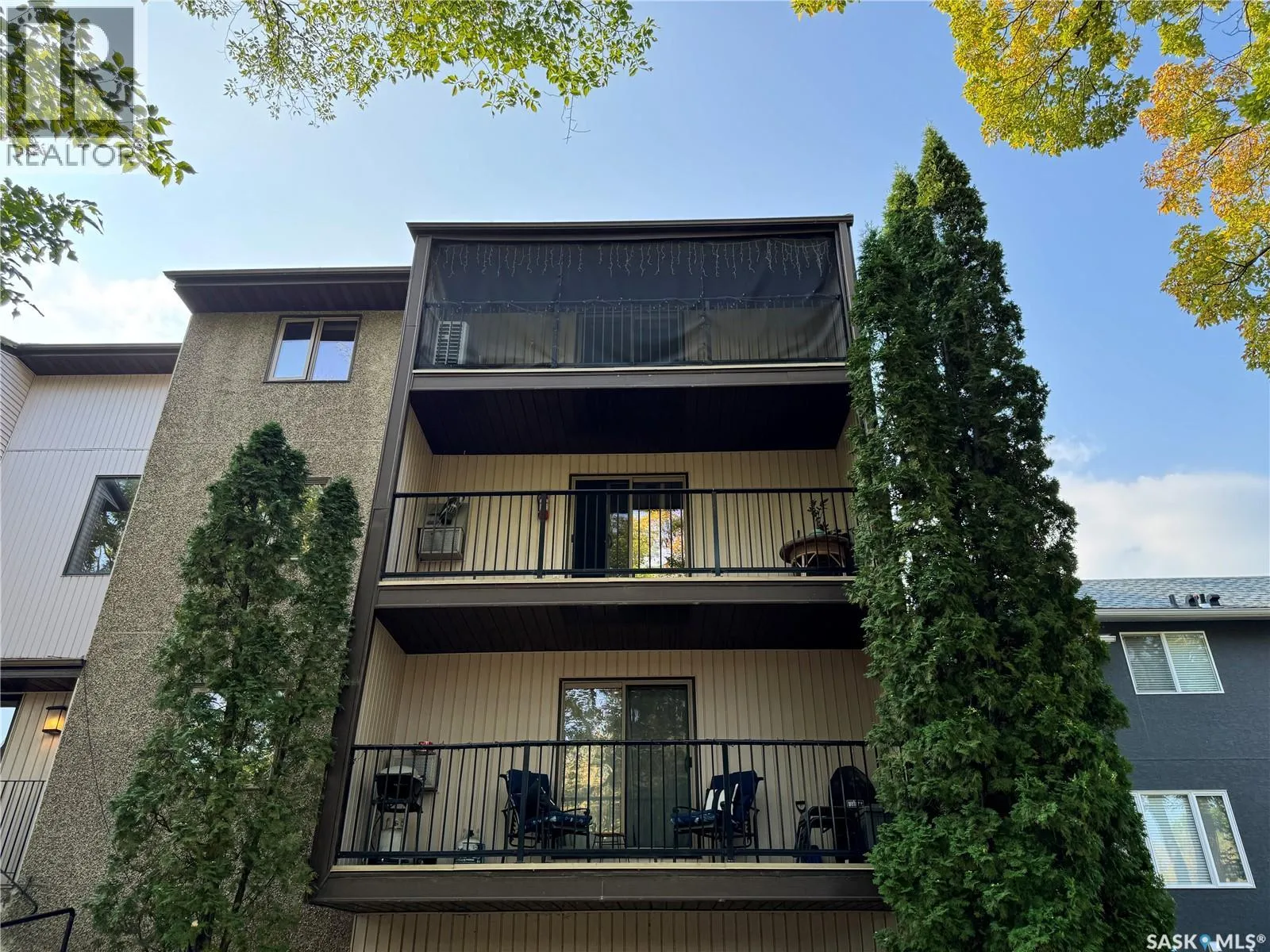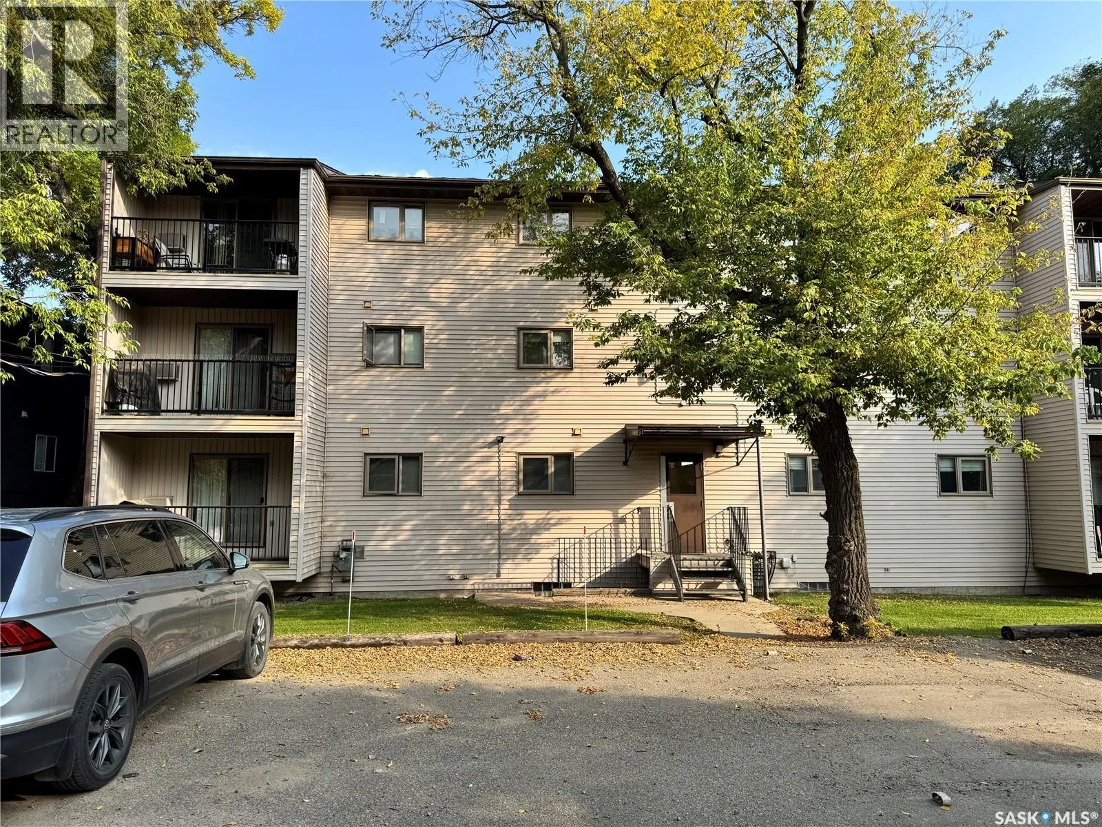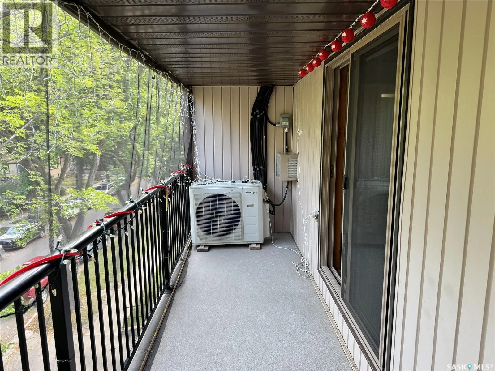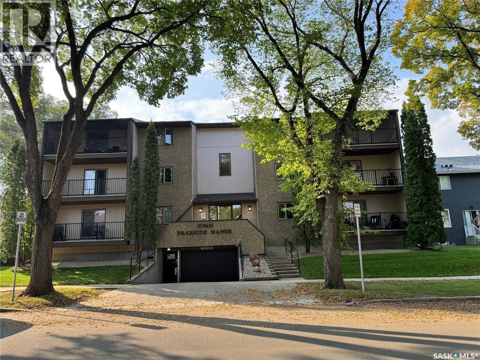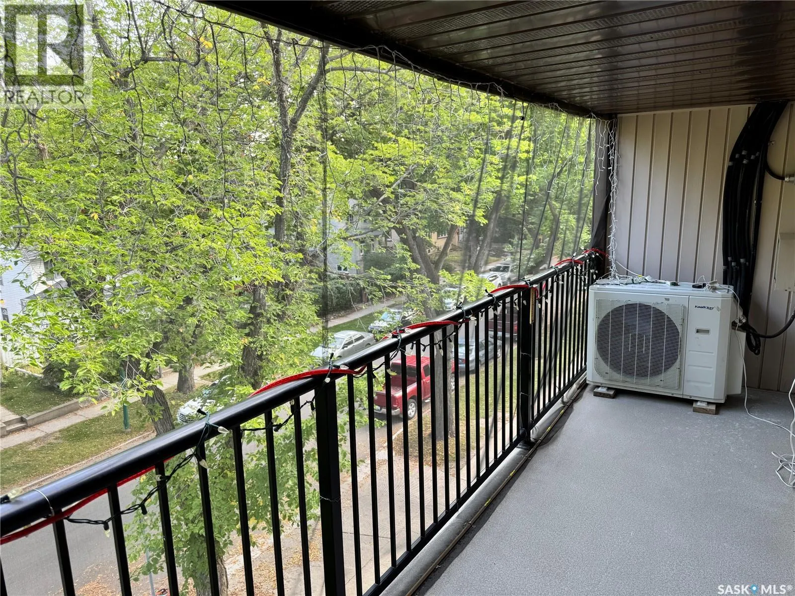 Spacious Top-Floor Condo in Prestigious Varsity View! Offering an impressive 1,267 sq ft of stylish living space, this sprawling 2-bedroom plus den unit combines size, comfort, and an unbeatable location just three blocks from the river. Step inside to find fresh paint, engineered hardwood floors, and an airy open layout designed for both relaxation and function. The generous bedrooms are paired with a versatile denâperfect for a home office or guest roomâwhile the large laundry and storage room add everyday convenience. A roomy screened-in balcony provides a private outdoor retreat, overlooking the quiet, tree-lined street below. Practical updates include central air conditioning with individually controlled units in both bedrooms and the family room, ensuring personalized comfort. This secure, 12-unit building (with only 4 units per floor) offers underground parking with additional storage & an amenities room. Also currently included is 1 surface parking stall already paid for until August 31, 2026 but not beyond. Perfectly situated within walking distance to Royal University Hospital, with an easy commute to downtown, City Hospital, and the University, this condo delivers a rare blend of tranquility and accessibility. Move-in ready and waiting for youâbook your showing today! (id:27476)