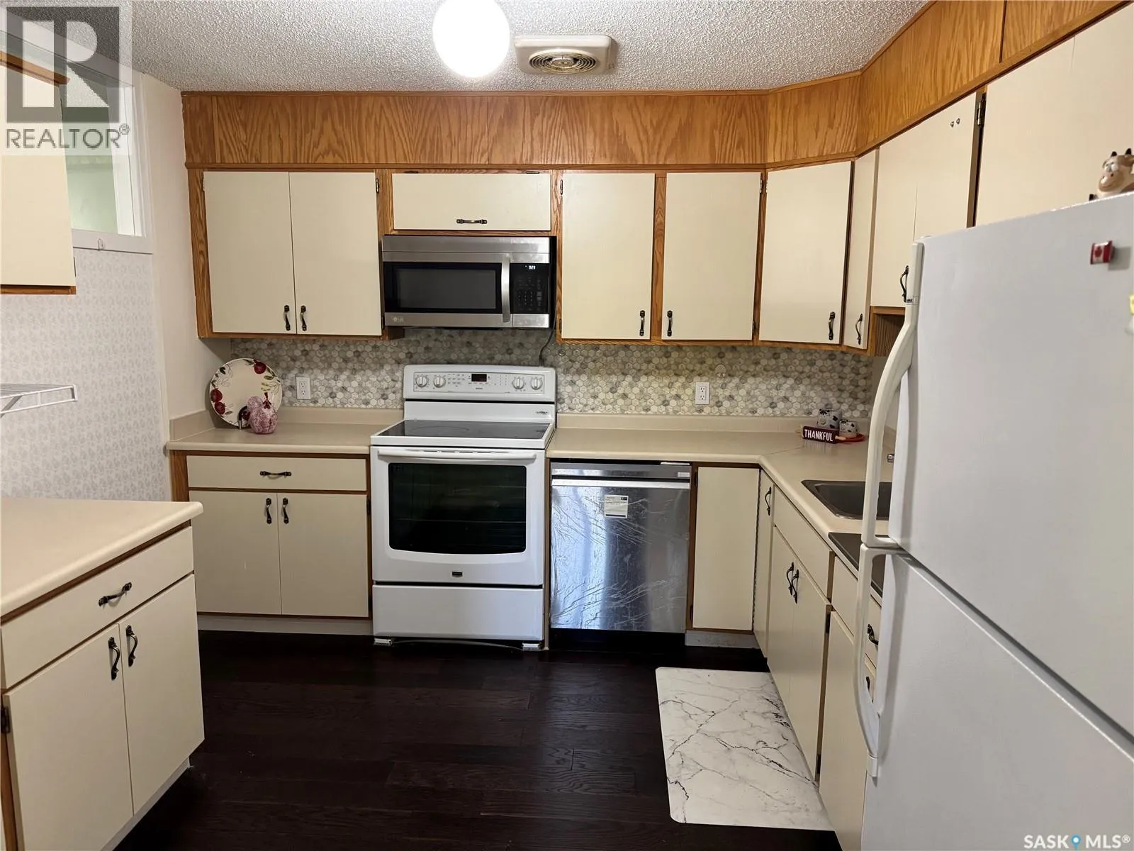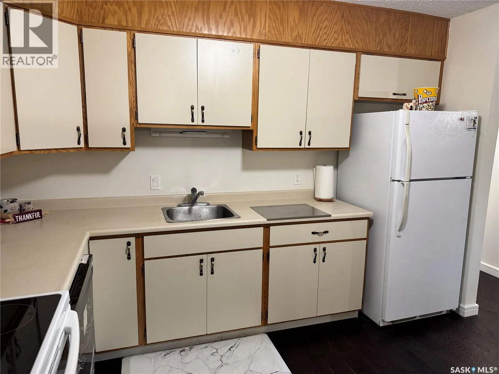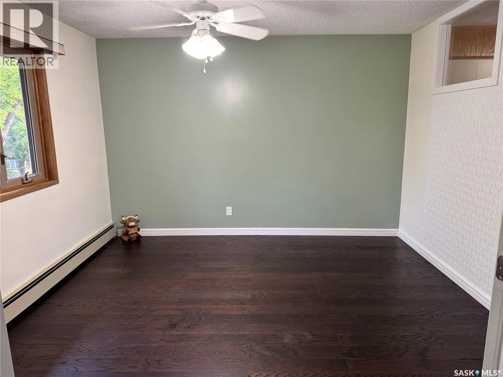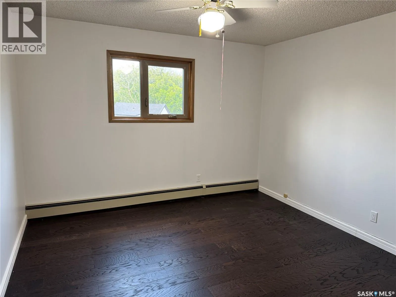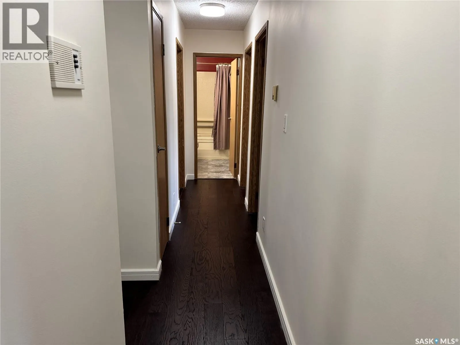 Spacious Top-Floor Condo in Prestigious Varsity View! Offering an impressive 1,267 sq ft of stylish living space, this sprawling 2-bedroom plus den unit combines size, comfort, and an unbeatable location just three blocks from the river. Step inside to find fresh paint, engineered hardwood floors, and an airy open layout designed for both relaxation and function. The generous bedrooms are paired with a versatile denâperfect for a home office or guest roomâwhile the large laundry and storage room add everyday convenience. A roomy screened-in balcony provides a private outdoor retreat, overlooking the quiet, tree-lined street below. Practical updates include central air conditioning with individually controlled units in both bedrooms and the family room, ensuring personalized comfort. This secure, 12-unit building (with only 4 units per floor) offers underground parking with additional storage & an amenities room. Also currently included is 1 surface parking stall already paid for until August 31, 2026 but not beyond. Perfectly situated within walking distance to Royal University Hospital, with an easy commute to downtown, City Hospital, and the University, this condo delivers a rare blend of tranquility and accessibility. Move-in ready and waiting for youâbook your showing today! (id:27476)