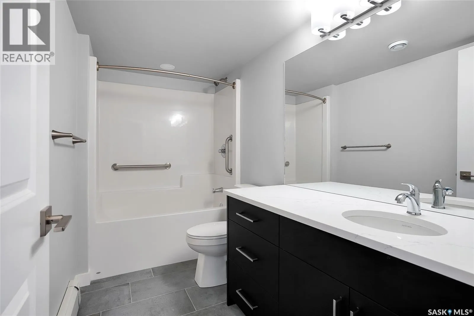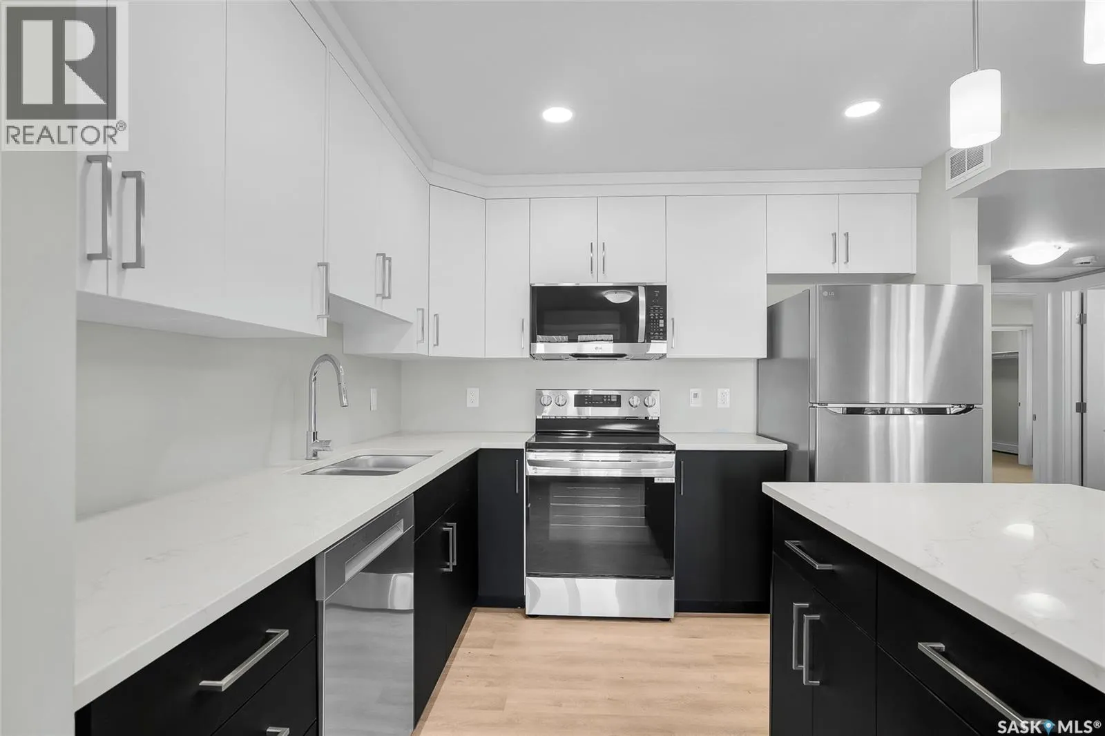 Welcome to this newly built 2-bedroom, 2-bathroom condo located in the desirable Sutherland area of Saskatoon. Offering a blend of modern design and thoughtful upgrades, this home provides comfort, style, and convenience in a vibrant community. Inside, youâll find a bright open-concept layout highlighted by quartz countertops in both the kitchen and bathrooms, sleek LED pot lighting, and durable ceramic tile in the bathrooms and laundry room. The kitchen is perfect for entertaining, while the air exchanger ensures a fresh and comfortable living environment year-round. The spacious primary bedroom includes its own ensuite and a very generous walk-in closet, while the second bedroom and bathroom provide versatility for guests or a home office. Step outside to your private balcony featuring low-maintenance Dec-Tec flooring and a natural gas BBQ hookupâideal for summer evenings. This unit also comes with a secure underground parking stall and a private storage locker, adding both convenience and peace of mind. Sutherland offers exceptional amenities, including quick access to the University of Saskatchewan, public transit, shopping, restaurants, and Circle Drive for an easy commute anywhere in the city. With its combination of high-end finishes and prime location, this condo is the perfect choice for students, professionals, or anyone looking to enjoy low-maintenance living in Saskatoon. (id:27476)