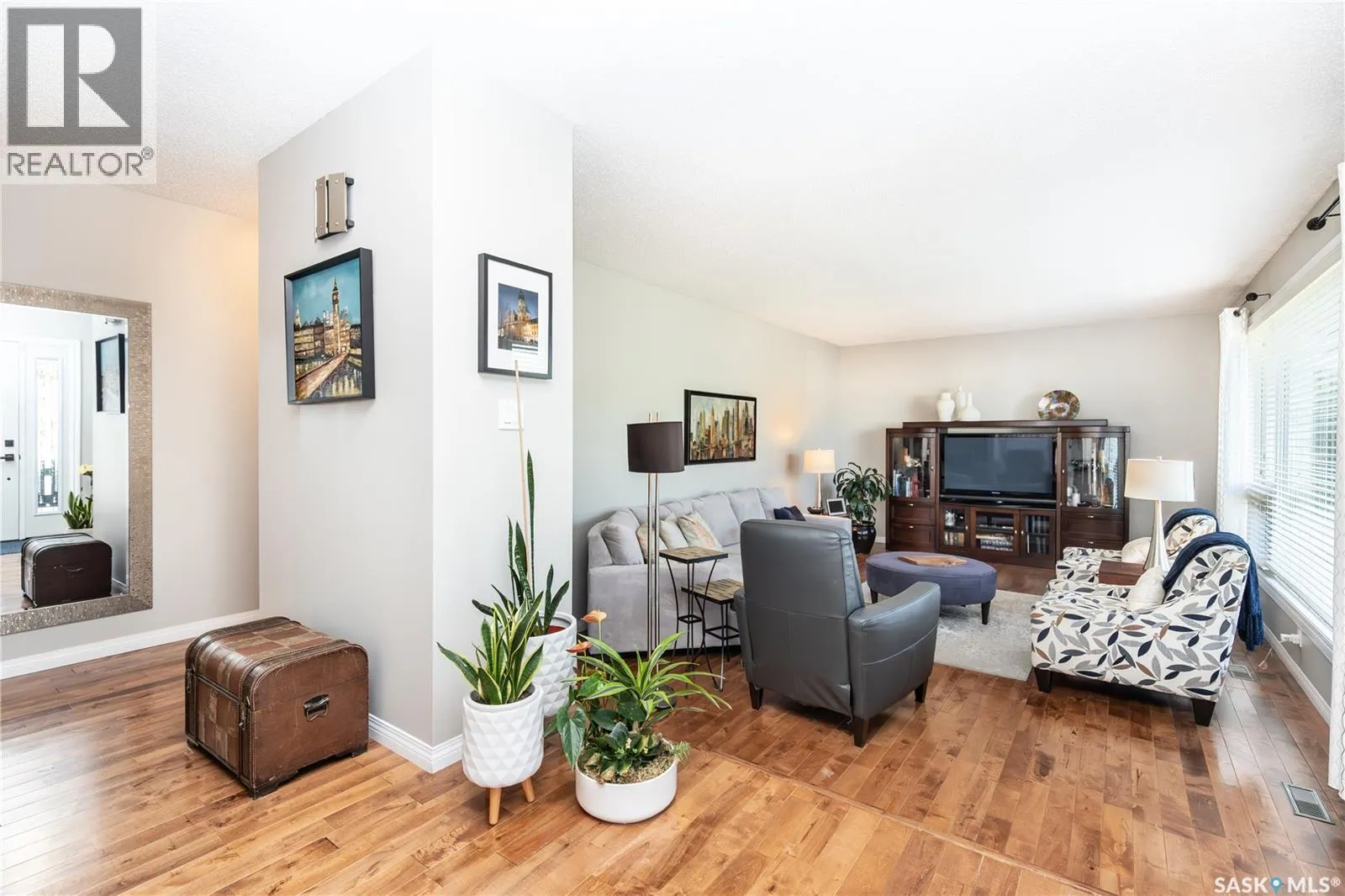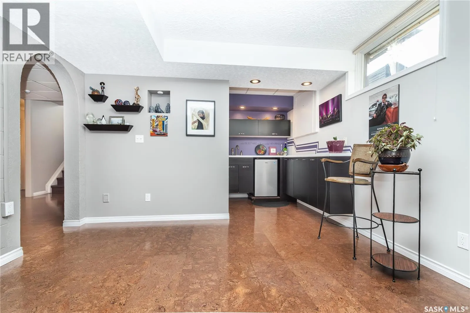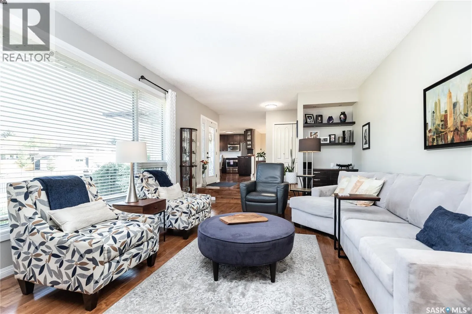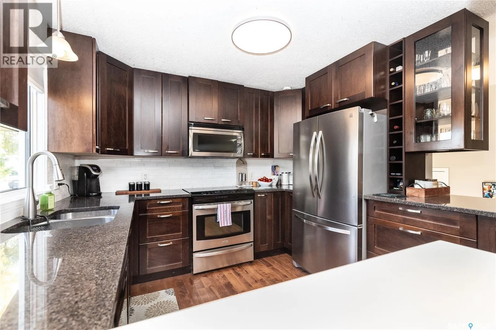 Parcel 120250279 Houses like this donât come along every day! This beautifully renovated 1,536 sq. ft. bungalow offers 3 bedrooms and 2 bathrooms, with upgrades from top to bottom, inside and out. Nestled on a quiet crescent, the home is just minutes from shopping, schools, and quick freeway access to anywhere in Saskatoon. Step inside to find stunning hardwood floors throughout the main level, a sunken living room, and a designer kitchen featuring dark maple cabinetry, quartz countertops, a bar area, custom china cabinet, built-in pet station, eating bar, walk-in pantry, and stainless steel appliancesâall open to the dining and living space. The bedrooms are all generously sized, providing comfort and functionality. The fully developed basement is bright and inviting, thanks to large windows that fill the space with natural light. Enjoy the family room with a cozy gas fireplace and wet bar, plus French doors leading to a versatile multipurpose room ideal for a gym, playroom, or office, all with cork flooring for additional warmth. Youâll also find a bedroom/den, a 3-piece bath with heated marble floors, and a spacious laundry room with sink, storage, and clever under-landing storage. The backyard is truly an oasisârelax under the gazebo while listening to the waterfall cascading into the pond, surrounded by a lush perennial garden. The 24x24 heated garage and maintenance-free cindercrete block fence provide both security and privacy. This home is move-in readyâjust unpack and enjoy! (id:27476)