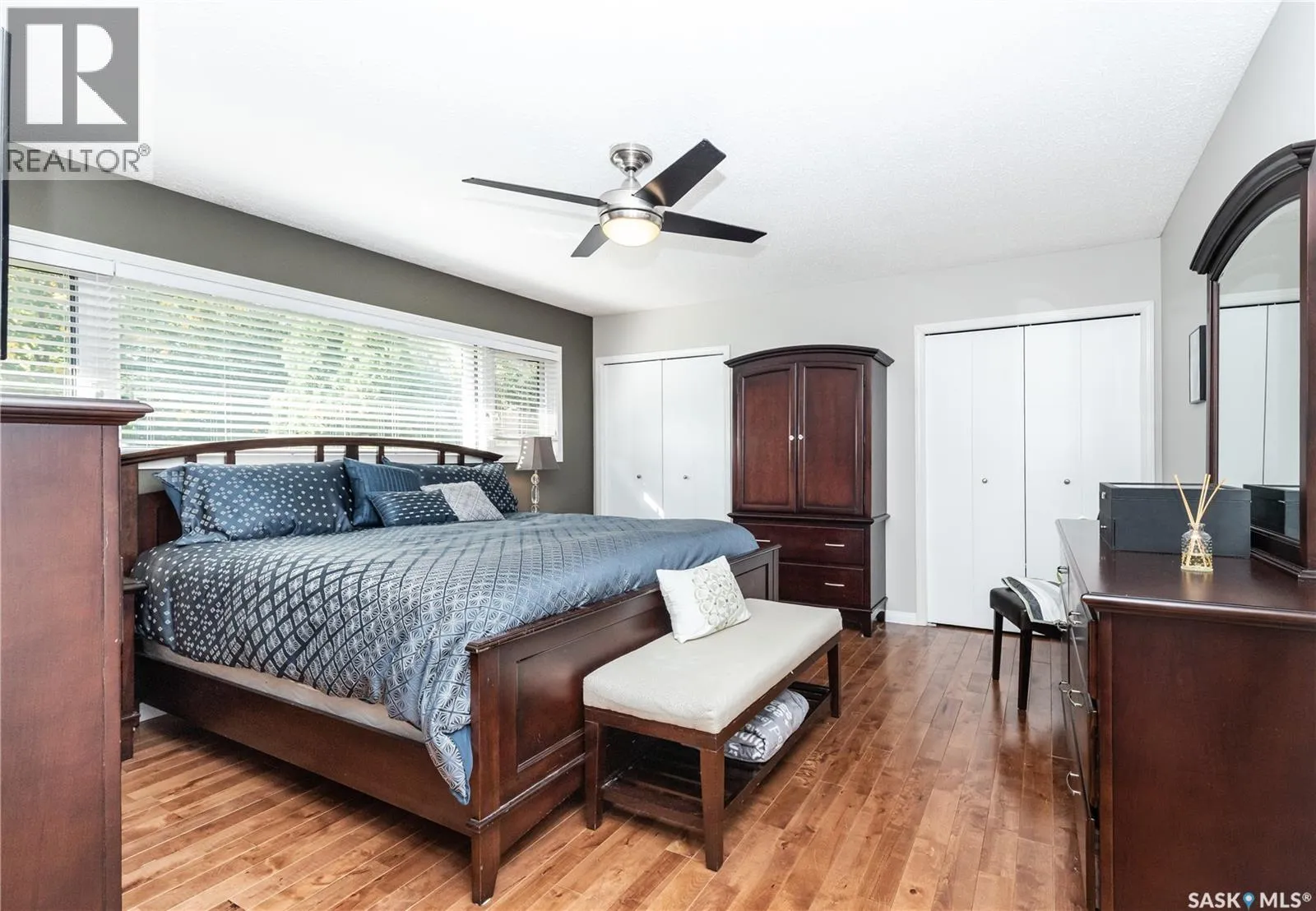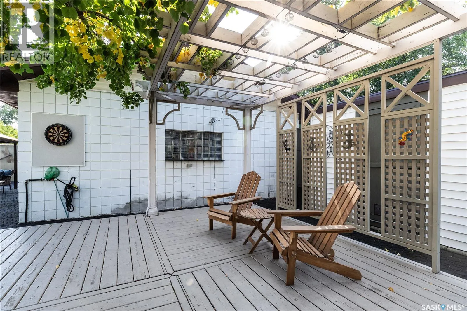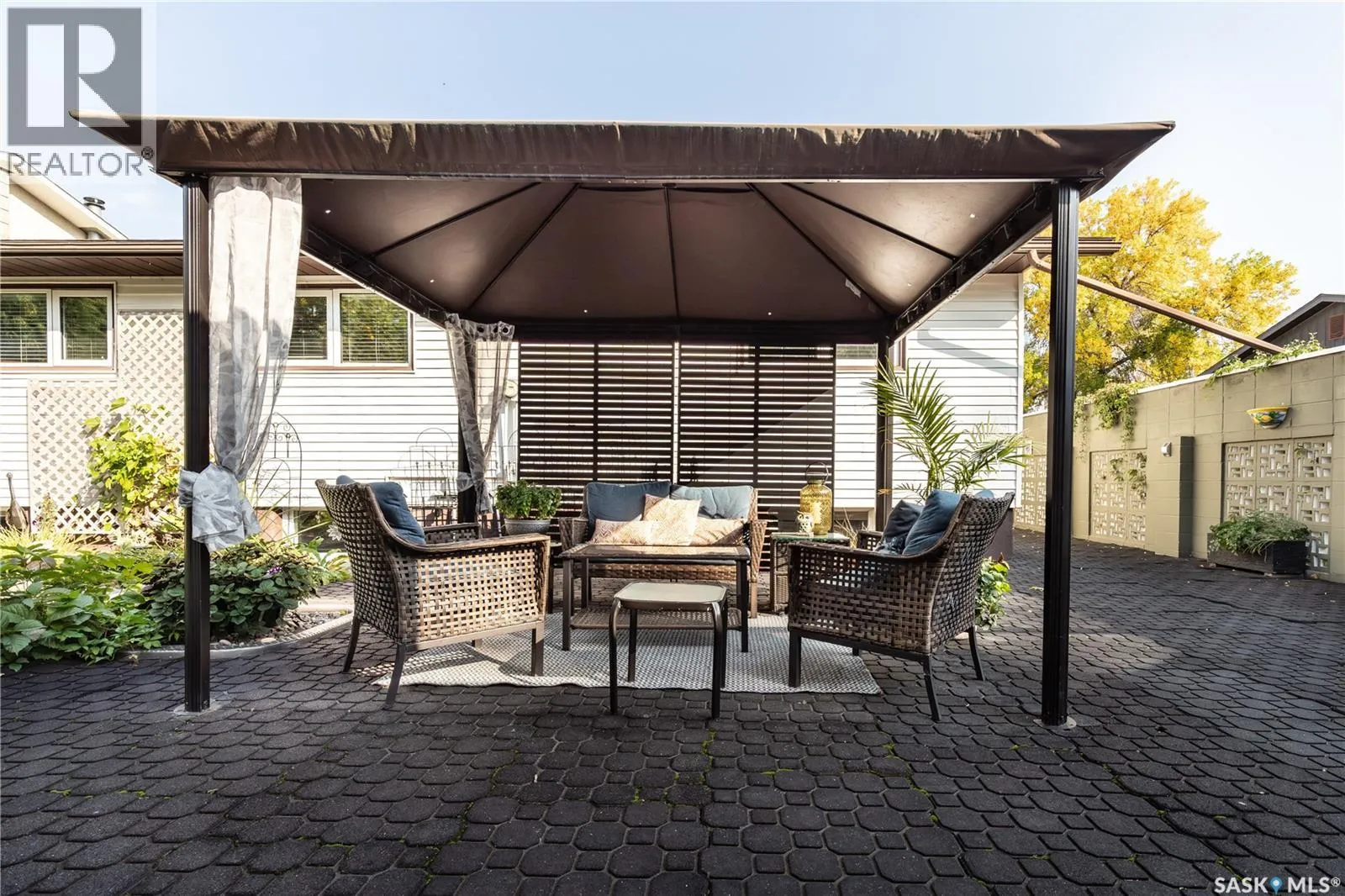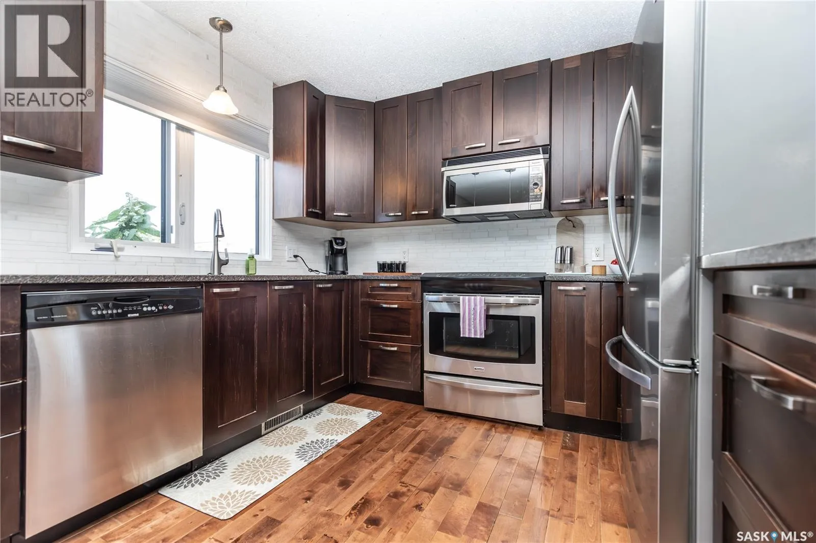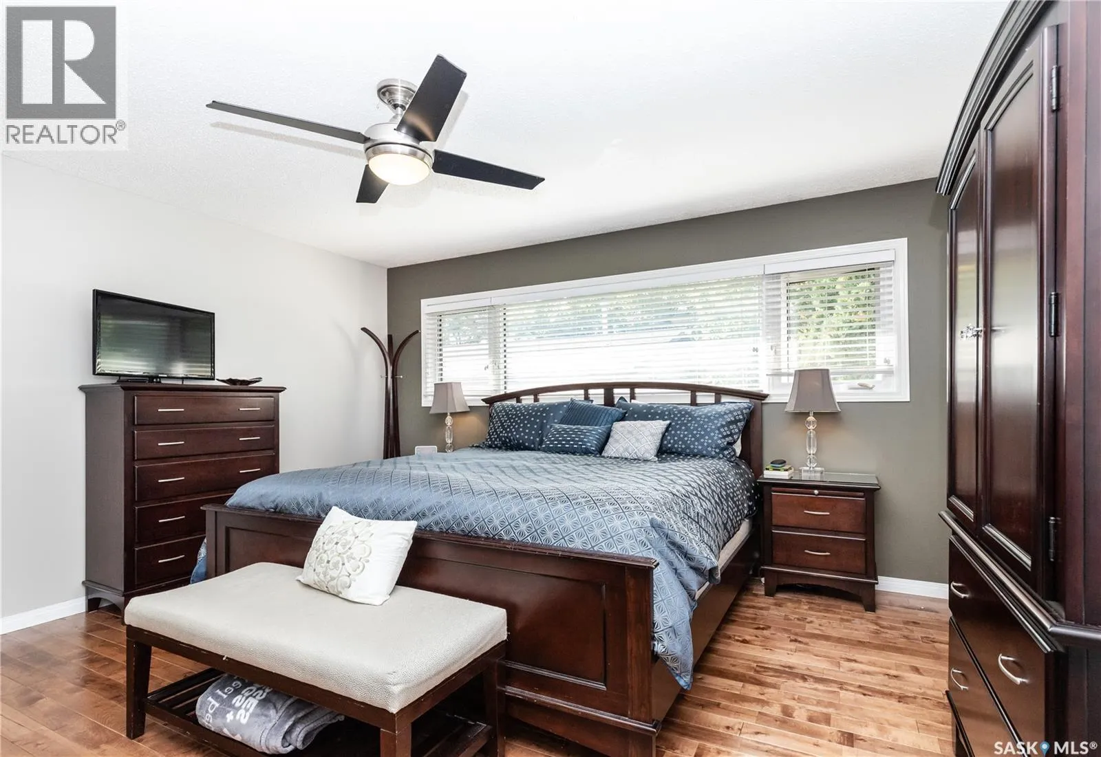 Parcel 120250279 Houses like this donât come along every day! This beautifully renovated 1,536 sq. ft. bungalow offers 3 bedrooms and 2 bathrooms, with upgrades from top to bottom, inside and out. Nestled on a quiet crescent, the home is just minutes from shopping, schools, and quick freeway access to anywhere in Saskatoon. Step inside to find stunning hardwood floors throughout the main level, a sunken living room, and a designer kitchen featuring dark maple cabinetry, quartz countertops, a bar area, custom china cabinet, built-in pet station, eating bar, walk-in pantry, and stainless steel appliancesâall open to the dining and living space. The bedrooms are all generously sized, providing comfort and functionality. The fully developed basement is bright and inviting, thanks to large windows that fill the space with natural light. Enjoy the family room with a cozy gas fireplace and wet bar, plus French doors leading to a versatile multipurpose room ideal for a gym, playroom, or office, all with cork flooring for additional warmth. Youâll also find a bedroom/den, a 3-piece bath with heated marble floors, and a spacious laundry room with sink, storage, and clever under-landing storage. The backyard is truly an oasisârelax under the gazebo while listening to the waterfall cascading into the pond, surrounded by a lush perennial garden. The 24x24 heated garage and maintenance-free cindercrete block fence provide both security and privacy. This home is move-in readyâjust unpack and enjoy! (id:27476)