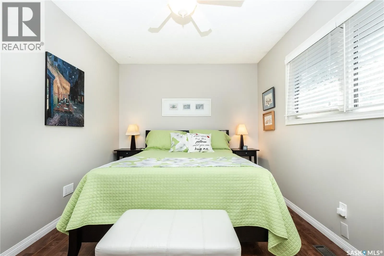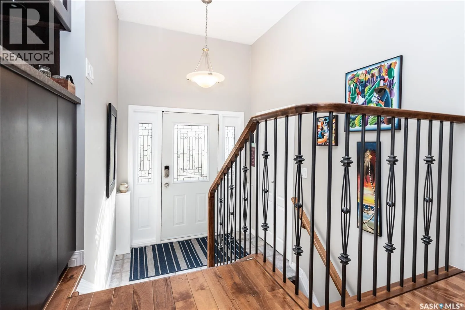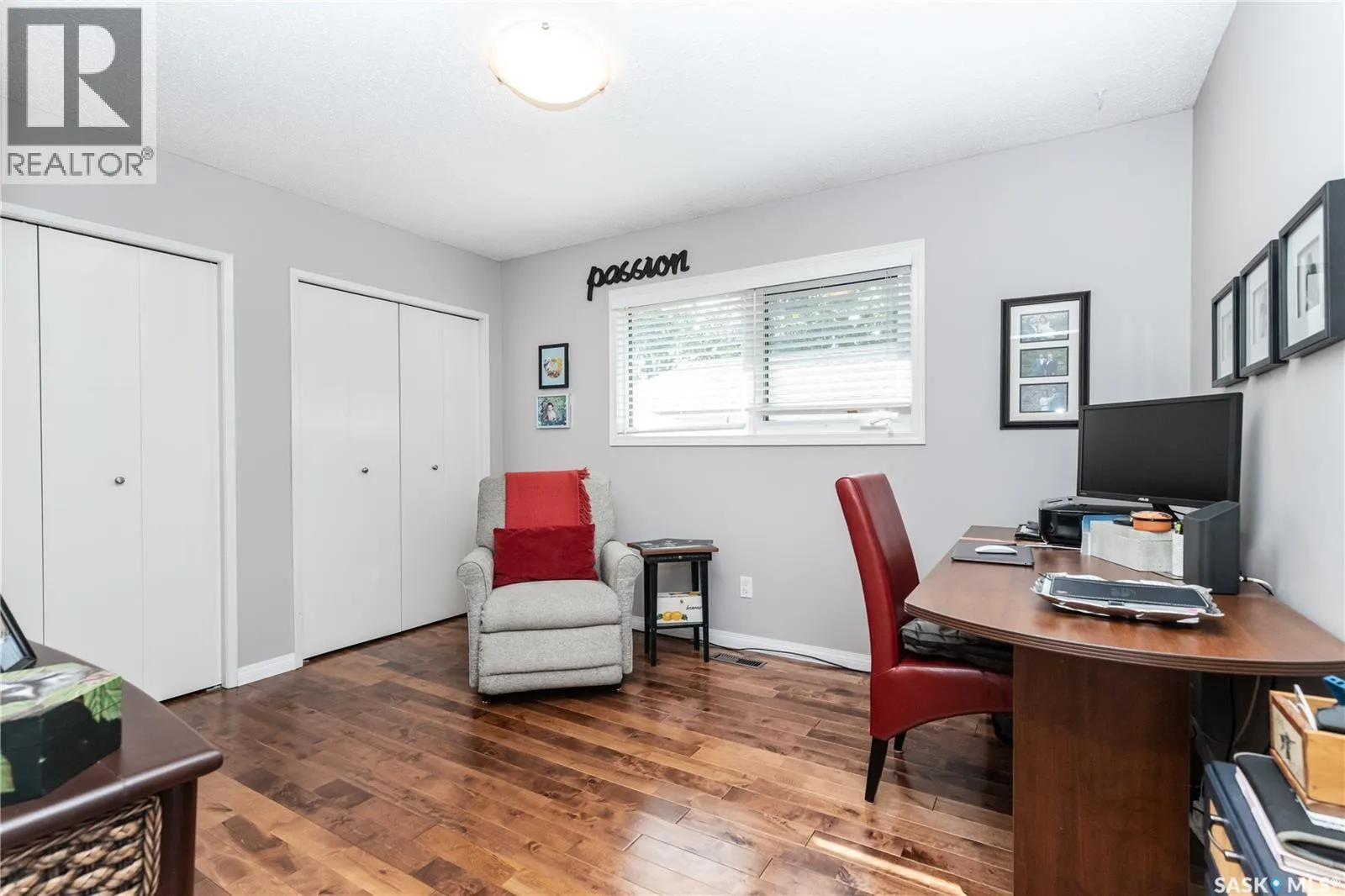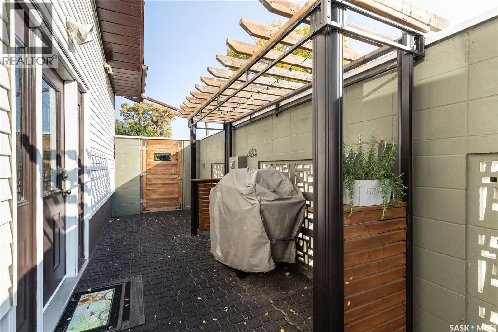 Parcel 120250279 Houses like this donât come along every day! This beautifully renovated 1,536 sq. ft. bungalow offers 3 bedrooms and 2 bathrooms, with upgrades from top to bottom, inside and out. Nestled on a quiet crescent, the home is just minutes from shopping, schools, and quick freeway access to anywhere in Saskatoon. Step inside to find stunning hardwood floors throughout the main level, a sunken living room, and a designer kitchen featuring dark maple cabinetry, quartz countertops, a bar area, custom china cabinet, built-in pet station, eating bar, walk-in pantry, and stainless steel appliancesâall open to the dining and living space. The bedrooms are all generously sized, providing comfort and functionality. The fully developed basement is bright and inviting, thanks to large windows that fill the space with natural light. Enjoy the family room with a cozy gas fireplace and wet bar, plus French doors leading to a versatile multipurpose room ideal for a gym, playroom, or office, all with cork flooring for additional warmth. Youâll also find a bedroom/den, a 3-piece bath with heated marble floors, and a spacious laundry room with sink, storage, and clever under-landing storage. The backyard is truly an oasisârelax under the gazebo while listening to the waterfall cascading into the pond, surrounded by a lush perennial garden. The 24x24 heated garage and maintenance-free cindercrete block fence provide both security and privacy. This home is move-in readyâjust unpack and enjoy! (id:27476)