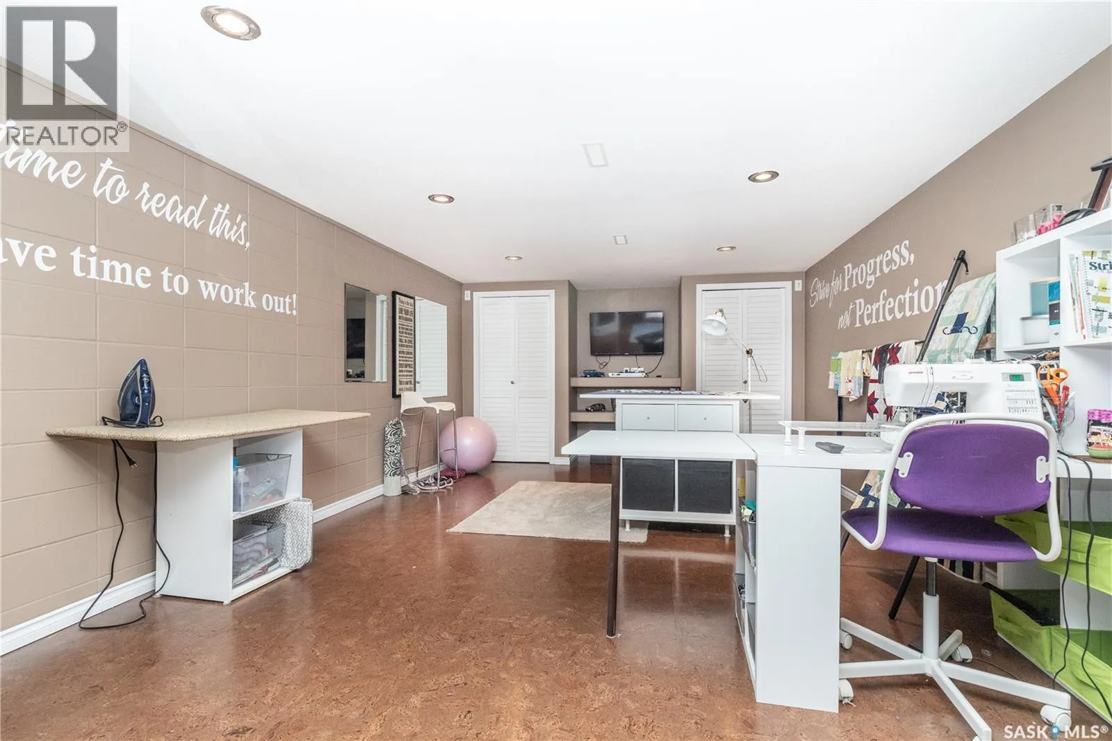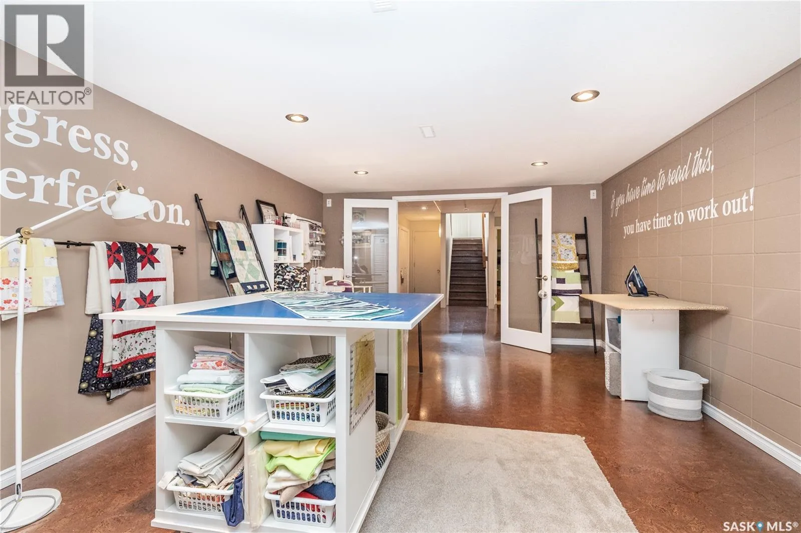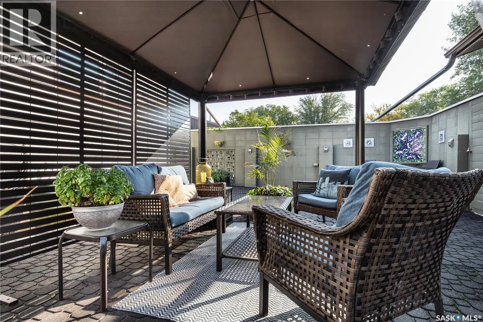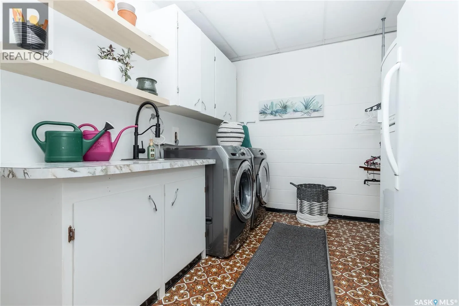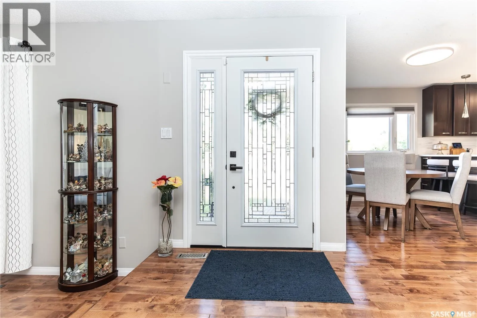 Parcel 120250279 Houses like this donât come along every day! This beautifully renovated 1,536 sq. ft. bungalow offers 3 bedrooms and 2 bathrooms, with upgrades from top to bottom, inside and out. Nestled on a quiet crescent, the home is just minutes from shopping, schools, and quick freeway access to anywhere in Saskatoon. Step inside to find stunning hardwood floors throughout the main level, a sunken living room, and a designer kitchen featuring dark maple cabinetry, quartz countertops, a bar area, custom china cabinet, built-in pet station, eating bar, walk-in pantry, and stainless steel appliancesâall open to the dining and living space. The bedrooms are all generously sized, providing comfort and functionality. The fully developed basement is bright and inviting, thanks to large windows that fill the space with natural light. Enjoy the family room with a cozy gas fireplace and wet bar, plus French doors leading to a versatile multipurpose room ideal for a gym, playroom, or office, all with cork flooring for additional warmth. Youâll also find a bedroom/den, a 3-piece bath with heated marble floors, and a spacious laundry room with sink, storage, and clever under-landing storage. The backyard is truly an oasisârelax under the gazebo while listening to the waterfall cascading into the pond, surrounded by a lush perennial garden. The 24x24 heated garage and maintenance-free cindercrete block fence provide both security and privacy. This home is move-in readyâjust unpack and enjoy! (id:27476)