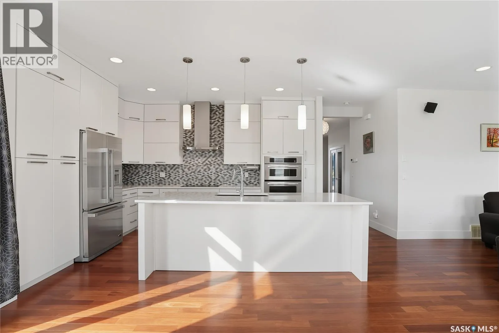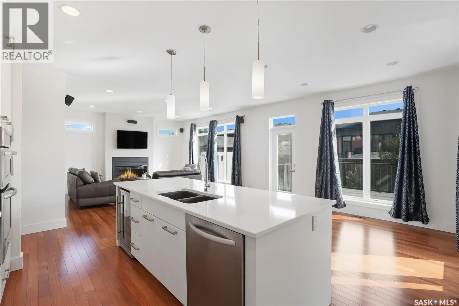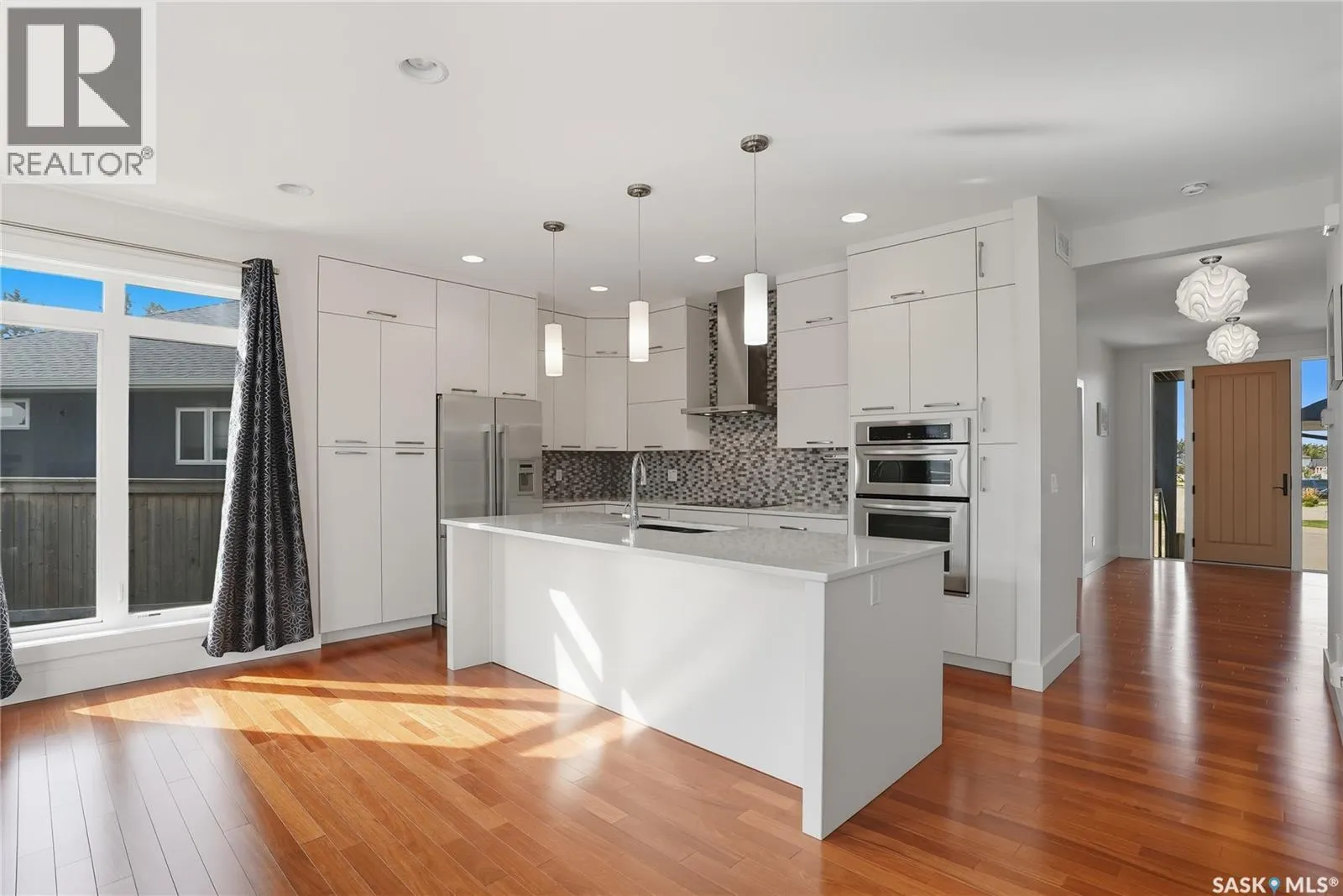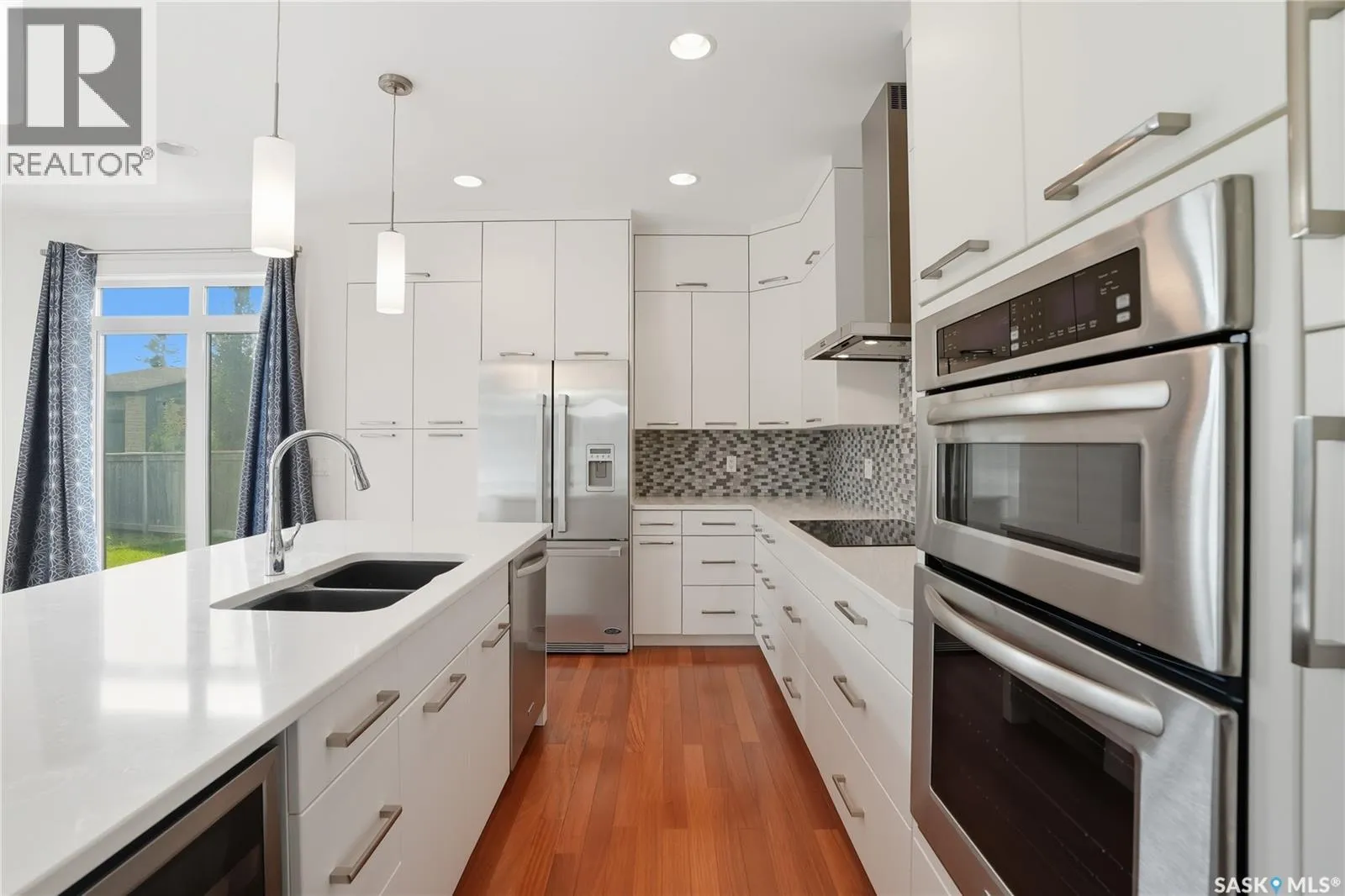Immaculate Evergreen Home on a Large Pie-Shaped Lot with Detached Garage! Situated in the sought-after Evergreen neighbourhood, this stunning 2-storey home sits on a generous pie-shaped lot & features both an oversized attached double garage with a drive-through third door & a single detached garageâideal for car enthusiasts or extra storage! Step into the spacious foyer through an oversized 8â front door & experience the pride of ownership throughout. The main floor features a dedicated office/den near the entrance & a light-filled open-concept kitchen, living, and dining area. The sleek modern kitchen boasts ample white cabinetry, a wall pantry, quartz countertops, tile backsplash, stainless steel appliances including a wine fridge & stylish finishes throughout. The living room is anchored by a cozy gas fireplace, while the large dining space opens via patio door to the deck & landscaped backyard. Rich hardwood flooring complements the main level, which also includes a convenient 2-piece bathroom tucked off the mudroom, leading to the impressive 22.10x27.3x30.4 garage. Upstairs, youâll find 3 spacious bedrooms, including a luxurious primary suite with a 5-piece ensuite featuring a soaker tub, double walk-in shower, dual sinks, water closet & walk-in closet. The upper floor also offers a full 5-piece main bathroom and a large laundry room with counter space and cabinetry. The finished basement provides even more room to entertain, with a huge family room, games area, 4th bedroom & full 4-piece bath. A spacious utility area adds storage flexibility. Enjoy custom blinds, A/C, central vacuum. Loads of potential for the back yard which is ready to be transformed into your dream space, plus garden beds & easy access to nearby walking paths. Note the single detached garage (19.8'x12.7') with easy access. Located near the Forestry Farm/Zoo, amenities, school bus pick-up, elementary & high schools! Call your Realtor® to view today! *some pictures are virtually staged (id:27476)