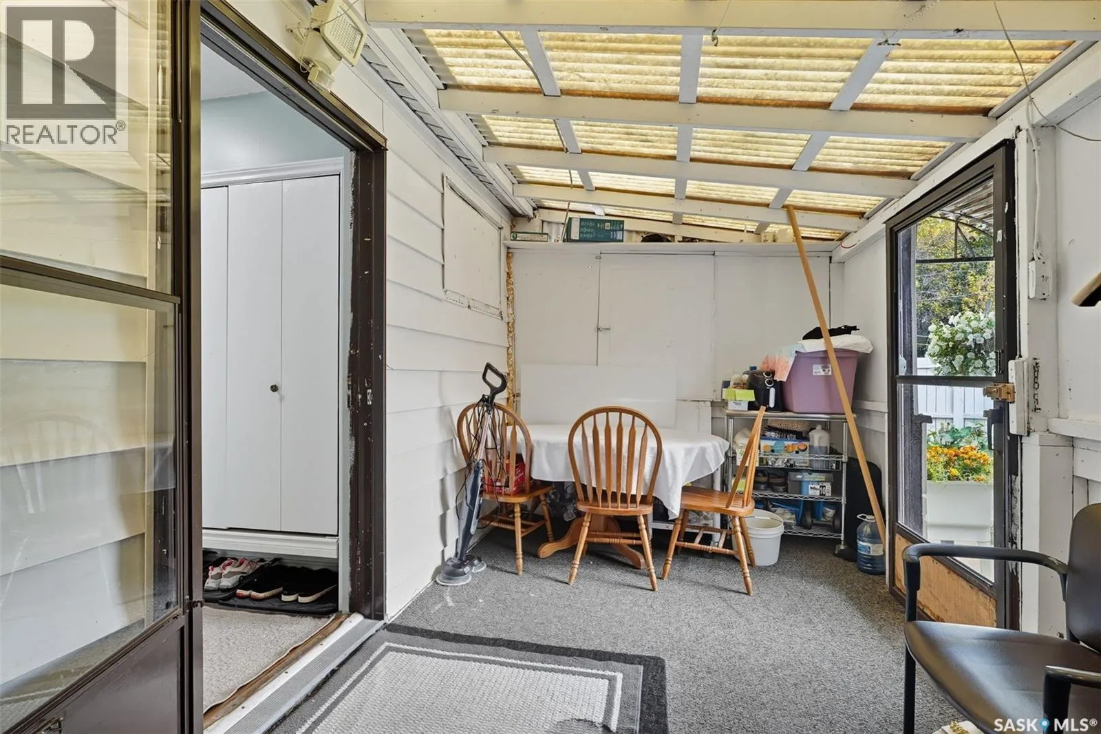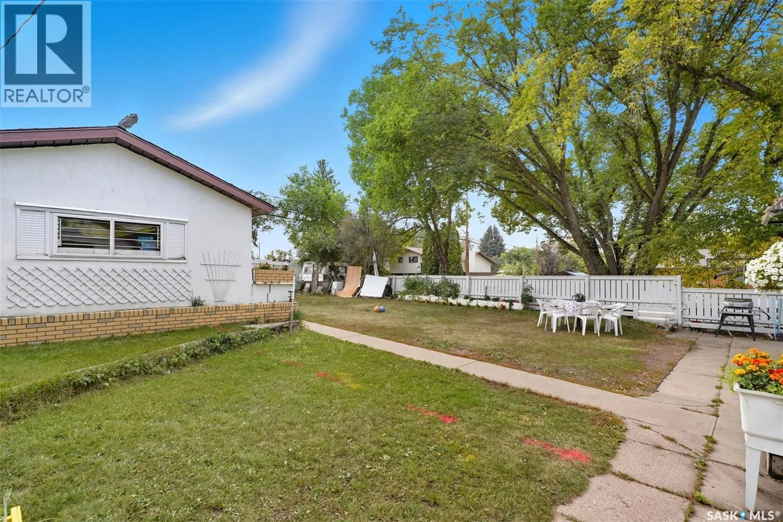 Bright, well-kept 1969 bungalow on a 50Ã130 corner lot in Meadowgreenâ~2-min walk to the Dawah & Community Centre, steps to 22nd St transit/amenities, and an easy stroll to St. Paulâs Hospital. Main level offers 3 bedrooms, a gorgeous eat-in kitchen (tile flooring, ceiling fan, LED pot lights, long run of cabinetry), a comfortable living room, and an updated 4-pc bath with tiled surround/niche (see photos). Bedrooms show warm wood tones; vinyl plank runs through most of the main for easy care. The enclosed back porch adds year-round utilityâcold-room storage in winter, gear space in summer. Finished lower level features a bedroom + windowed den (use as office/flex), a bathroom with in-bath laundry (see photos), and extra storage. Outside, enjoy a fully fenced, extra-deep backyard with rear gate access and a single detached garage with opener and space for a workbench. Mature city trees are beyond the rear fenceâso you get privacy and shade without giving up usable yard area. Possession March 2025. (id:27476)