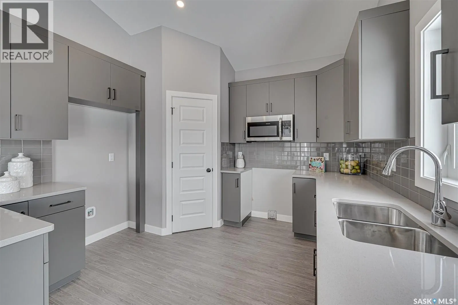 "New" Ehrenburg built 1332 sq.ft Modified Bi level. Spacious and open floor plan. Lower level is designed to allow for an Optional 2 Bedroom LEGAL SUITE. Kitchen features: Superior built Custom cabinets, exterior vented OTR microwave, built in dishwasher and quartz counter tops. 3 bedrooms. Master bedroom with walk in closet and 3 piece ensuite, Triple glazed windows. Double attached garage. Poured concrete driveway and front landscaping. Scheduled for a April 2026 possession. Currently Under Construction. **NOTE** Pictures are from a previously completed Unit. Interior and Exterior specs vary between builds. (id:27476)