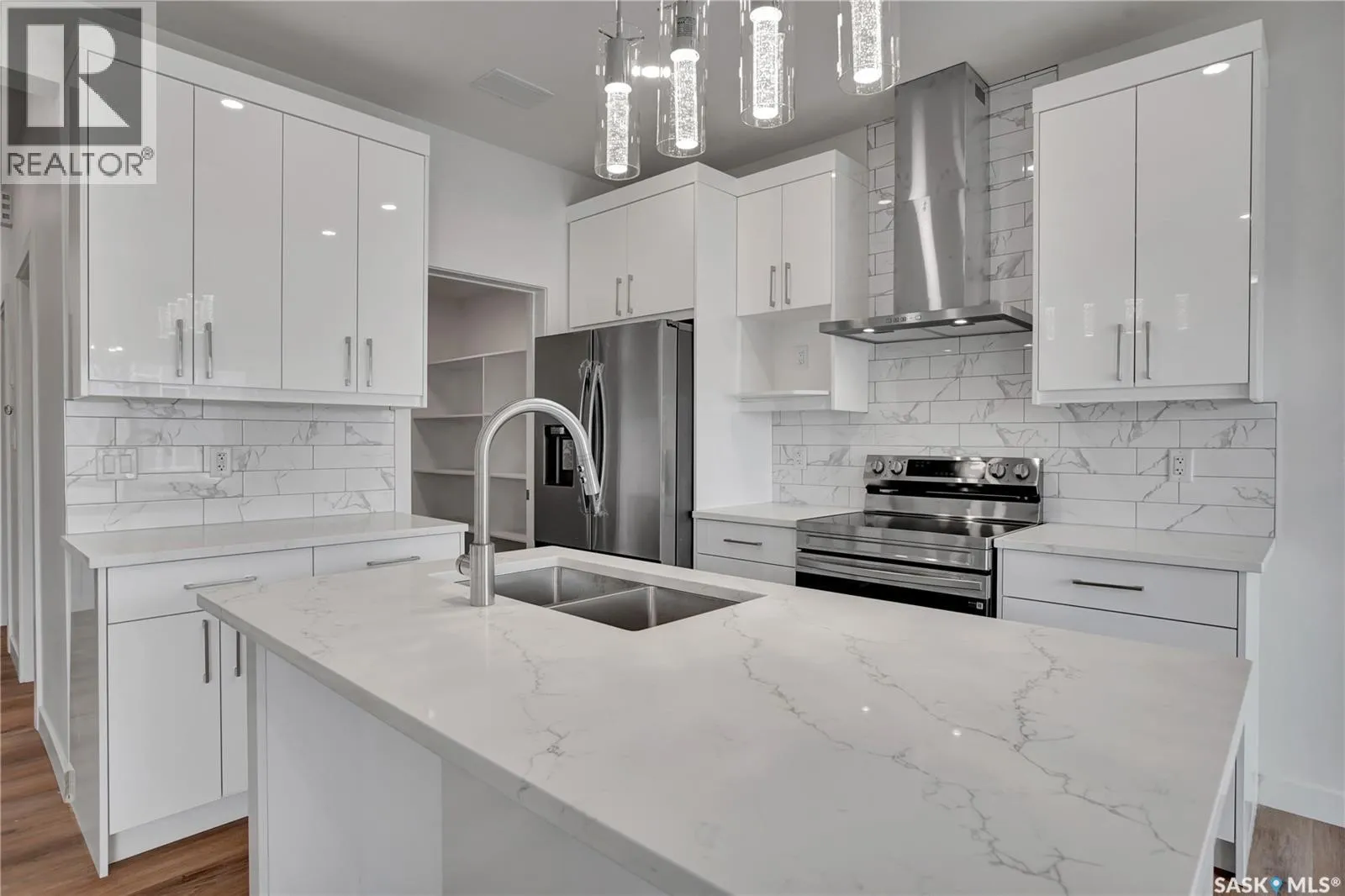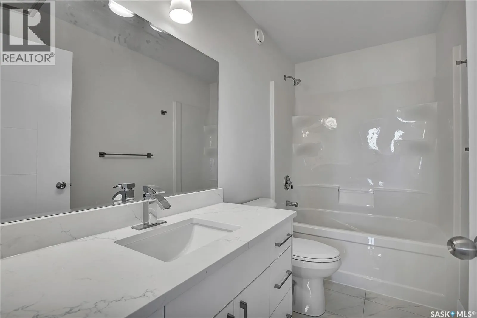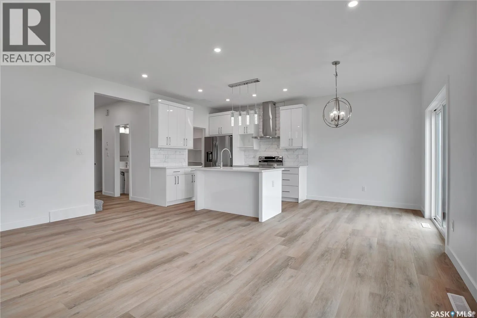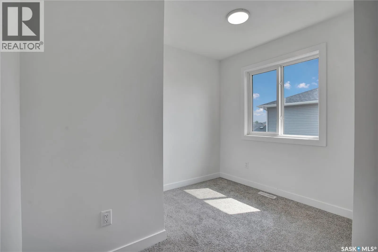 Discover modern living in Saskatoonâs vibrant Kensington community with this brand-new 1,756 sq. ft. two-storey by Abi Homes. Designed for style and function, it features a bright foyer with oversized windows, a spacious open-concept living and dining area, and a chef-inspired kitchen. Upstairs offers three bedrooms, including a primary suite with two walk-in closets and a spa-like ensuite, plus a bonus room and office. The basement features a separate side entry, offering potential for a legal two-bedroom suite plus an extra bedroom and bathroom for the main residence. Built for comfort and efficiency, it includes triple-pane windows, high-grade insulation, radon mitigation, and a 95% high-efficiency furnace with HRV. An oversized garage and large backyard provide plenty of space for vehicles, storage, and outdoor living. Complete with a sleek modern exterior, this home will be move-in ready in a family-friendly neighbourhood close to parks, schools, and amenities. Early 2026 completion with a New Home Warranty. Developed with pride in quality and service by Abi Homes, a boutique luxury builder with over 15 years experience. (id:27476)