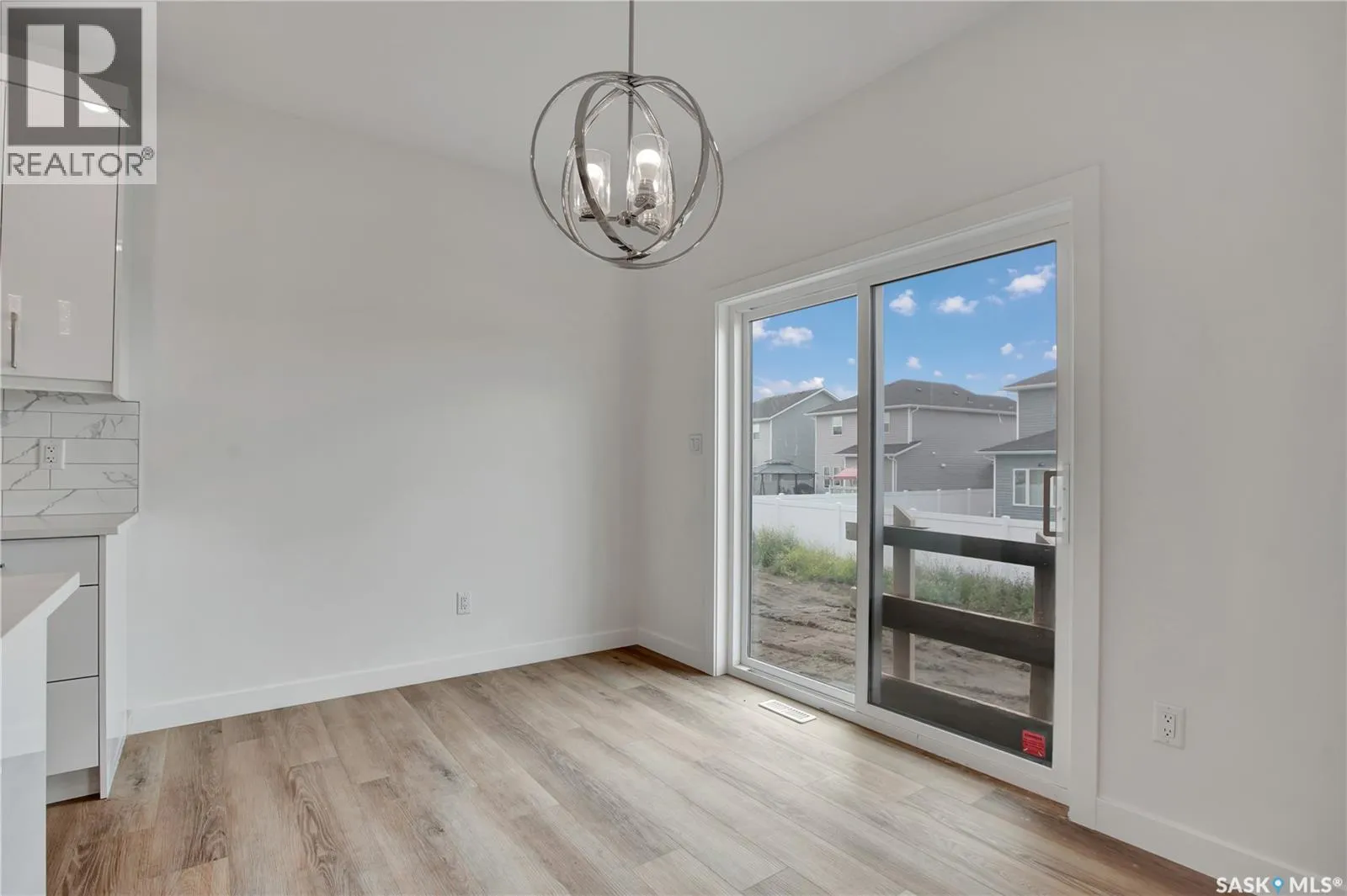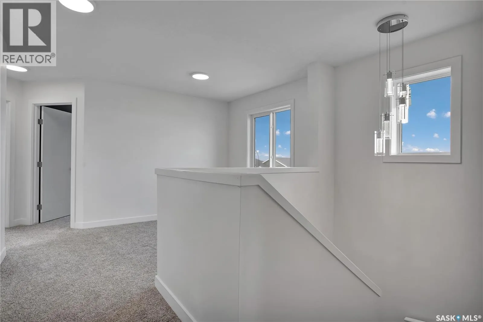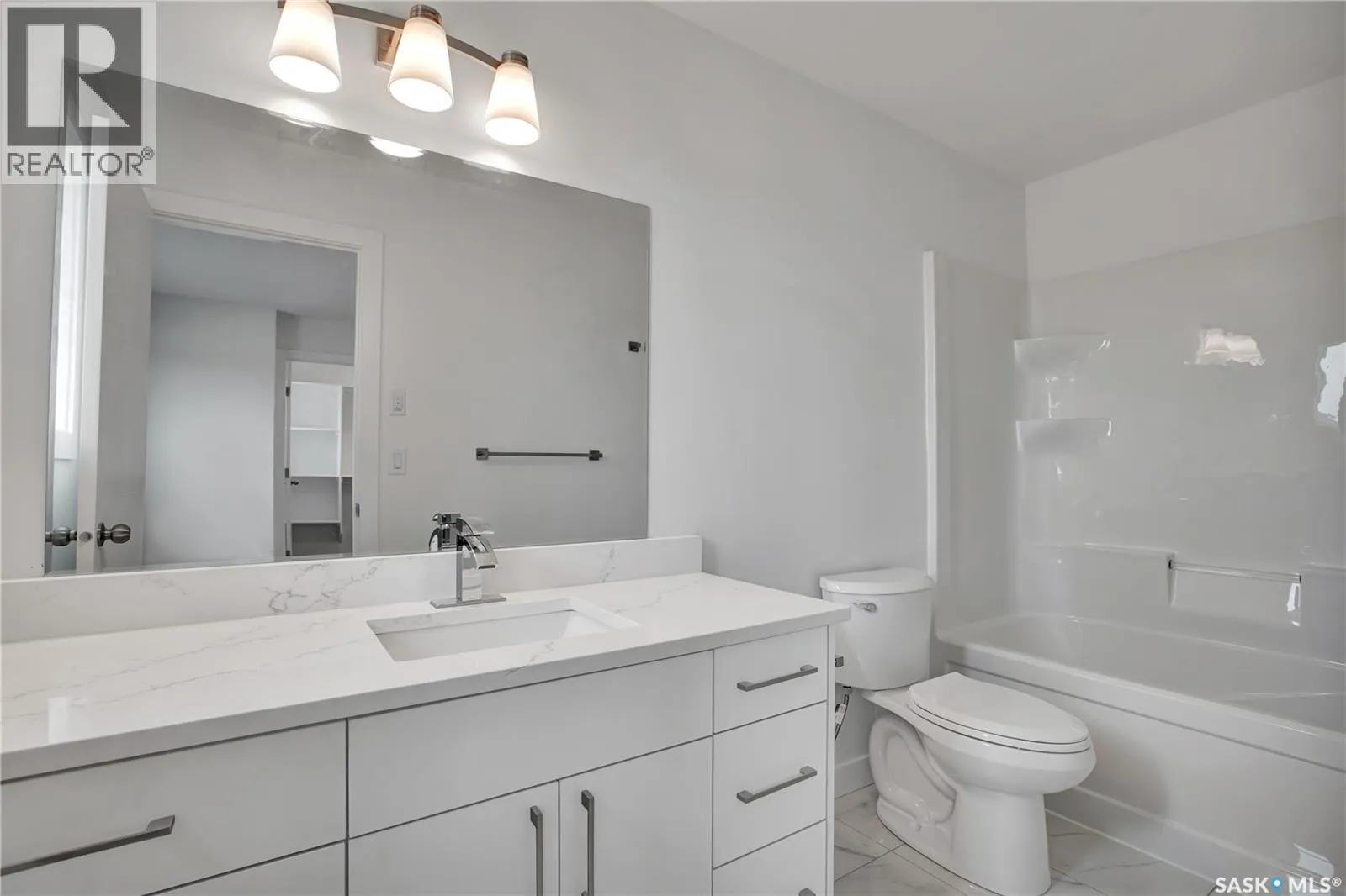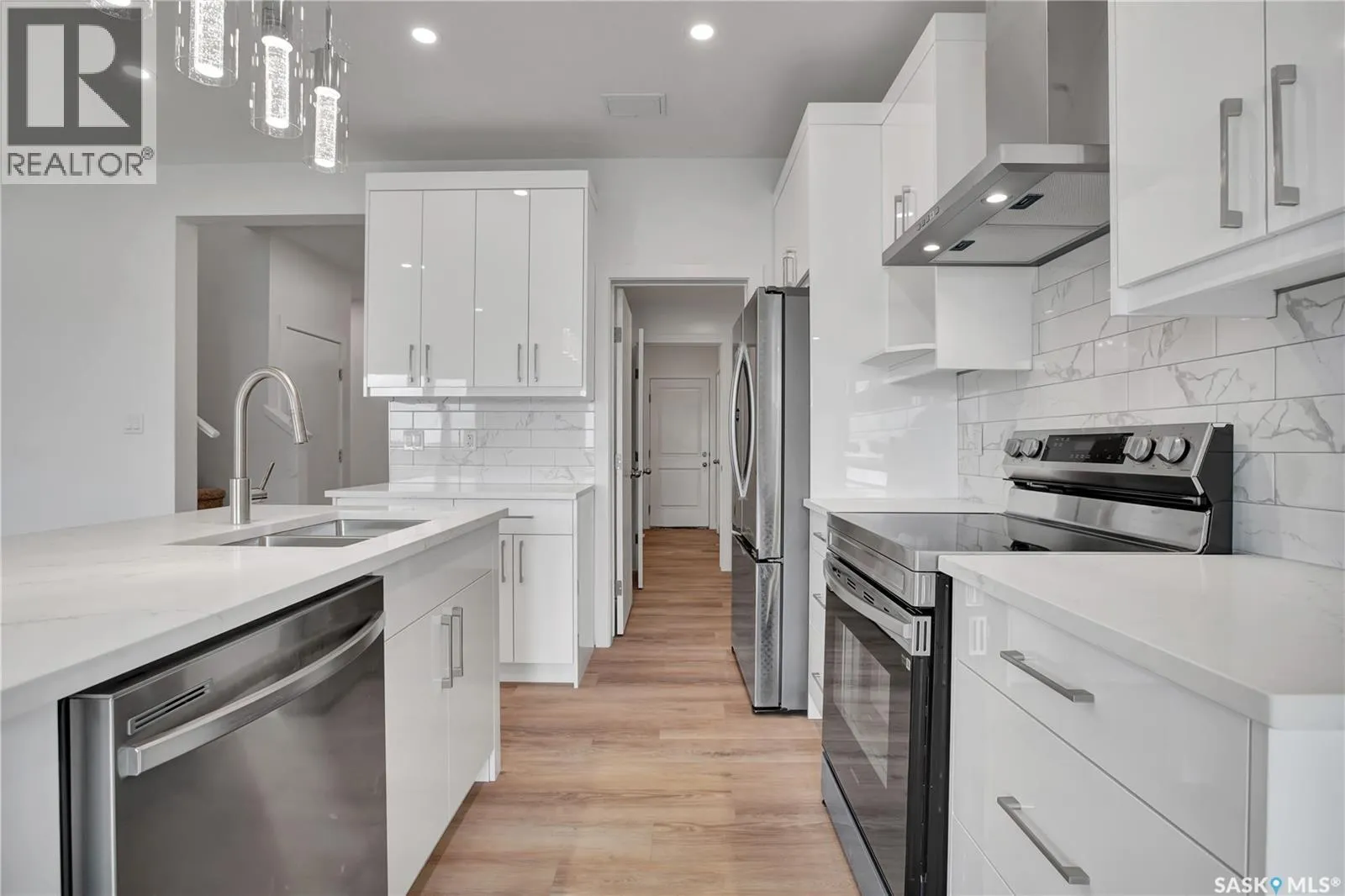 Discover modern living in Saskatoonâs vibrant Kensington community with this brand-new 1,756 sq. ft. two-storey by Abi Homes. Designed for style and function, it features a bright foyer with oversized windows, a spacious open-concept living and dining area, and a chef-inspired kitchen. Upstairs offers three bedrooms, including a primary suite with two walk-in closets and a spa-like ensuite, plus a bonus room and office. The basement features a separate side entry, offering potential for a legal two-bedroom suite plus an extra bedroom and bathroom for the main residence. Built for comfort and efficiency, it includes triple-pane windows, high-grade insulation, radon mitigation, and a 95% high-efficiency furnace with HRV. An oversized garage and large backyard provide plenty of space for vehicles, storage, and outdoor living. Complete with a sleek modern exterior, this home will be move-in ready in a family-friendly neighbourhood close to parks, schools, and amenities. Early 2026 completion with a New Home Warranty. Developed with pride in quality and service by Abi Homes, a boutique luxury builder with over 15 years experience. (id:27476)