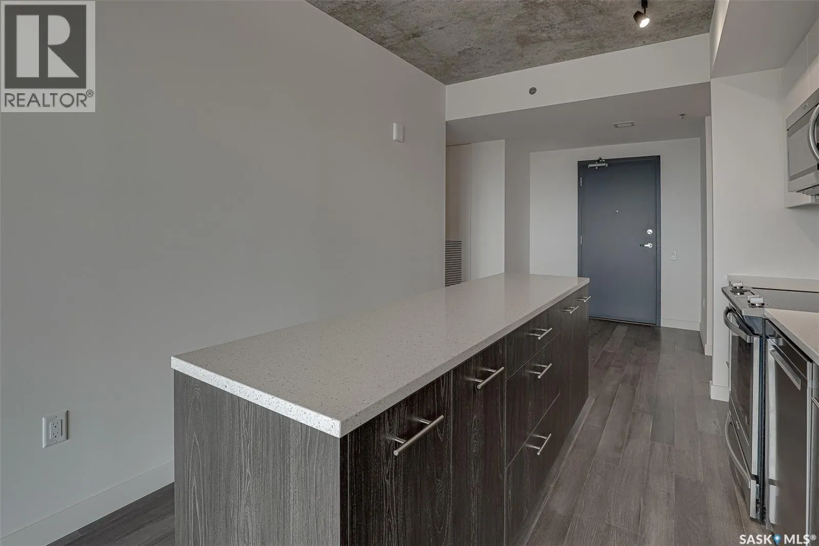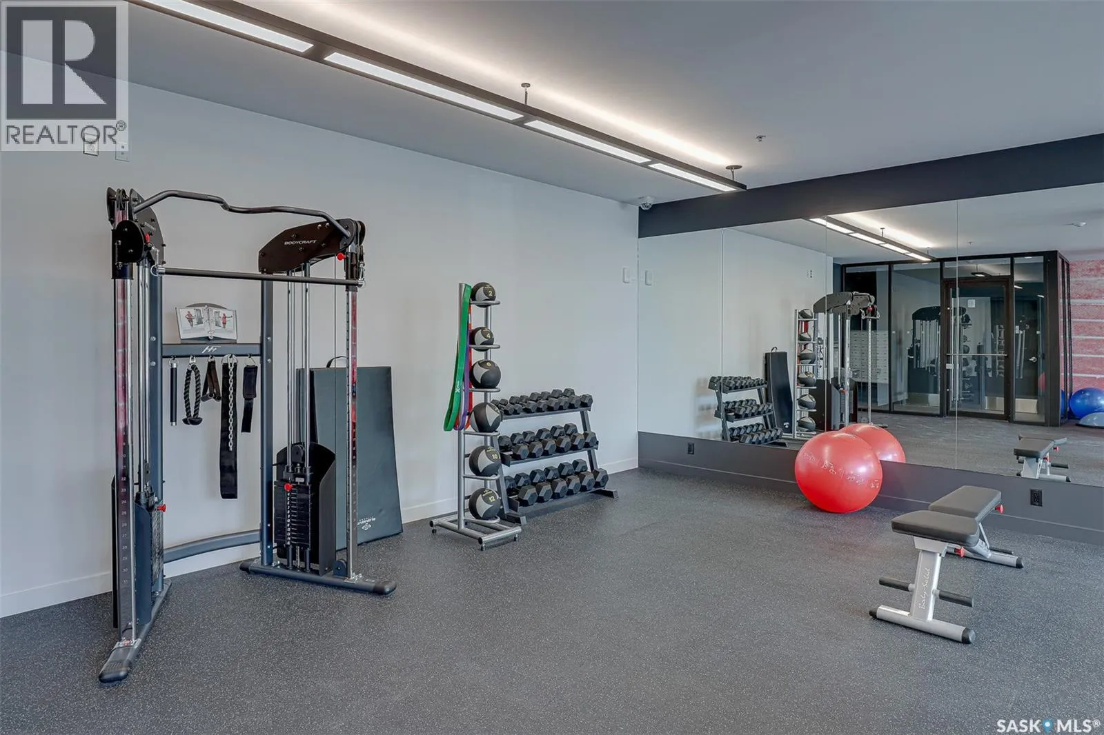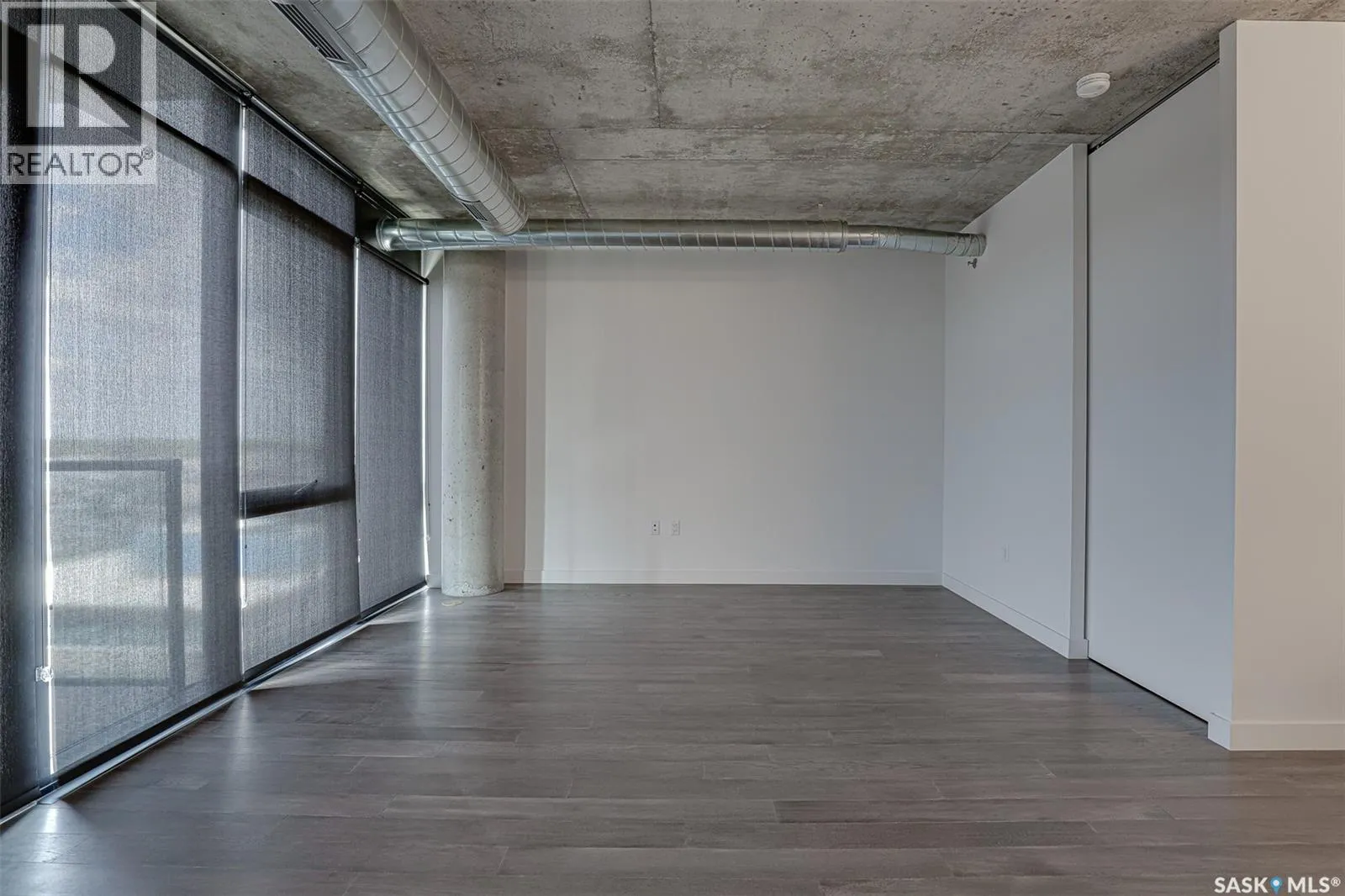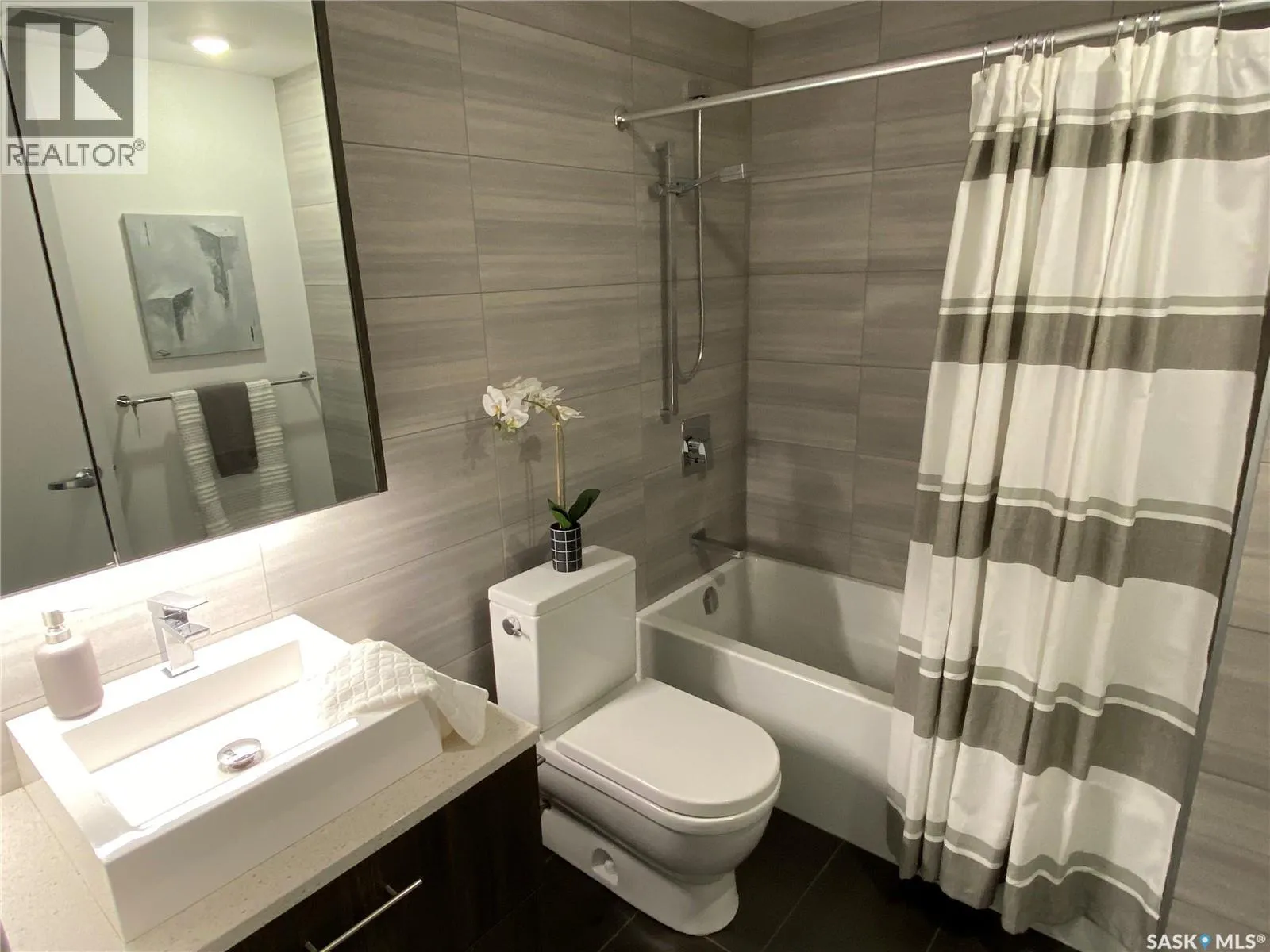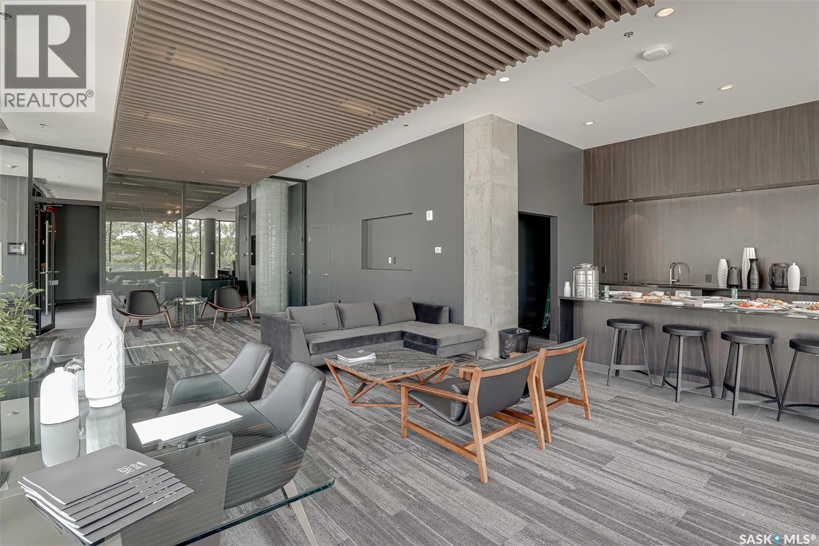 A luxurious 2 bedroom + den River Landing condo. Located on the 12th floor, this unit has amazing West facing views of the river and sunsets. The kitchen has a move-able set of lower cabinetry that can act as an island. The primary bedroom has a walkthrough closet, leading into the 3 piece bath. With exposed concrete ceilings and pillars, this industrial style building is like no other. There is an amenities room with a pool table available for private use, a gym, underground parking, and secure access. Located right on the river near walking paths, restaurants, pubs, the Remai Arts Gallery and much more. (id:27476)