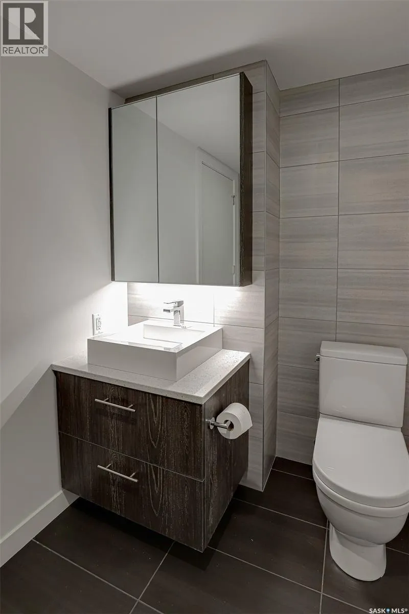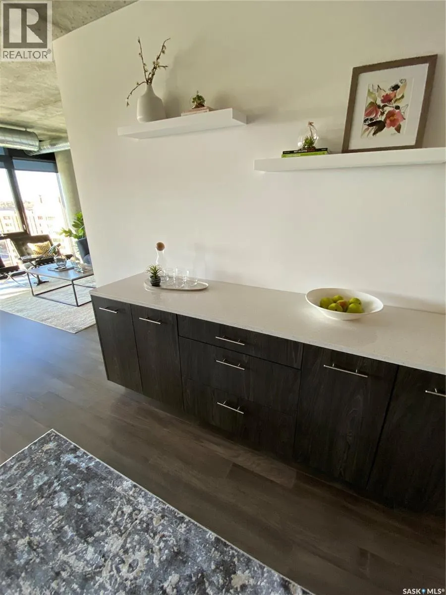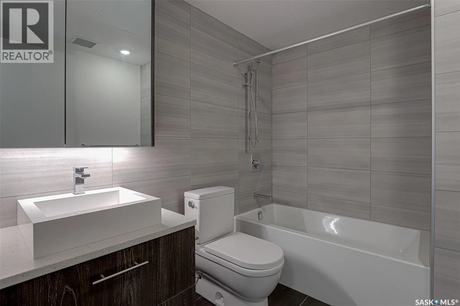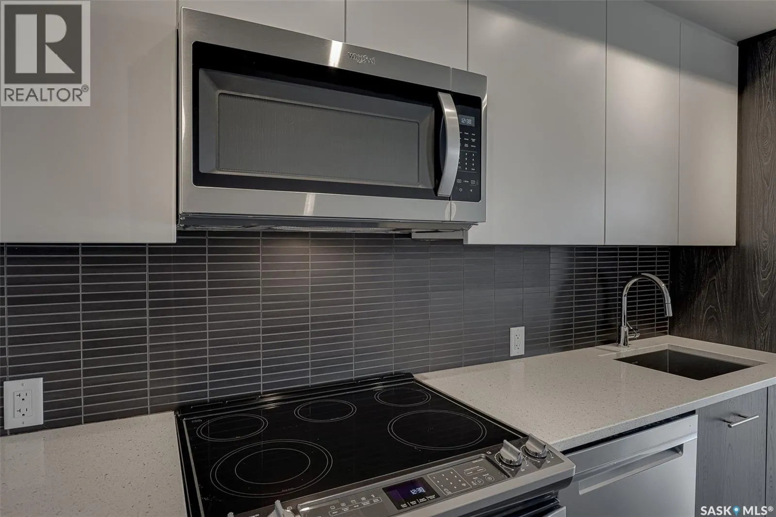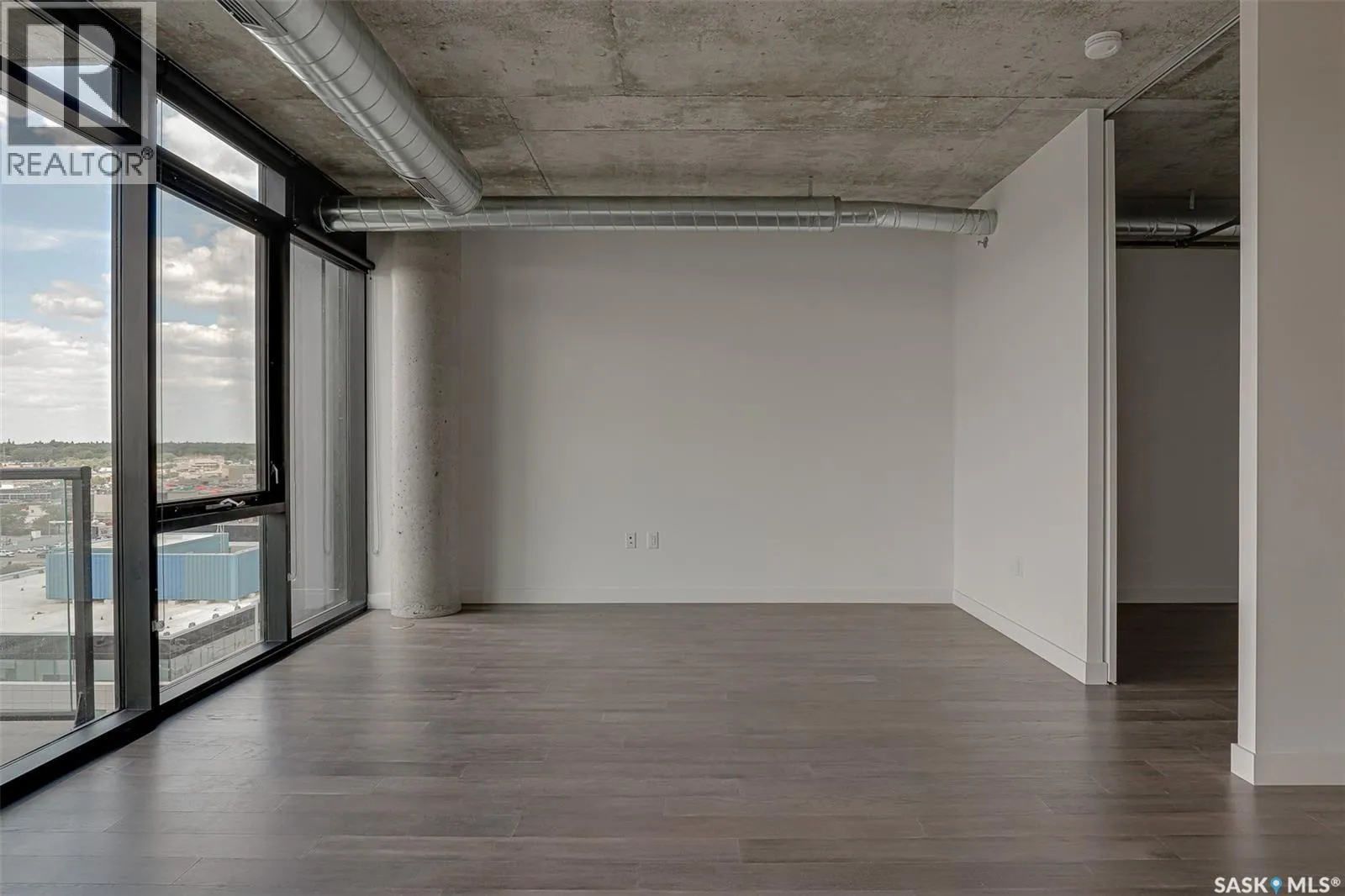A luxurious 2 bedroom + den River Landing condo. Located on the 12th floor, this unit has amazing West facing views of the river and sunsets. The kitchen has a move-able set of lower cabinetry that can act as an island. The primary bedroom has a walkthrough closet, leading into the 3 piece bath. With exposed concrete ceilings and pillars, this industrial style building is like no other. There is an amenities room with a pool table available for private use, a gym, underground parking, and secure access. Located right on the river near walking paths, restaurants, pubs, the Remai Arts Gallery and much more. (id:27476)