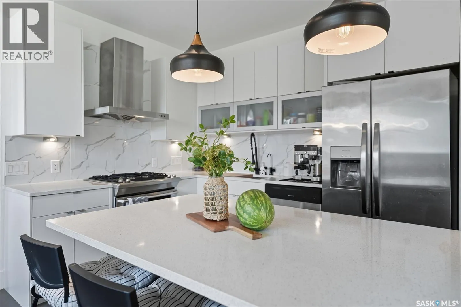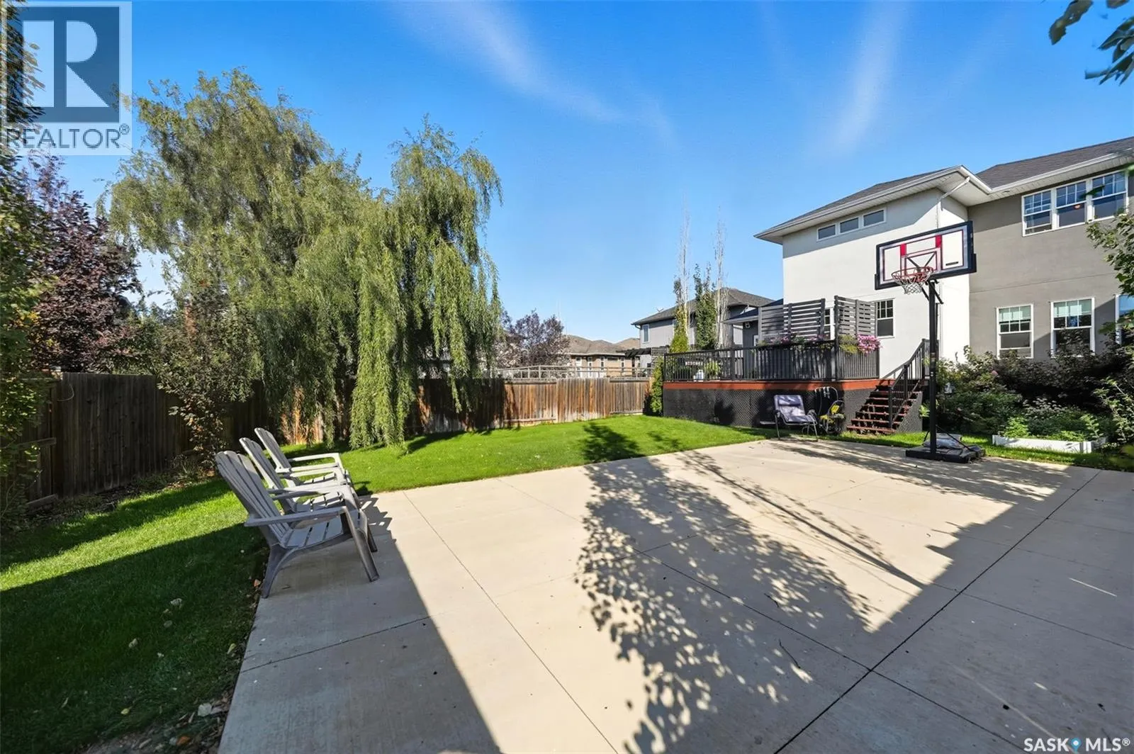 Impressive custom-built two-storey in Willowgrove blending modern elegance, smart design & luxurious finishing. The exterior features stone, European stucco, design accents, professional landscaping with underground sprinkler, and oversized driveway for up to 4 vehicles. The park-like yard offers a spacious deck with 2 gas outlets, patio, and large concrete sport court ideal for basketball / hockey.Inside, grand foyer with 17 ft ceiling, striking staircase, coffered ceiling, and modern lighting introduces the home. Formal dining & living area include built-in cabinet, gas fireplace, wrap-around living room, oak hardwood, and family room with feature wall overlooking the yard. The gourmet kitchen boasts quartz countertop with waterfall-edge island, tiled backsplash, soft-close cabinetry, high-end appliances including gas range, work centre, custom storage, and breakfast nook with built-in seating and cabinets plus a mini dining area. An office with vaulted ceiling & French doors, a designer 2 pc bath, boot room with custom storage, and access to in-floor heated garage complete the main floor.Upstairs offers 4 bedrooms, highlighted by a spectacular primary retreat with dressing room, built-in makeup station, and a spa-inspired ensuite with programmable walk-in steam shower, spa tub, and tile inlay floor. A laundry chute and another full bath add convenience.The finished basement with 9â ceilings, exposed steel beam, and in-floor heating is perfect for entertaining, with wet bar, expansive family room, bathroom, fifth bedroom with walk-in closet, and large laundry room with sink.Additional highlights: HRV, 120-gallon indirect water heater, and built-in audio throughout. Recent upgrades: water softener & RO drinking system (2022; ~$5,000), boiler (2024; ~$10,000), range hood & fridge & dishwasher & garburator (2024). Set on a quiet crescent close to schools, park and shopping. This fully finished home delivers luxury, comfort & exceptional family living at its finest. (id:27476)