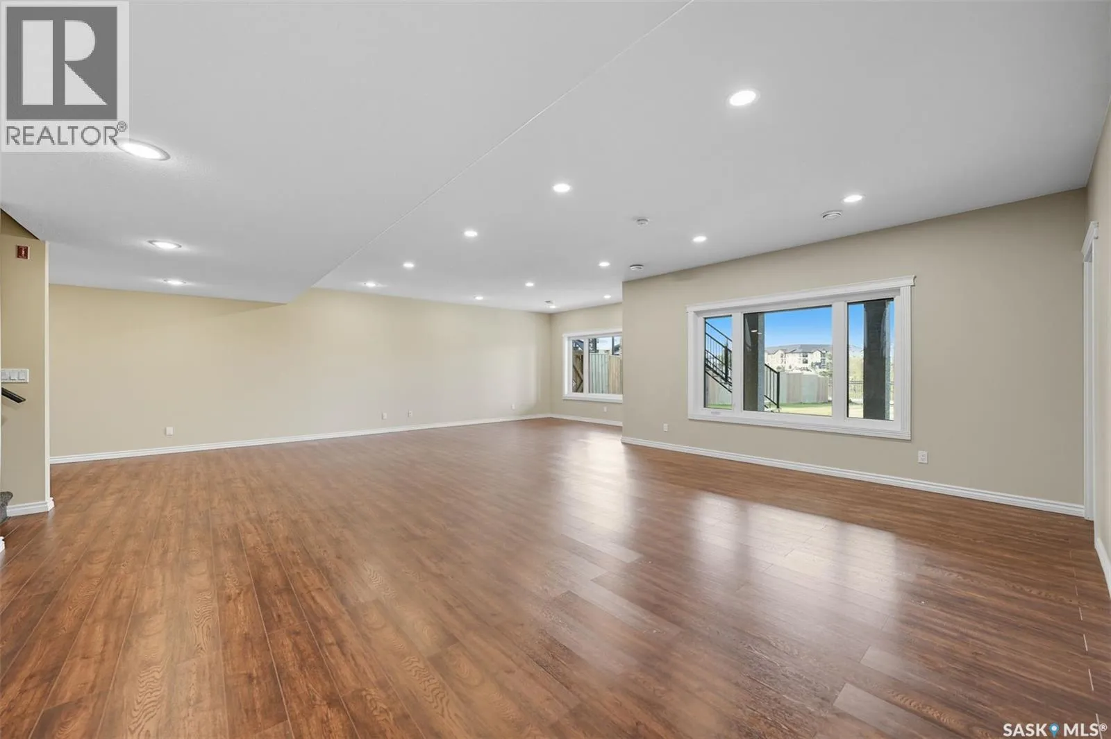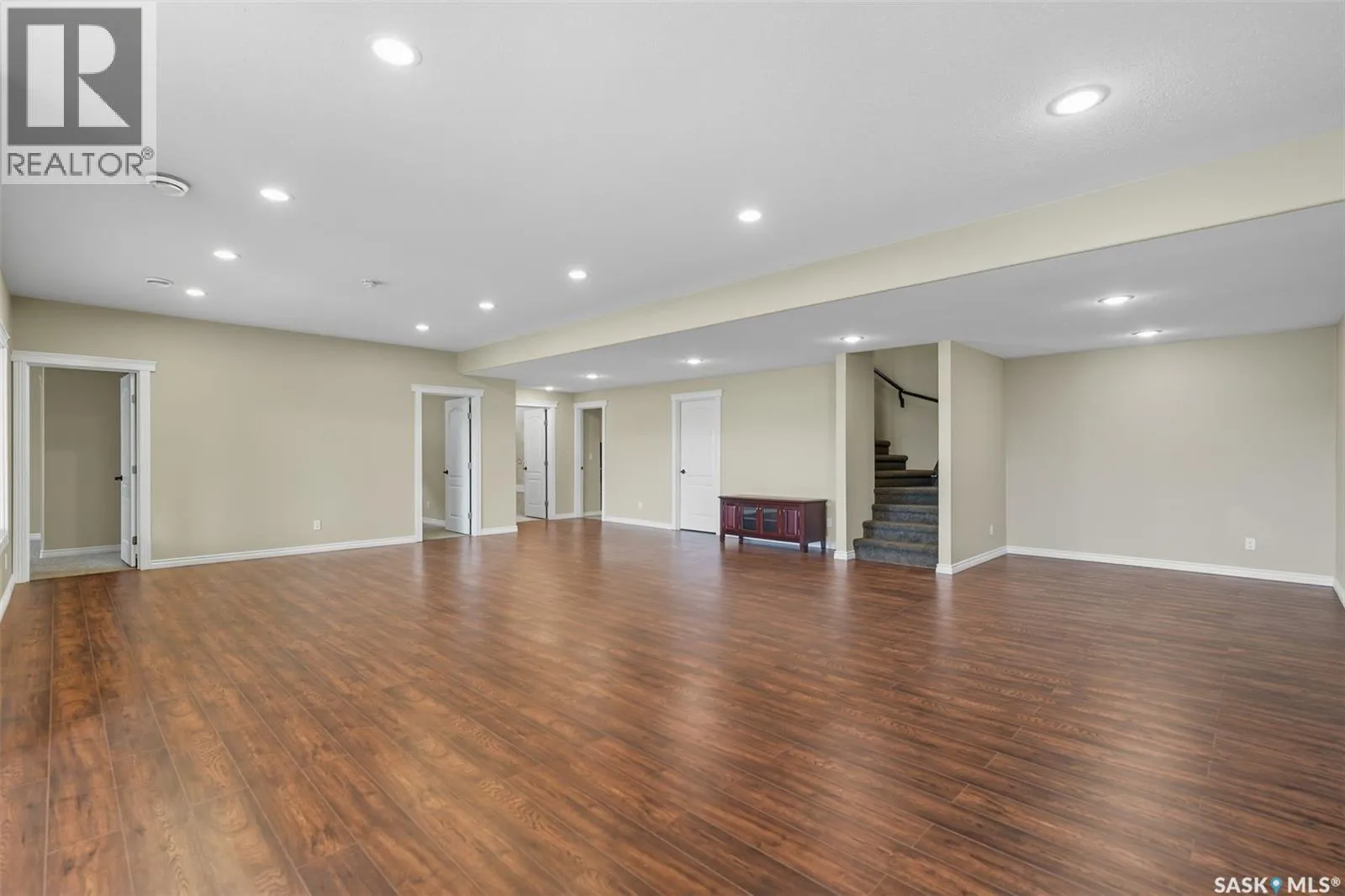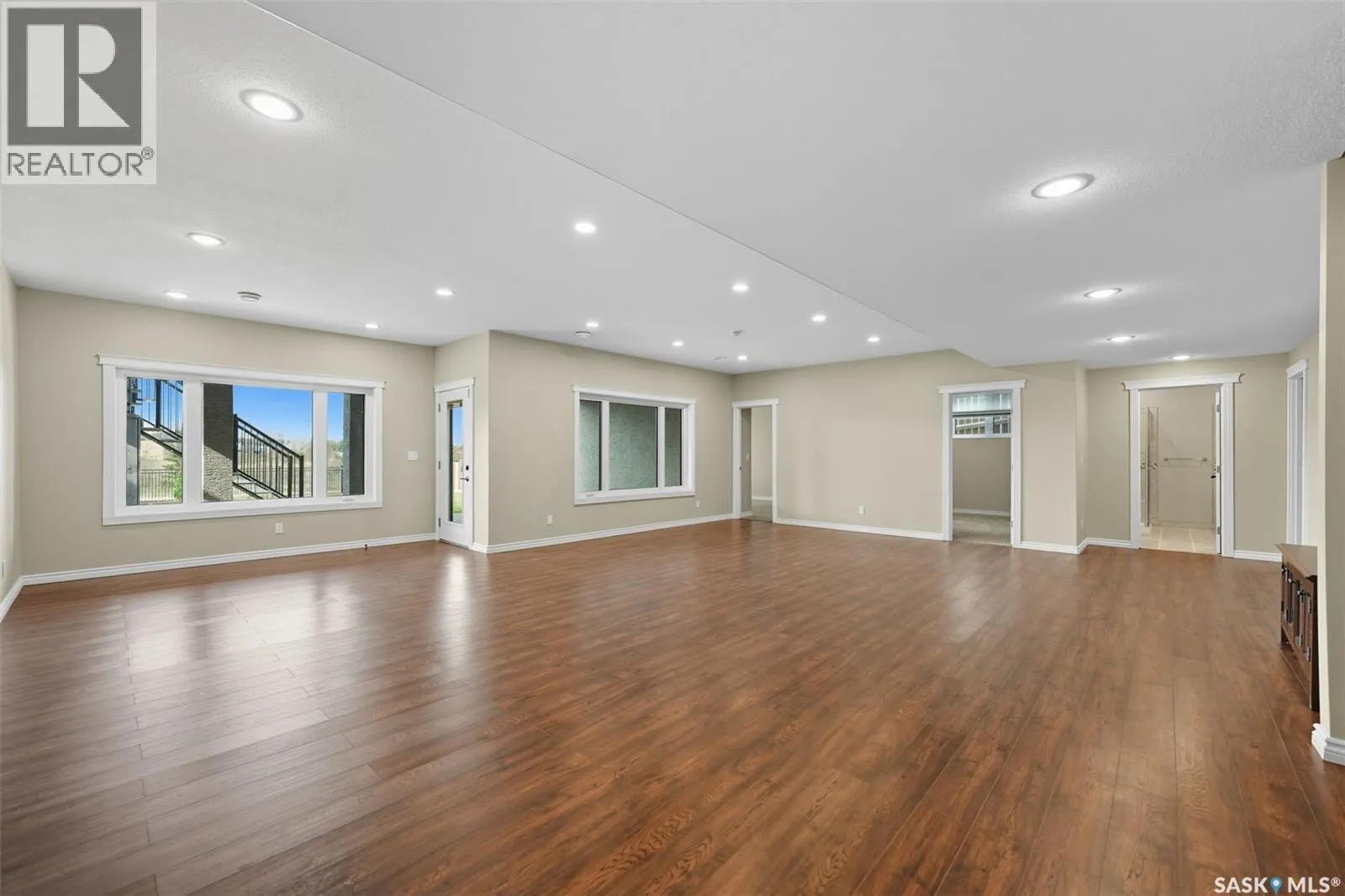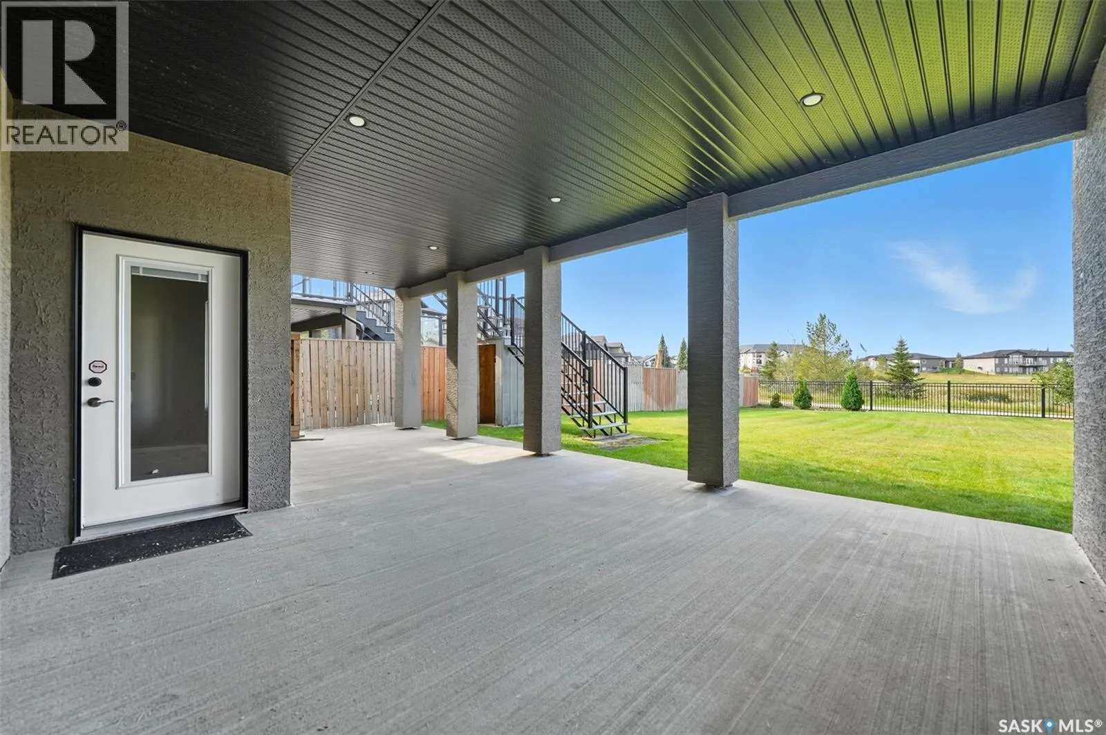 Welcome to 714 Ledingham Place, a rare find in a fantastic cul-de-sac location backing onto Hyde Park with breathtaking water views. Situated on a massive 9,559 sq. ft. lot with a sunny southwest-facing backyard, this D&Sâbuilt walkout bungalow offers over 3,600 sq. ft. of luxurious living space with top-quality finishes inside and out. The striking stone and stucco exterior, oversized driveway accommodating up to five vehicles, and impressive curb appeal set the tone. Inside, the main floor boasts soaring 12-ft ceilings, a spacious foyer with tile flooring, open-concept living with a tiled feature wall and gas fireplace, and a chefâs dream kitchen with abundant maple cabinetry, granite countertops, tiled backsplash, corner pantry, and a generous dining area overlooking the park and pond. Hardwood flooring flows throughout, complementing three large bedrooms, including a primary suite with walk-in closet and spa-like ensuite featuring dual sinks and a tiled shower. Main floor laundry adds convenience. The bright walkout basement expands the living space with a large games room, family room, office, two additional bedrooms with walk-in closets, a 5-piece bath with jetted tub, and durable laminate flooring. Outdoor living shines with a composite deck, glass railing, and stairs leading to the park-like yard with underground sprinklers on a timer. Additional upgrades include triple-pane windows, central vac, HRV, new central A/C (2025), dishwasher (2023), and fridge (2021). Close to schools, shopping, and all amenities, this home truly shows 10/10. (id:27476)