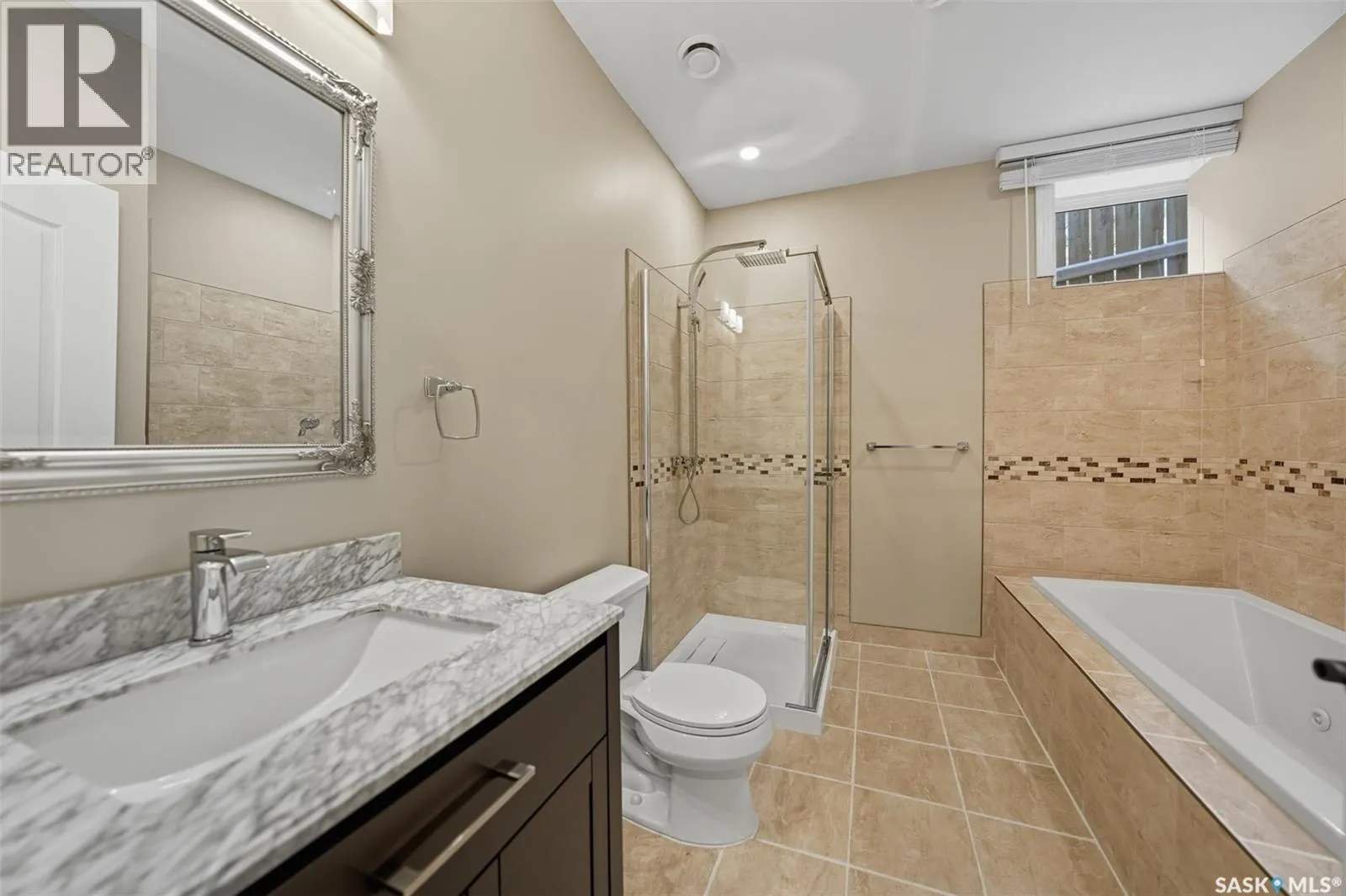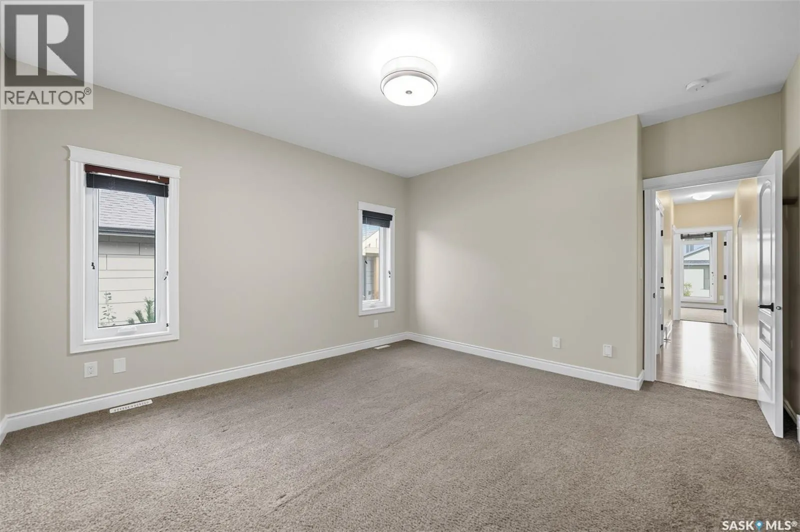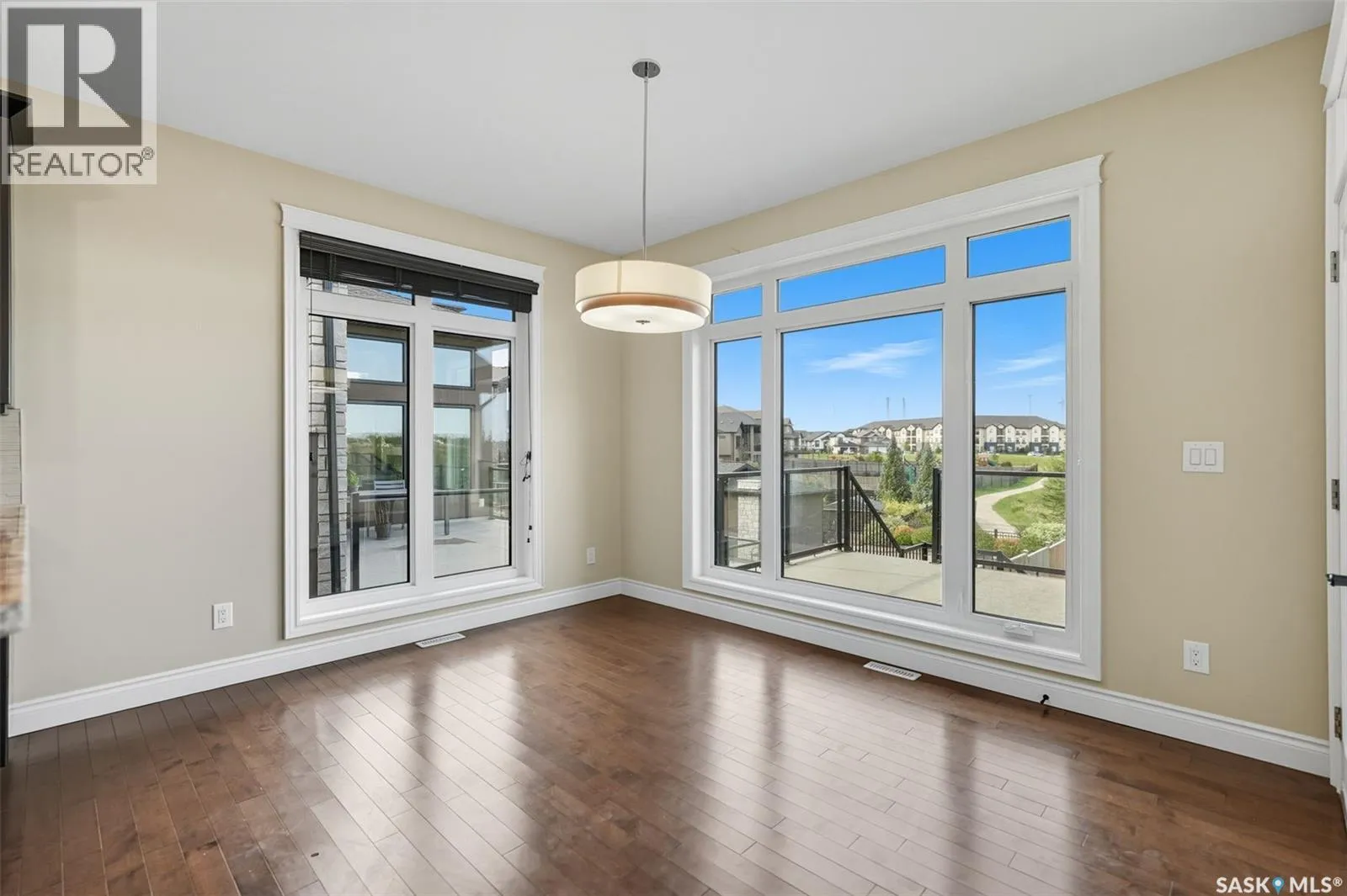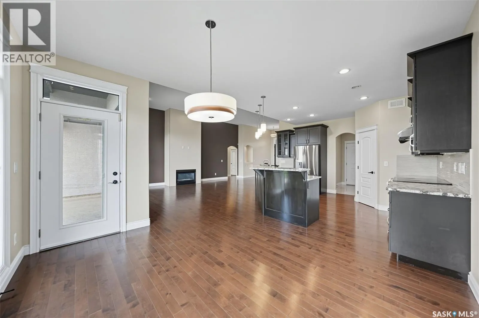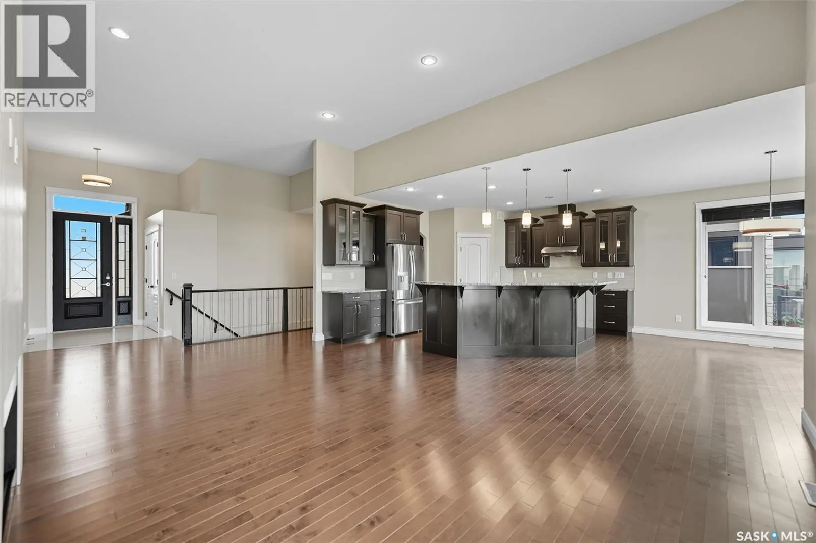 Welcome to 714 Ledingham Place, a rare find in a fantastic cul-de-sac location backing onto Hyde Park with breathtaking water views. Situated on a massive 9,559 sq. ft. lot with a sunny southwest-facing backyard, this D&Sâbuilt walkout bungalow offers over 3,600 sq. ft. of luxurious living space with top-quality finishes inside and out. The striking stone and stucco exterior, oversized driveway accommodating up to five vehicles, and impressive curb appeal set the tone. Inside, the main floor boasts soaring 12-ft ceilings, a spacious foyer with tile flooring, open-concept living with a tiled feature wall and gas fireplace, and a chefâs dream kitchen with abundant maple cabinetry, granite countertops, tiled backsplash, corner pantry, and a generous dining area overlooking the park and pond. Hardwood flooring flows throughout, complementing three large bedrooms, including a primary suite with walk-in closet and spa-like ensuite featuring dual sinks and a tiled shower. Main floor laundry adds convenience. The bright walkout basement expands the living space with a large games room, family room, office, two additional bedrooms with walk-in closets, a 5-piece bath with jetted tub, and durable laminate flooring. Outdoor living shines with a composite deck, glass railing, and stairs leading to the park-like yard with underground sprinklers on a timer. Additional upgrades include triple-pane windows, central vac, HRV, new central A/C (2025), dishwasher (2023), and fridge (2021). Close to schools, shopping, and all amenities, this home truly shows 10/10. (id:27476)