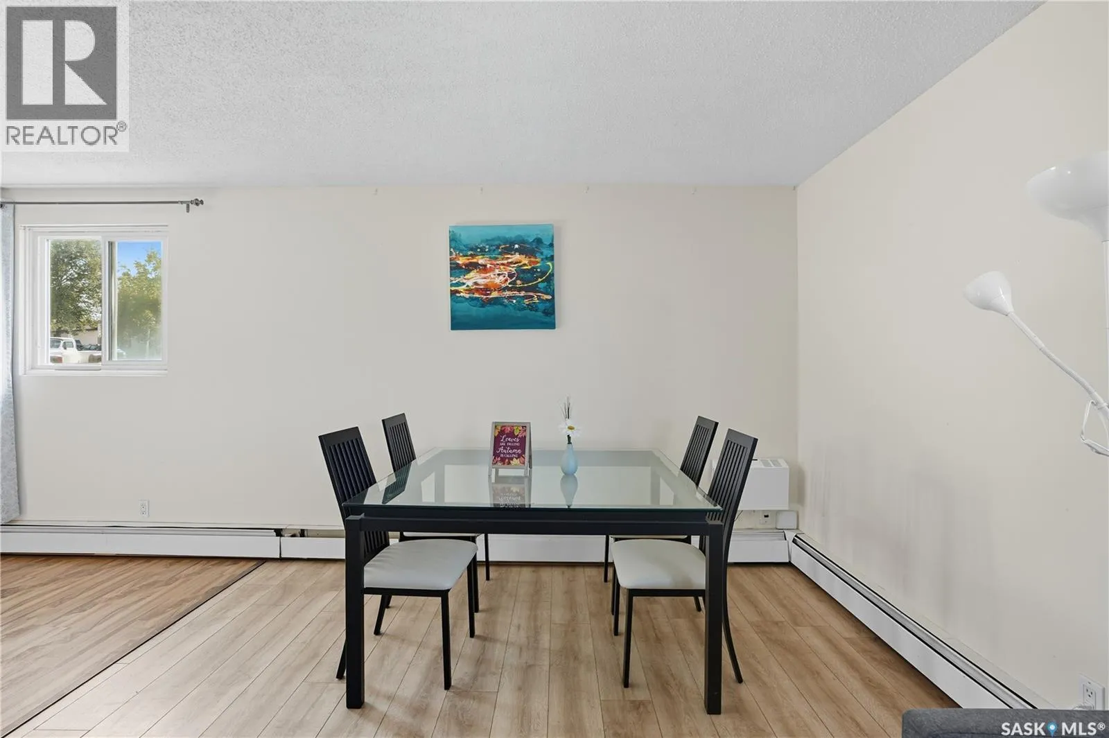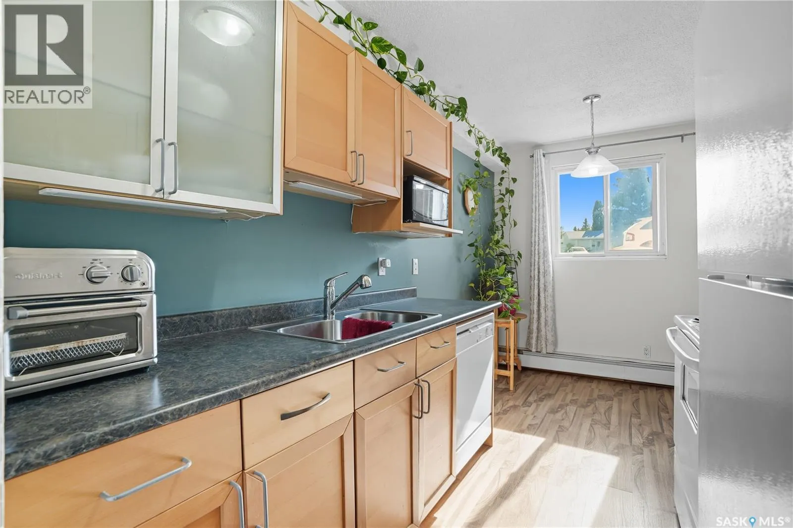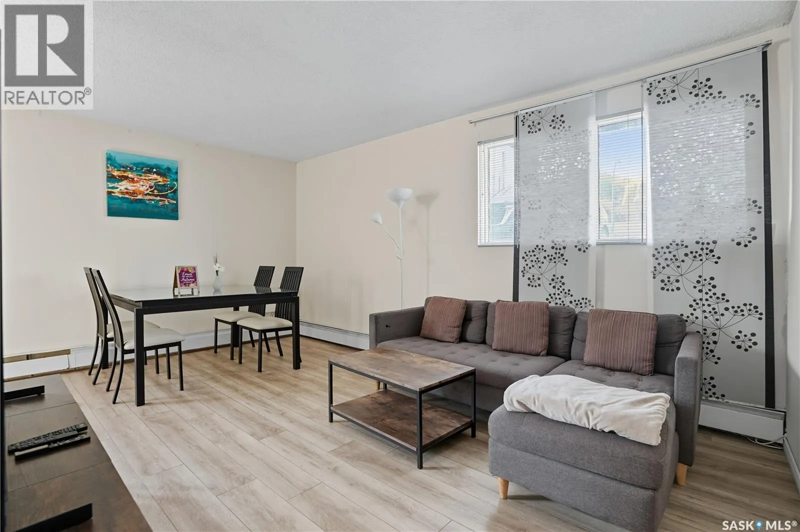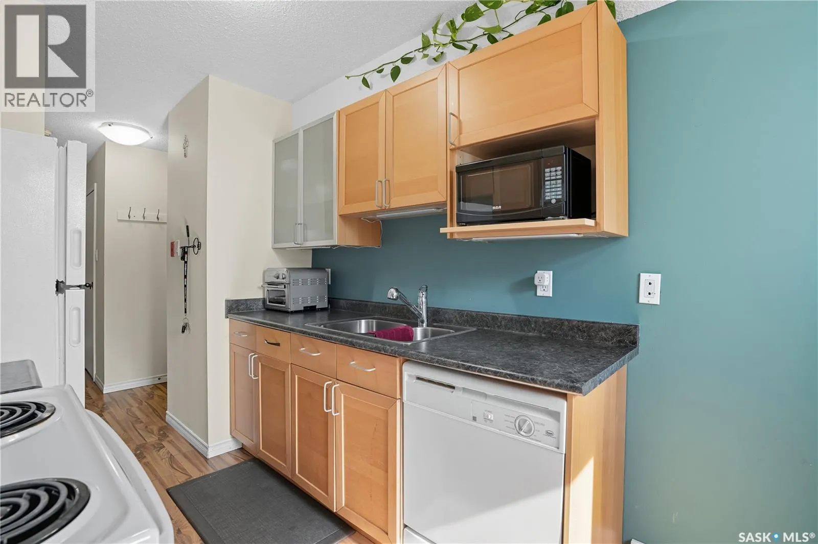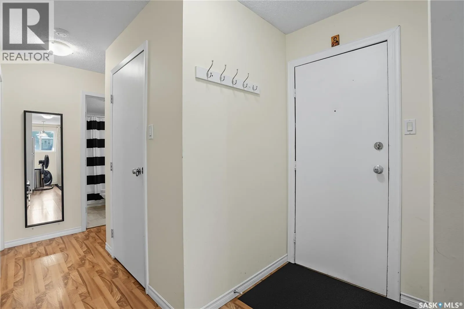 Great West College Park Condo! This bright corner unit condo features two bedrooms, a full bathroom, and an in-suite washer for your convenience, plus a common laundry room just down the hall. The upgraded kitchen and laminate flooring throughout add a modern touch. Includes an electrified parking stall and pet are allowed. Easy access to the U of S, public transit and all amenities nearbyâperfect condo for students, first-time buyers, downsizing or investors! (id:27476)