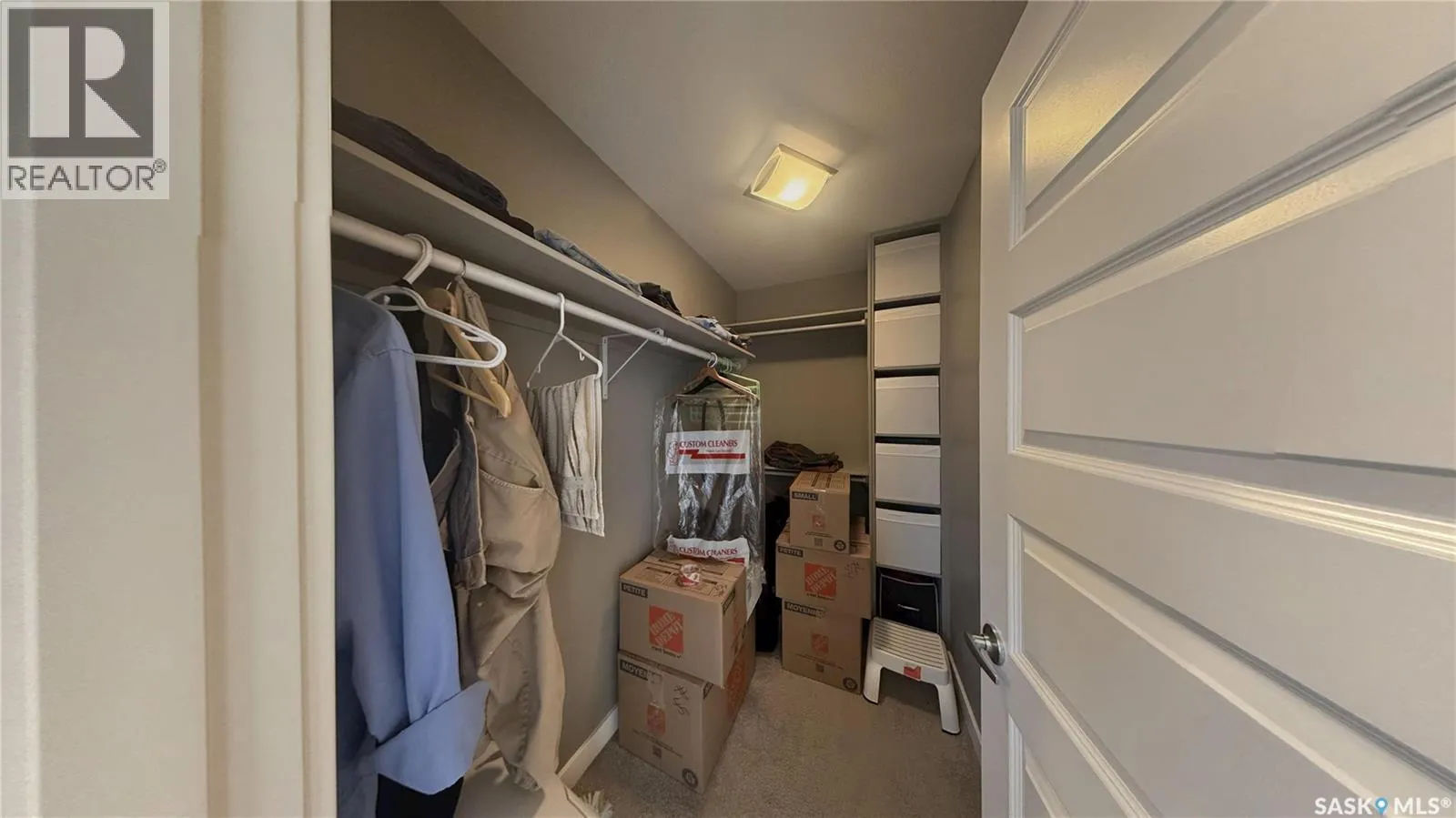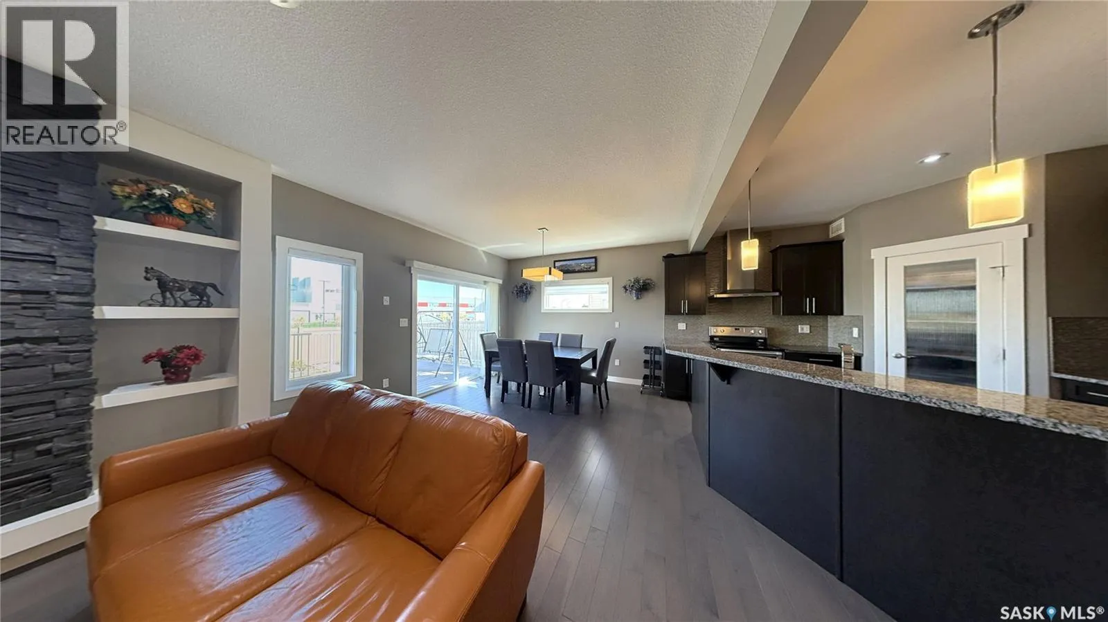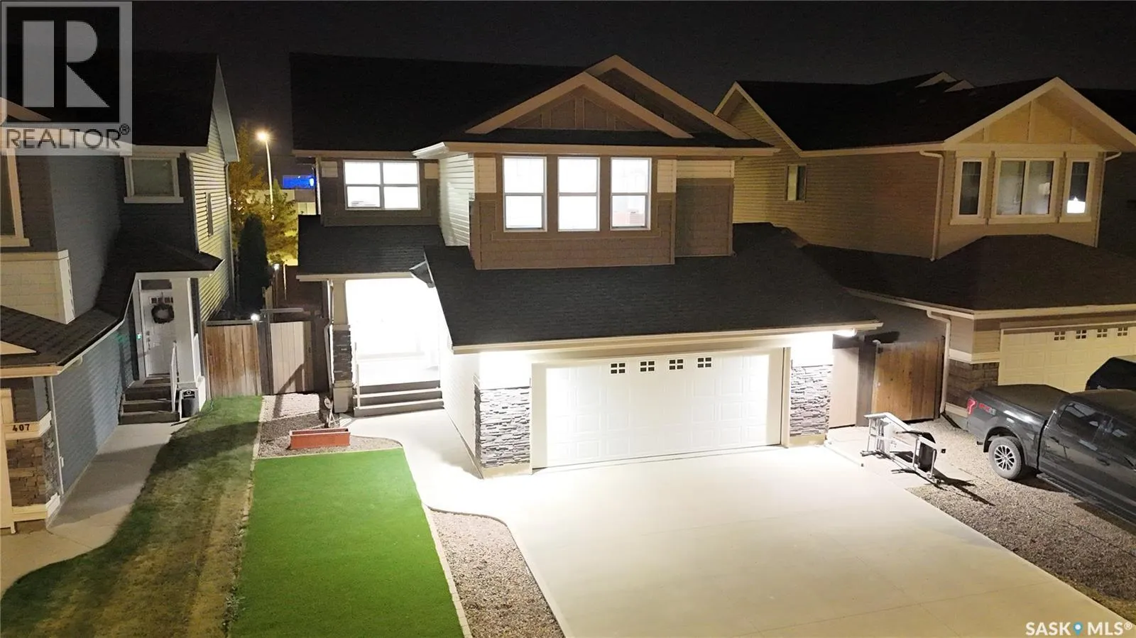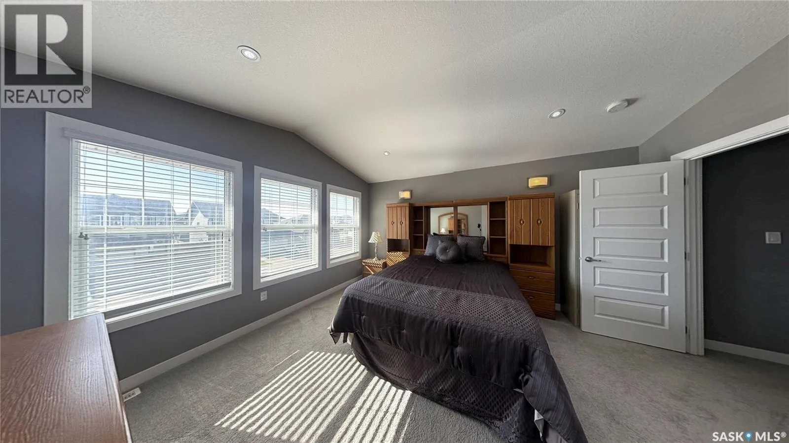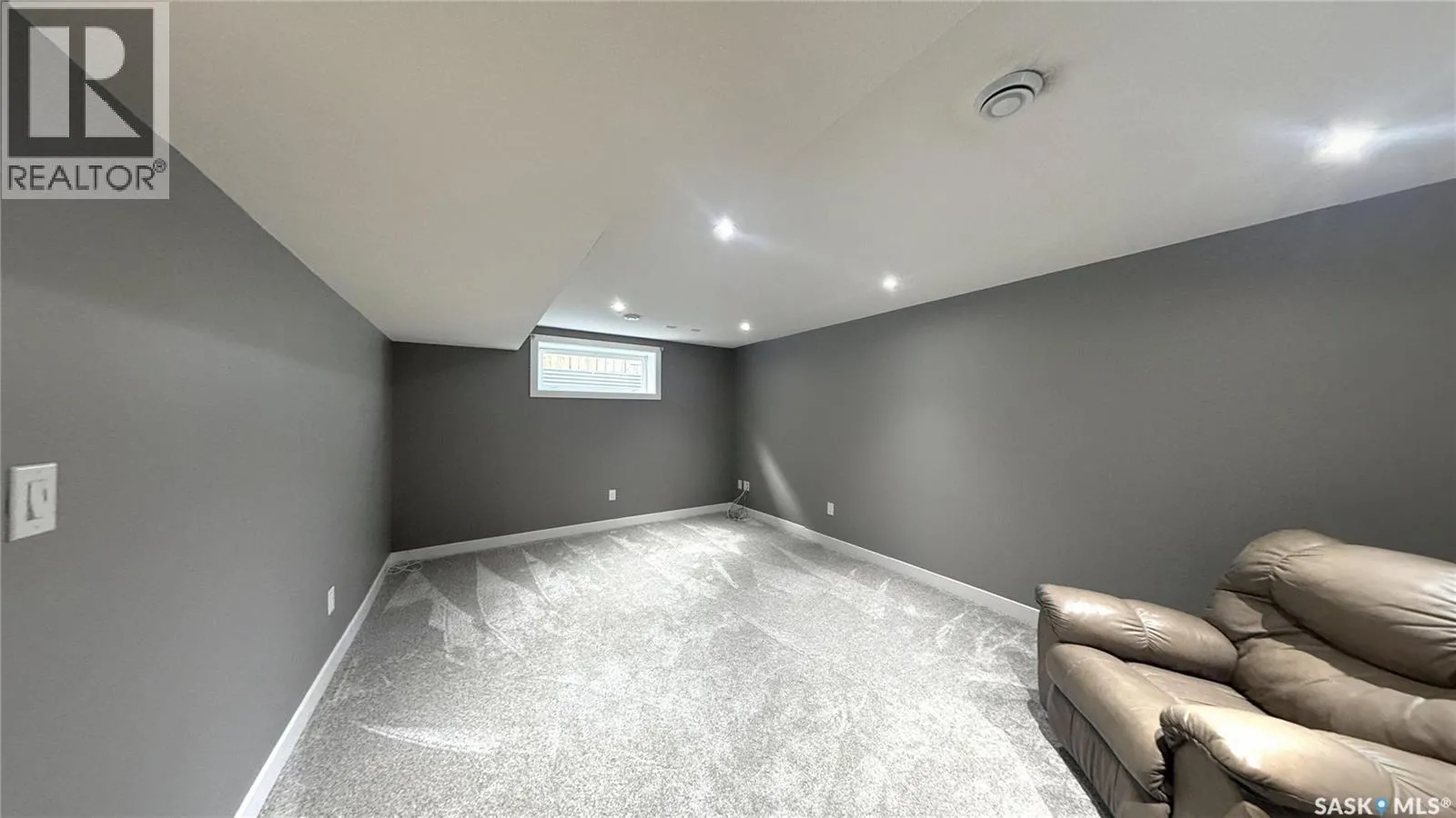 Rosewood,Saskatoon Experience elevated living in this exquisitely crafted executive CUSTOM BUILT home, offering over 2,200 sq ft of impeccably designed space in Saskatoonâs prestigious ROSEWOOD community. From the striking curb appeal with turf and a covered COMPOSITE DECK entry to the show home-level finishes throughout, every detail exudes LUXURY. The main floor features rich HARDWOOD FLOORS, 9 FEET ceilings, a private DEN, designer powder room, and stainless steel appliances equipped kitchen with GRANITE COUNTERTOPS, SOFT-CLOSE SUPERIOR CABINETRY, walk-in pantry, and a TWO-TIER ISLAND. The open-concept dining and living areas flow to a composite deck and professionally landscaped yard backing onto both Public and Catholic schools. Upstairs, retreat to a vaulted-ceiling PRIMARY BEDROOM with a 5 piece ensuite and walk-in closet. Comfort of a Laundry area with storage on 2nd floor next to Primary bedroom. Central Vac system. THREE ADDITIONAL BEDROOMS on the second level, a stylish main bath (DOUBLE VANITY), bonus room, and upper laundry. The fully developed basement includes a sound-insulated home theatre wired for projector and surround sound, a bedroom, 4 Piece bath, gym/flex space, and extensive storage The Basement has new upgraded carpet installed. With central A/C, built-in speakers, triple-pane windows, Hunter Douglas blinds, a fully finished oversized garage, and high-end upgrades throughout, this move-in-ready home is an opportunity for those who demand comfort, function, and refined designâall in one. Buyers & Buyers' Realtor® to verify all measurements (id:27476)