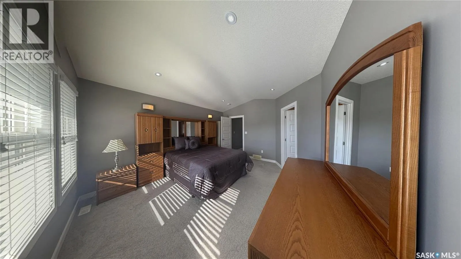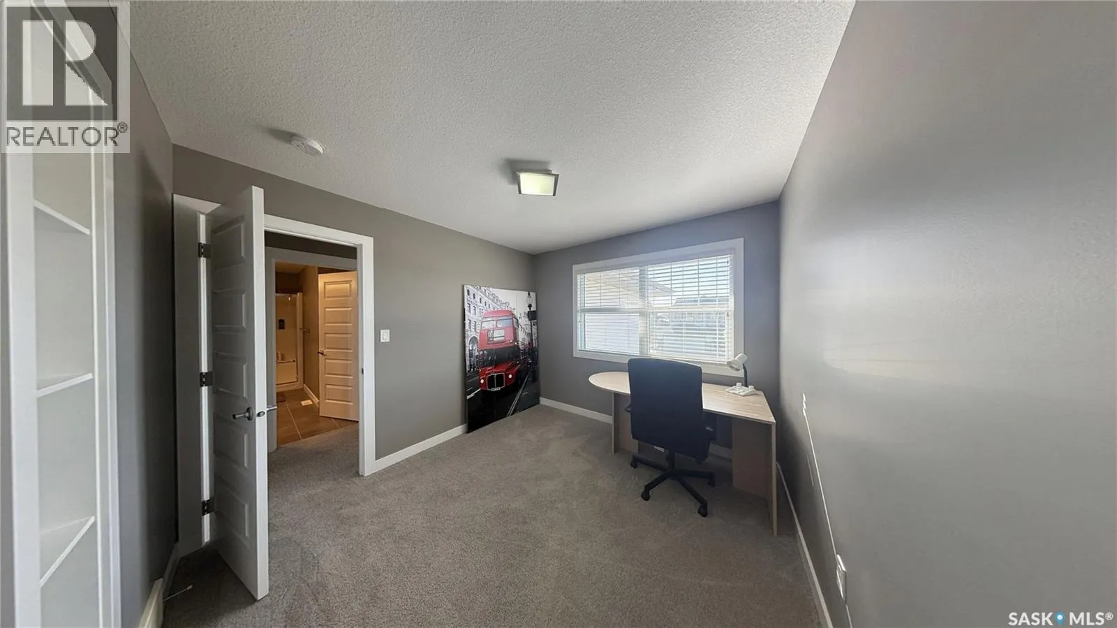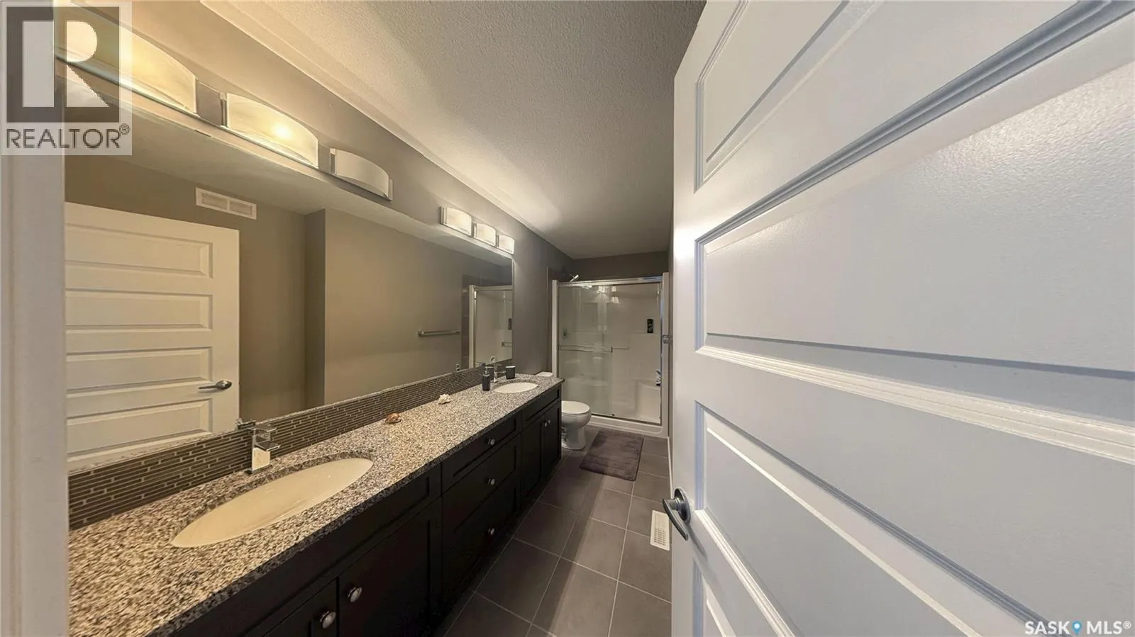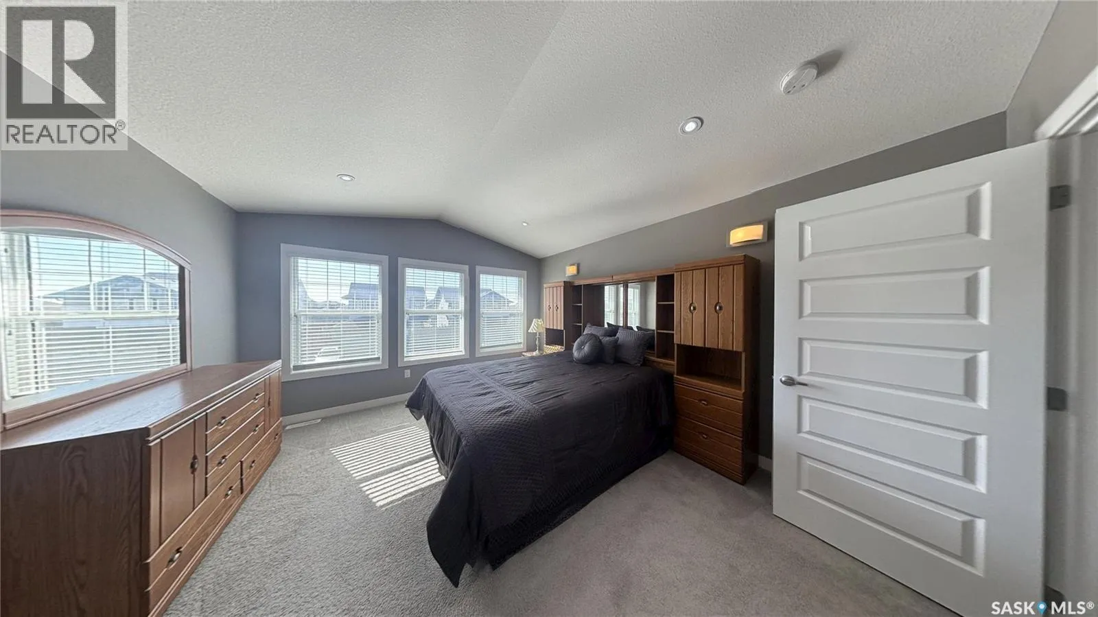 Rosewood,Saskatoon Experience elevated living in this exquisitely crafted executive CUSTOM BUILT home, offering over 2,200 sq ft of impeccably designed space in Saskatoonâs prestigious ROSEWOOD community. From the striking curb appeal with turf and a covered COMPOSITE DECK entry to the show home-level finishes throughout, every detail exudes LUXURY. The main floor features rich HARDWOOD FLOORS, 9 FEET ceilings, a private DEN, designer powder room, and stainless steel appliances equipped kitchen with GRANITE COUNTERTOPS, SOFT-CLOSE SUPERIOR CABINETRY, walk-in pantry, and a TWO-TIER ISLAND. The open-concept dining and living areas flow to a composite deck and professionally landscaped yard backing onto both Public and Catholic schools. Upstairs, retreat to a vaulted-ceiling PRIMARY BEDROOM with a 5 piece ensuite and walk-in closet. Comfort of a Laundry area with storage on 2nd floor next to Primary bedroom. Central Vac system. THREE ADDITIONAL BEDROOMS on the second level, a stylish main bath (DOUBLE VANITY), bonus room, and upper laundry. The fully developed basement includes a sound-insulated home theatre wired for projector and surround sound, a bedroom, 4 Piece bath, gym/flex space, and extensive storage The Basement has new upgraded carpet installed. With central A/C, built-in speakers, triple-pane windows, Hunter Douglas blinds, a fully finished oversized garage, and high-end upgrades throughout, this move-in-ready home is an opportunity for those who demand comfort, function, and refined designâall in one. Buyers & Buyers' Realtor® to verify all measurements (id:27476)