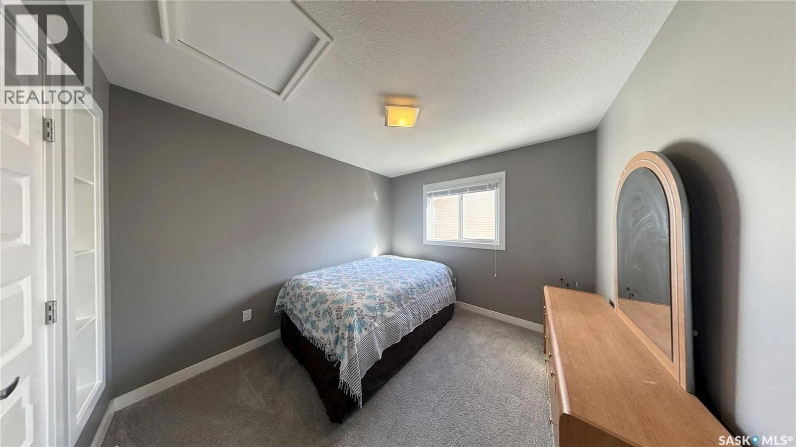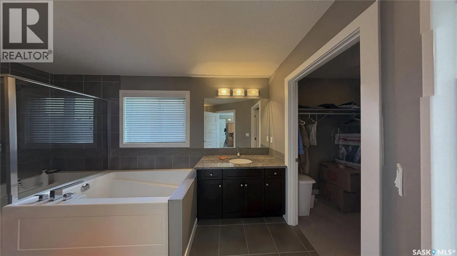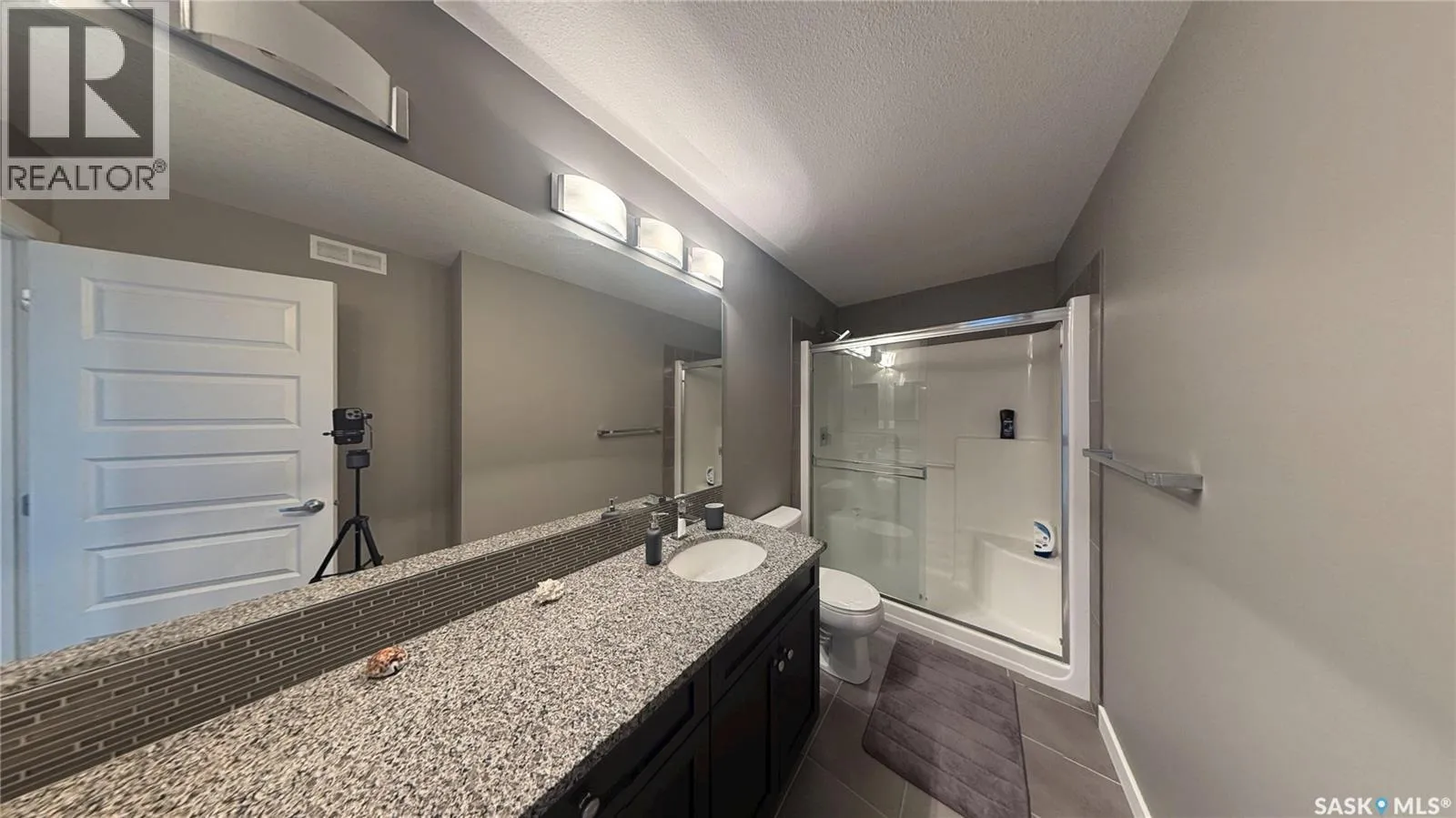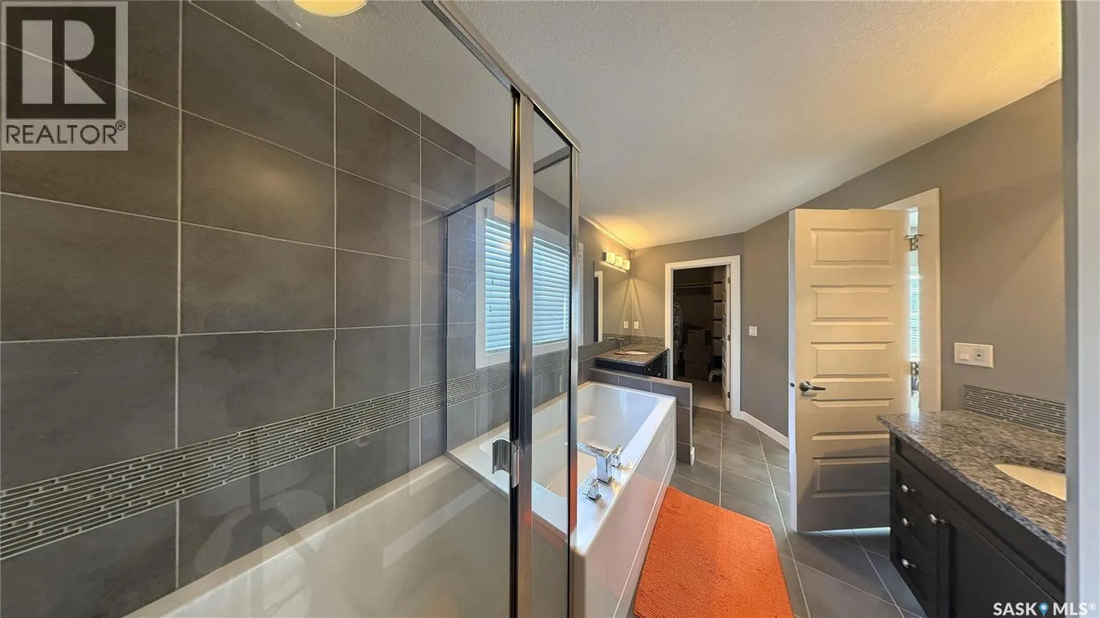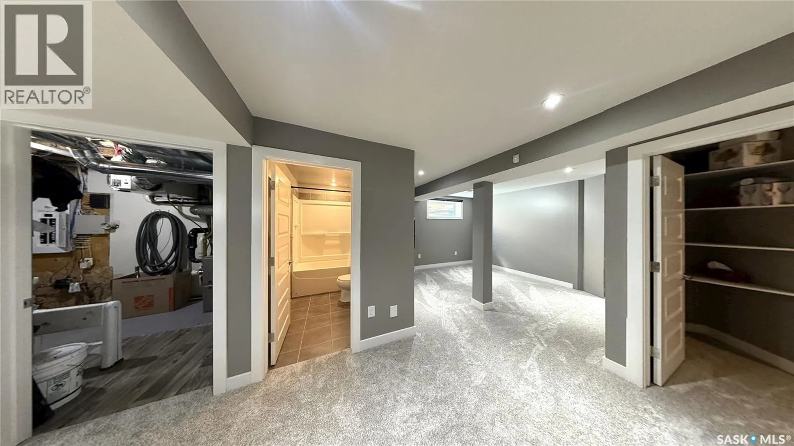 Rosewood,Saskatoon Experience elevated living in this exquisitely crafted executive CUSTOM BUILT home, offering over 2,200 sq ft of impeccably designed space in Saskatoonâs prestigious ROSEWOOD community. From the striking curb appeal with turf and a covered COMPOSITE DECK entry to the show home-level finishes throughout, every detail exudes LUXURY. The main floor features rich HARDWOOD FLOORS, 9 FEET ceilings, a private DEN, designer powder room, and stainless steel appliances equipped kitchen with GRANITE COUNTERTOPS, SOFT-CLOSE SUPERIOR CABINETRY, walk-in pantry, and a TWO-TIER ISLAND. The open-concept dining and living areas flow to a composite deck and professionally landscaped yard backing onto both Public and Catholic schools. Upstairs, retreat to a vaulted-ceiling PRIMARY BEDROOM with a 5 piece ensuite and walk-in closet. Comfort of a Laundry area with storage on 2nd floor next to Primary bedroom. Central Vac system. THREE ADDITIONAL BEDROOMS on the second level, a stylish main bath (DOUBLE VANITY), bonus room, and upper laundry. The fully developed basement includes a sound-insulated home theatre wired for projector and surround sound, a bedroom, 4 Piece bath, gym/flex space, and extensive storage The Basement has new upgraded carpet installed. With central A/C, built-in speakers, triple-pane windows, Hunter Douglas blinds, a fully finished oversized garage, and high-end upgrades throughout, this move-in-ready home is an opportunity for those who demand comfort, function, and refined designâall in one. Buyers & Buyers' Realtor® to verify all measurements (id:27476)