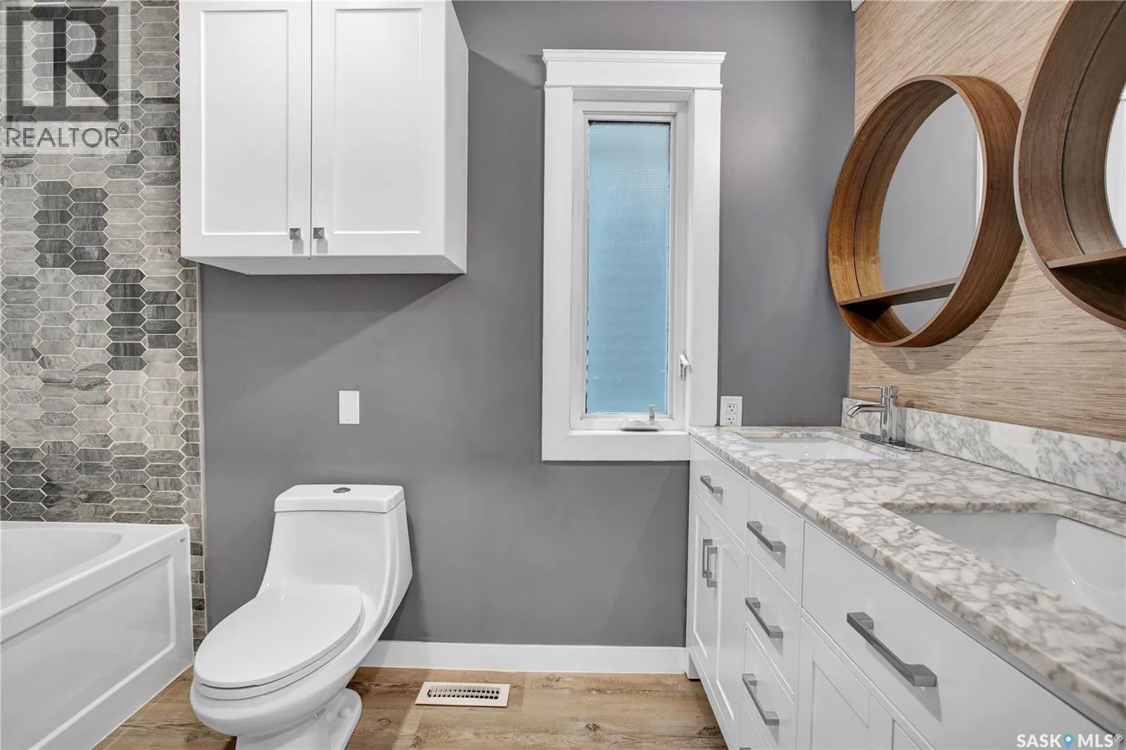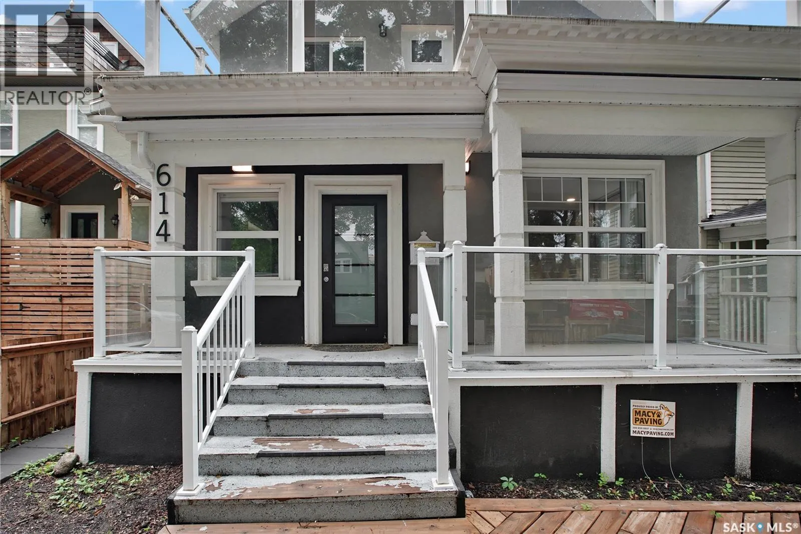 Welcome to 614 McPherson Ave â just steps from scenic river trails and parks. This beautifully renovated home (2022-2023) with great victorian street appeal is loaded with windows has been completely redone with new, stucco, shingles, windows, and upper-level balconies on the exterior. Inside you'll find a spacious kitchen, large living room and huge primary suite with 5 piece ensuite and two separate closets. Vinyl plank flooring throughout. Upstairs offers two more bedrooms (no closets), each with access to either a front or rear balcony, a 4 piece bathroom, and wet bar area, along with additional laundry hook ups. There's also a charming sunroom at the back of the house, perfect for relaxing. The basement offers great potential for rental income with its separate entrance, two bedrooms, a second kitchen, and its own laundry setup. Home comes complete with a double detached garage! (id:27476)