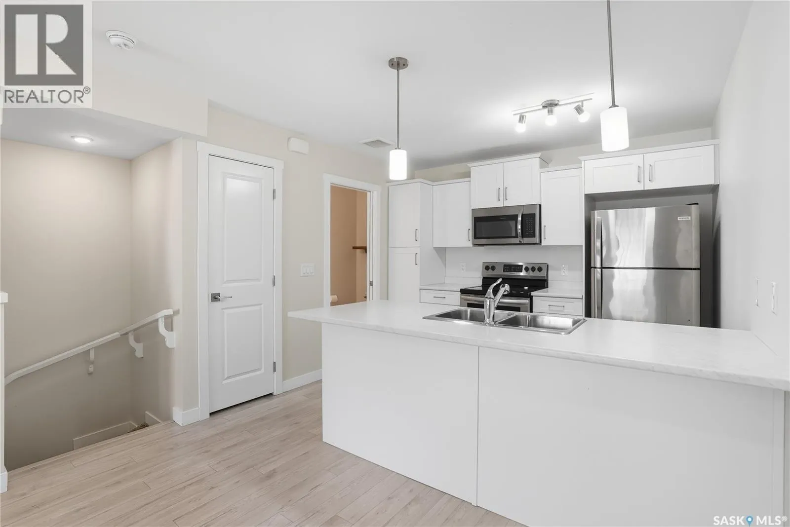 Welcome Home to The Oaks. This modern townhome is big on style, smart on value, and offers all the convenience and comforts you desire, all situated in a well managed development in a great Stonebridge location. This 1 Bed + Den, 2 Bath townhouse is spacious and bright with a functional and open layout for living large in a right sized floorplan. Main floor features include a well appointed kitchen that is modern yet timeless with ample cabinet and counter space, large peninsula island, and stainless steel appliances; great entertaining space that is open to dining area and living room with large windows and balcony access; plus a 2-pc powder room. Upstairs you'll find the primary bedroom with walk-in closet; dedicated laundry space; versatile den with walk-in closet makes for a great home office or guest space; plus the 4-pc main bath. Comfort features include a spacious and fully insulated attached garage with direct entry; ample storage space; central-air-conditioning for keeping cool; plus a covered balcony for outdoor enjoyment, ideal for morning coffee and evening relaxation. A fantastic Stonebridge location offers easy access in and out, just steps to numerous parks, top rated Public and Catholic Schools, and full range of amenities including gym, groceries, restaurants, medical, fuel, and more. Comfort. Convenience. Aesthetics. Smart value. This is the townhouse and lifestyle opportunity you've been looking for - book your private showing today. (id:27476)