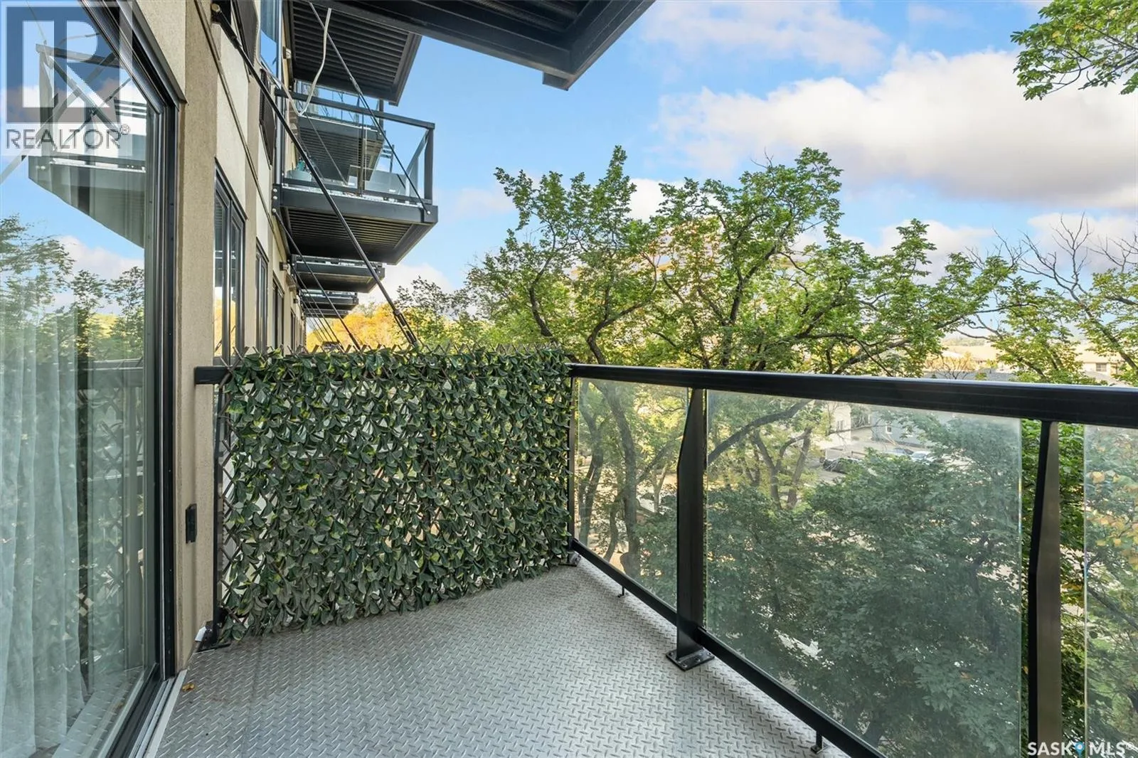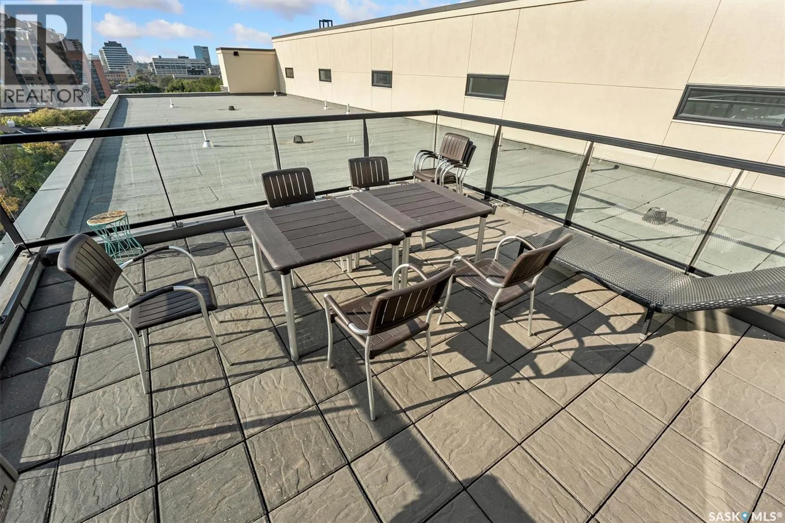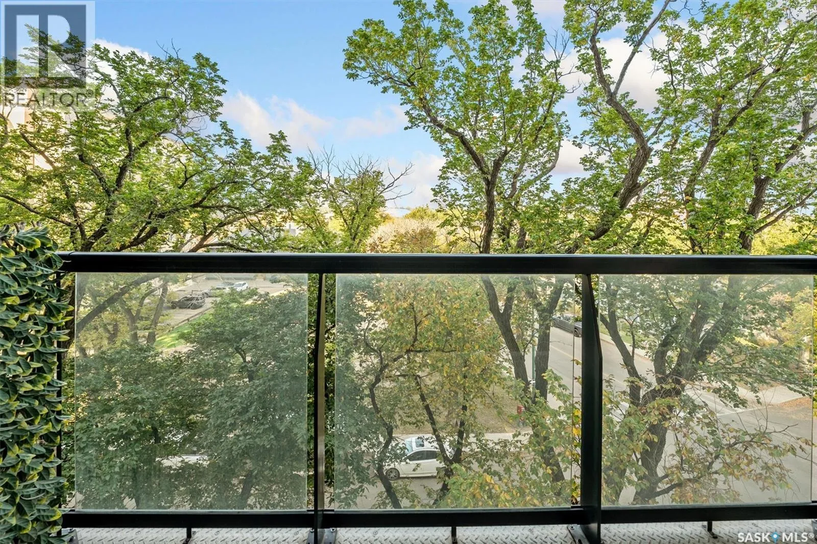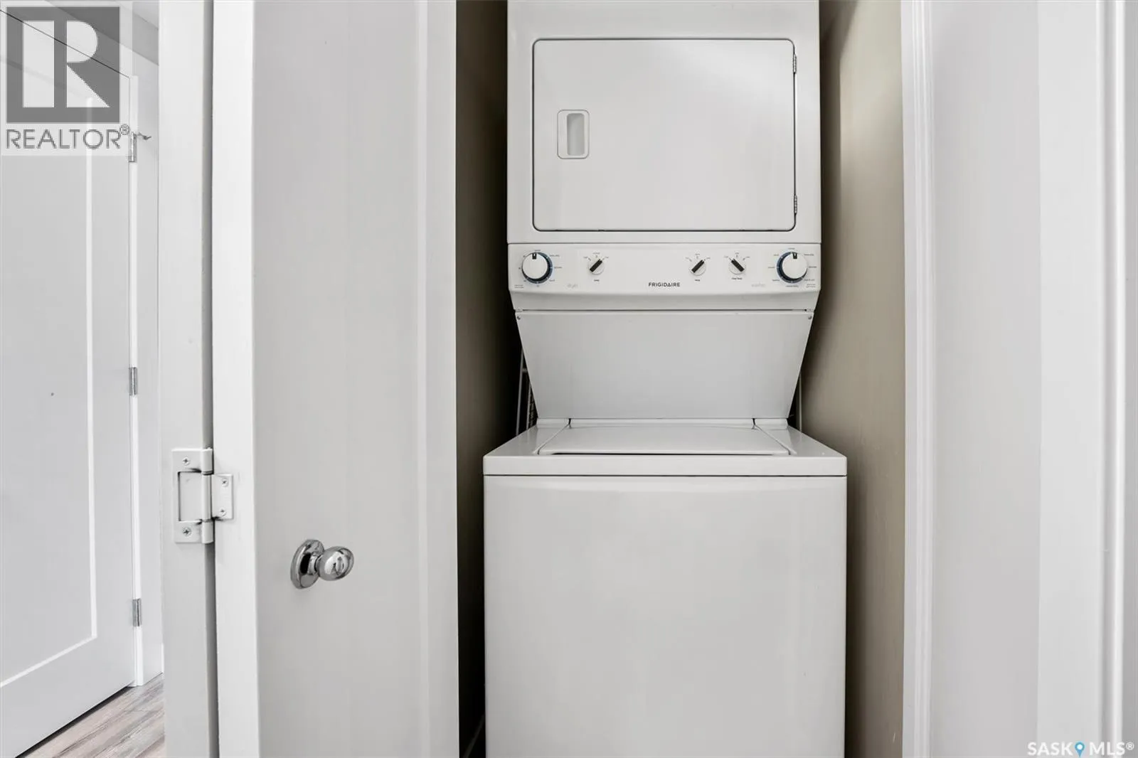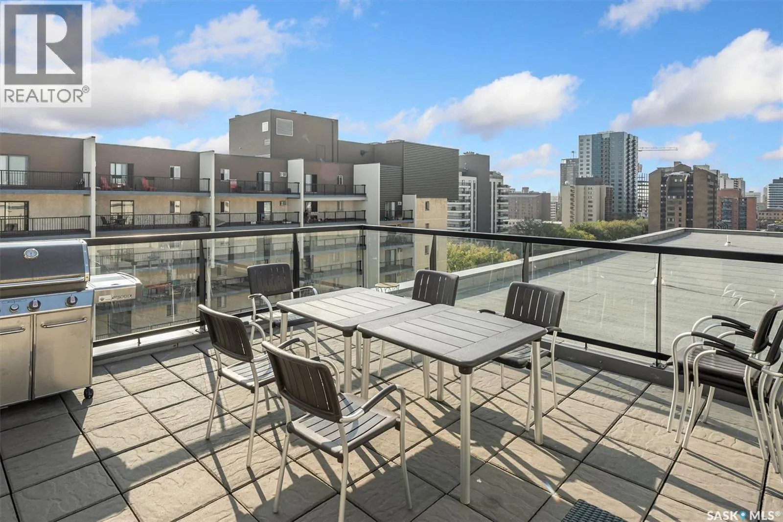 Welcome to The Shangri-La on 4th Ave. This stylish 1 bedroom, 1 bathroom condo is perfectly situated in the heart of Saskatoon. The bright impeccably maintained unit features a functional open concept layout. Enjoy the convenience of a built-in computer workspace, modern kitchen, quartz countertops and tile back splash - ideal for both everyday living and entertaining. You are close to City Hospital, University of Saskatchewan, Royal University Hospital, downtown shops, restaurants and city transit. What a great location offering the best of urban living with easy access to nature. Set in a soundly constructed concrete building, residents can enjoy premium amenities including a rooftop patio with BBQ area, an amenities room with fitness equipment, and the added convenience of one underground parking stall. Donât miss this incredible opportunity to own in one of Saskatoonâs most sought after locations. Book your showing today with your favorite Realtor! (id:27476)