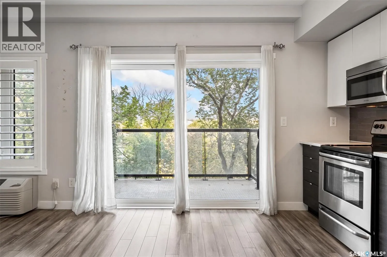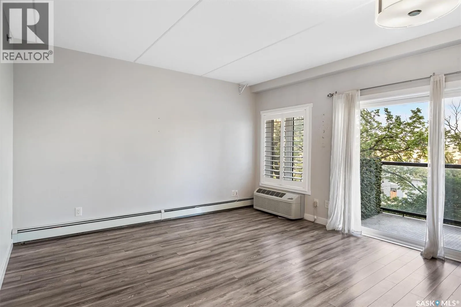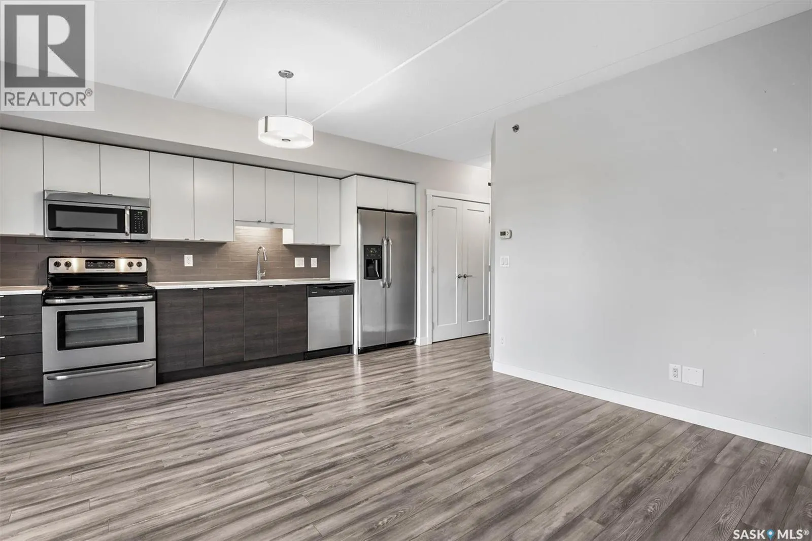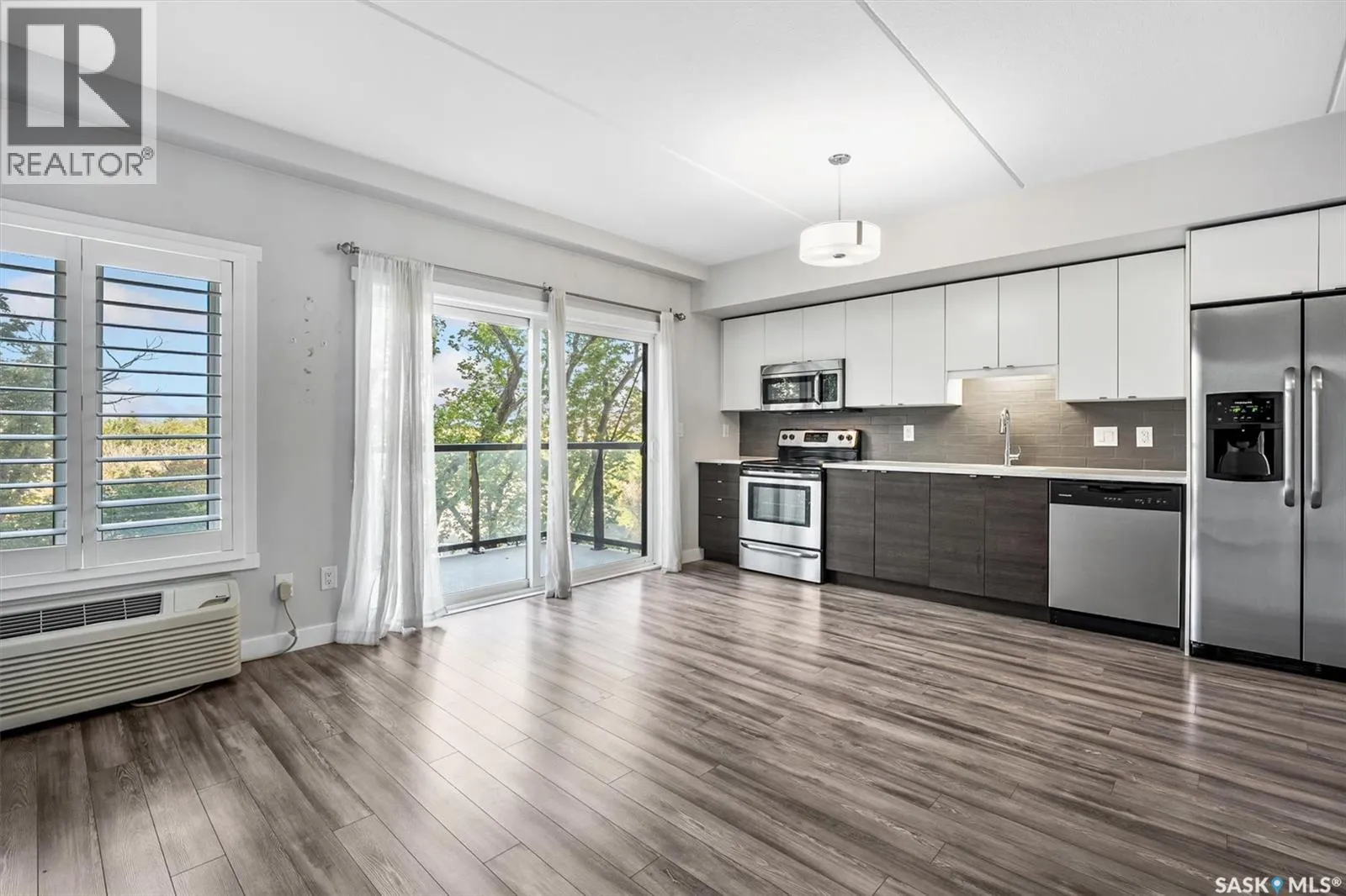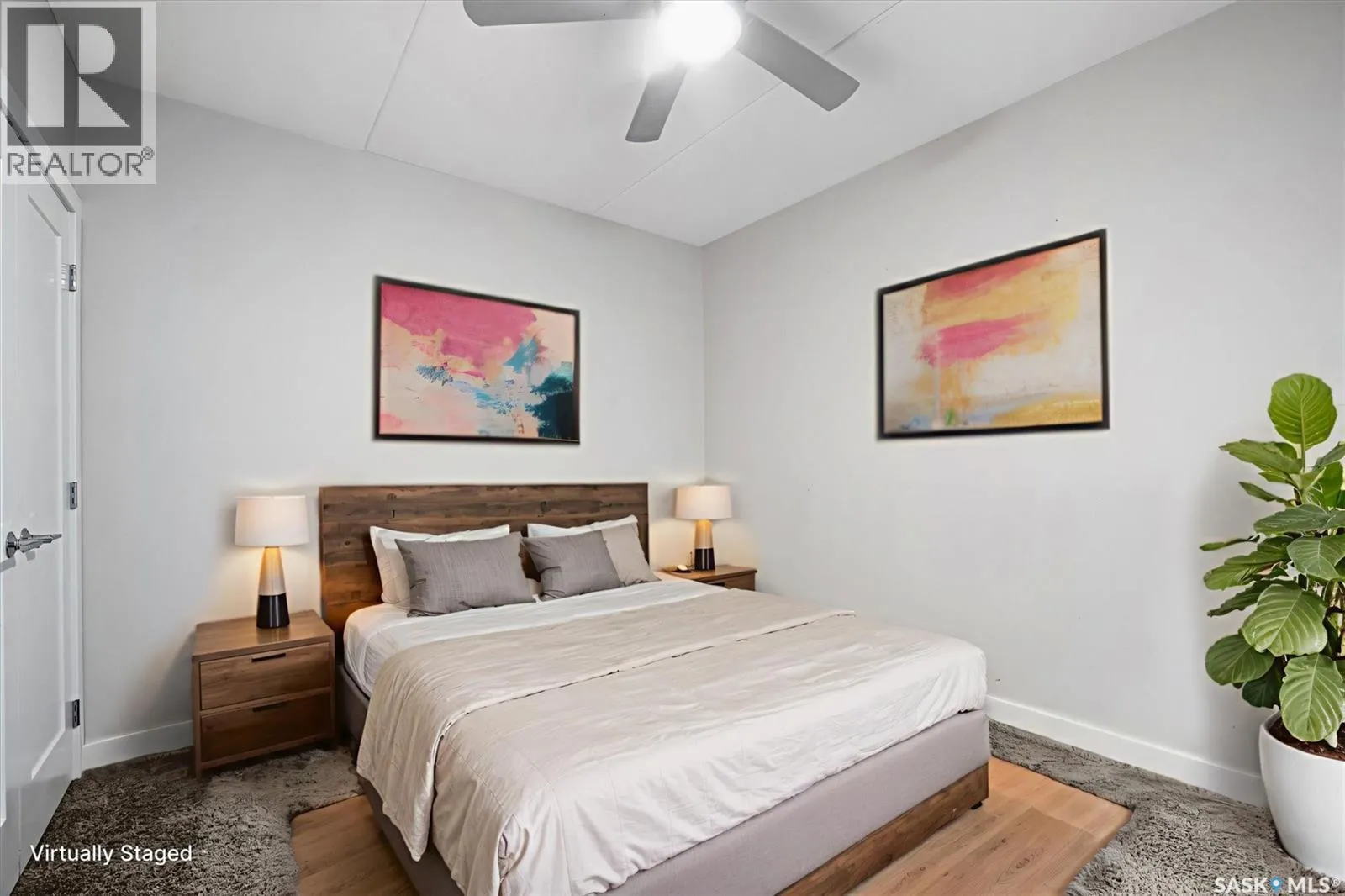 Welcome to The Shangri-La on 4th Ave. This stylish 1 bedroom, 1 bathroom condo is perfectly situated in the heart of Saskatoon. The bright impeccably maintained unit features a functional open concept layout. Enjoy the convenience of a built-in computer workspace, modern kitchen, quartz countertops and tile back splash - ideal for both everyday living and entertaining. You are close to City Hospital, University of Saskatchewan, Royal University Hospital, downtown shops, restaurants and city transit. What a great location offering the best of urban living with easy access to nature. Set in a soundly constructed concrete building, residents can enjoy premium amenities including a rooftop patio with BBQ area, an amenities room with fitness equipment, and the added convenience of one underground parking stall. Donât miss this incredible opportunity to own in one of Saskatoonâs most sought after locations. Book your showing today with your favorite Realtor! (id:27476)