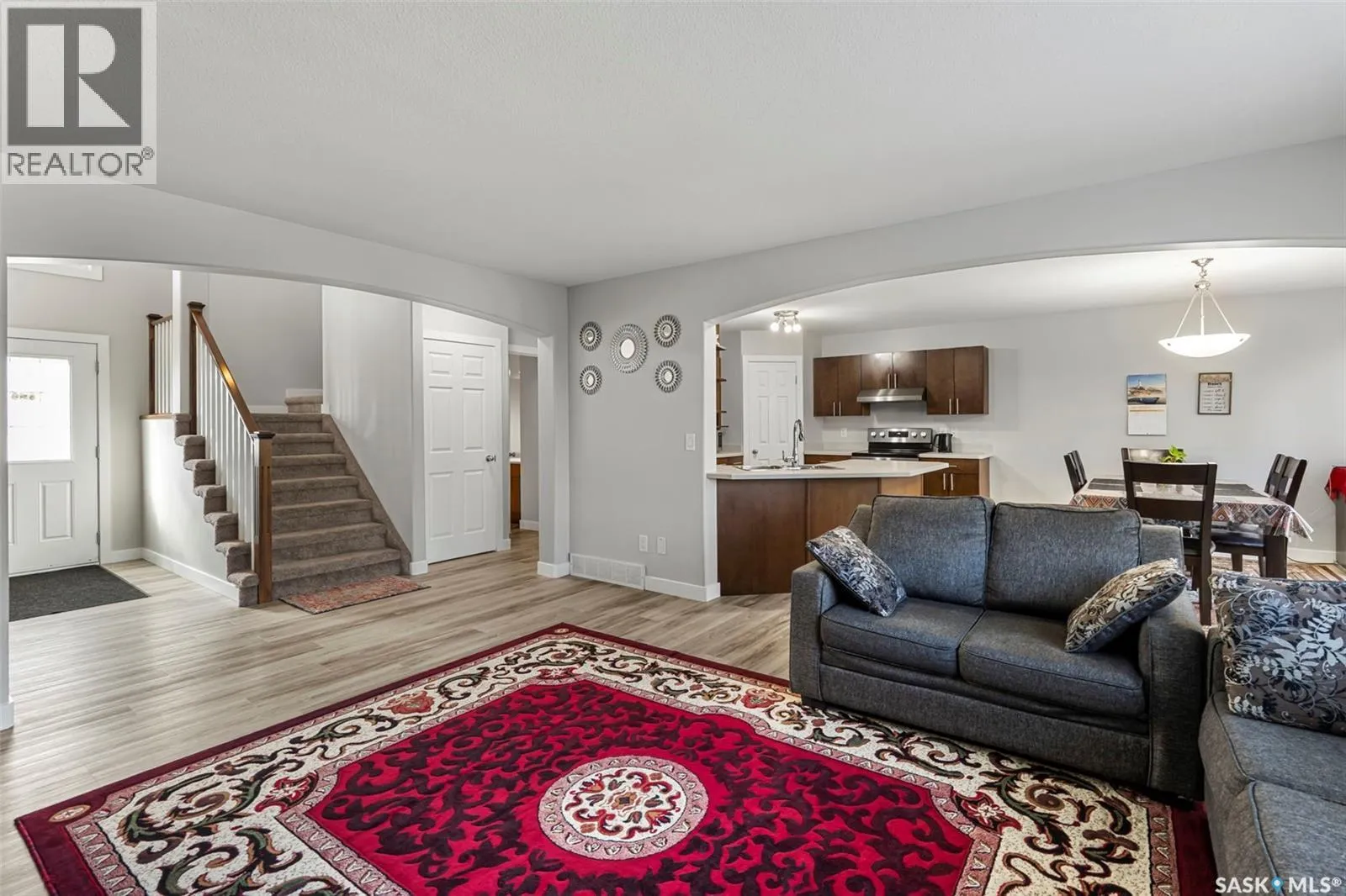 Welcome to 127 Dulmage Crescent. This fully developed 1748 square foot 2 storey is located in the sought after Stonebridge neighborhood. The main floor features new (2025) vinyl plank flooring throughout. You'll be impressed with the spacious front entrance (huge closet) featuring the vaulted ceiling and inviting open stair case to the 2nd level. The bright and inviting open concept (L shaped) living room, dining room, and kitchen has been well thought out and designed. Completing the main floor is the 2 piece bathroom, laundry, and direct entry to the double attached heated garage. The 2nd level hosts the large primary bedroom with walk in closet and 3 piece ensuite, 2 additional good sized bedrooms, and the 4 piece bathroom. The basement is home to the Family room, a huge bedroom (perfect for that teenager or post secondary student), another 4 piece bathroom, and the large utility/storage room, with high efficient furnace, and the new in 2024 power vented water heater. Enjoy the deck and fully fenced back yard from the dining room, perfect for that morning coffee and evening relaxation. Underground sprinklers front and back. Appliances included (stove and dishwasher new in 2025). Heated 22' x 22' double attached garage. Central Air Conditioning. Great location, close to the numerous amenities Stonebridge offers (shopping, restaurants, parks, schools, walking trails). (id:27476)