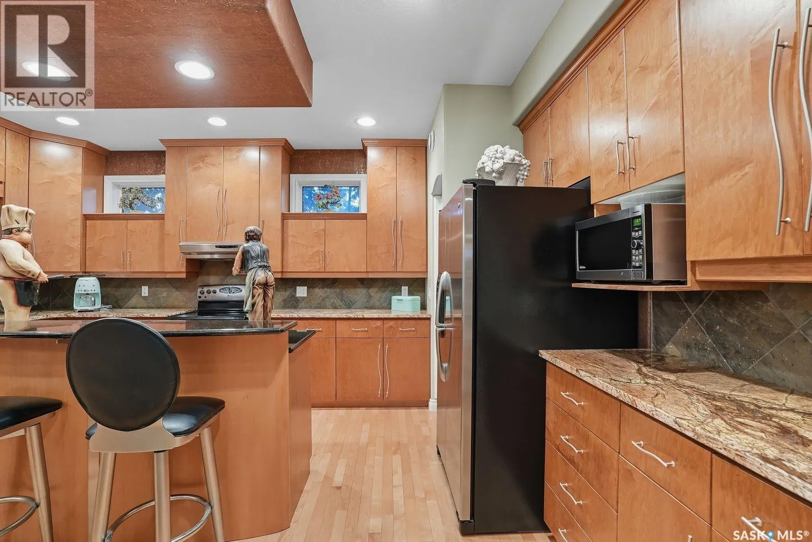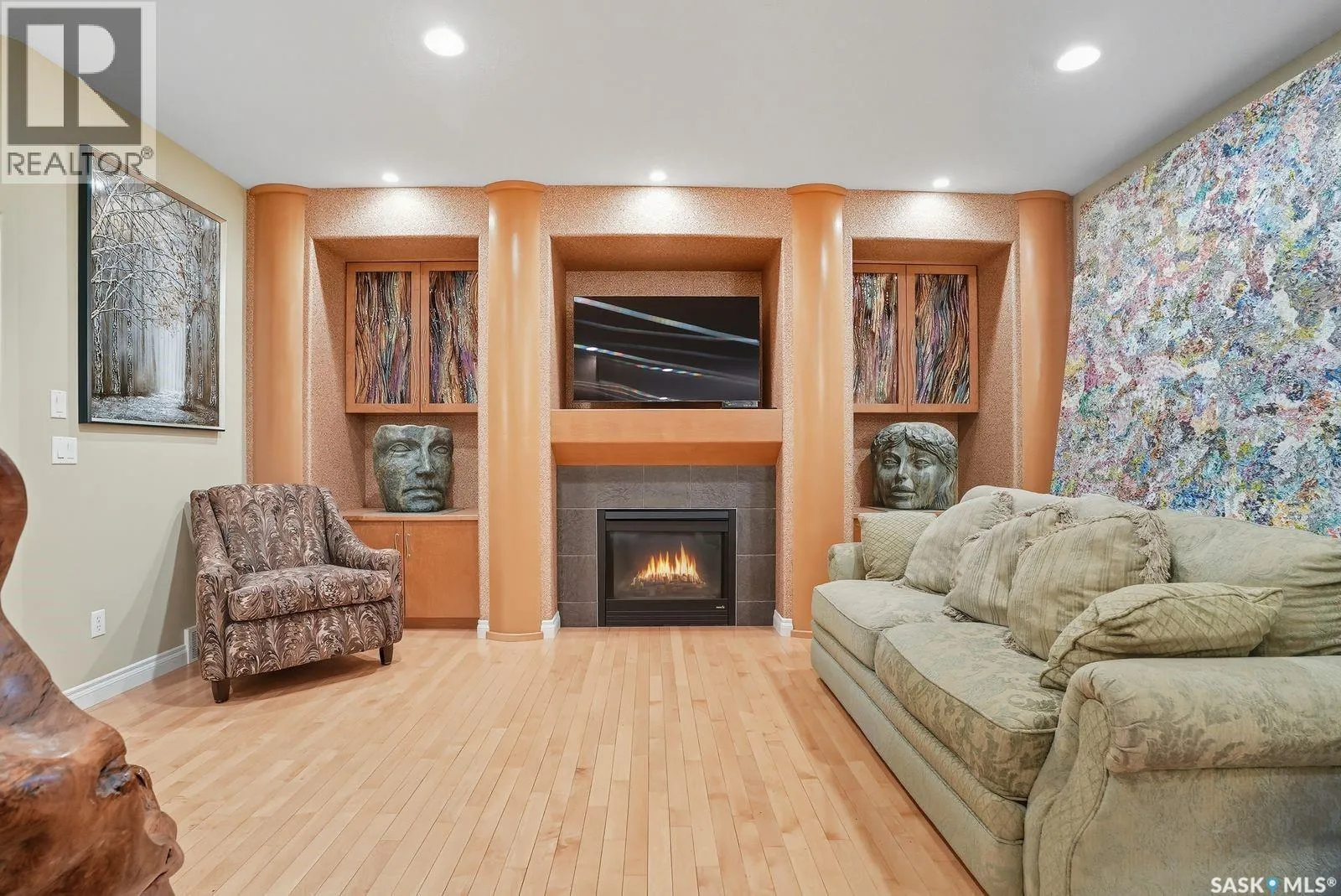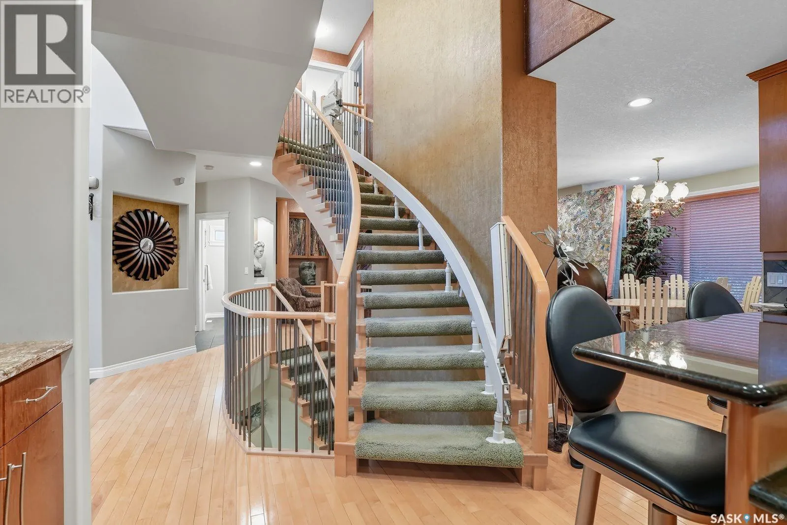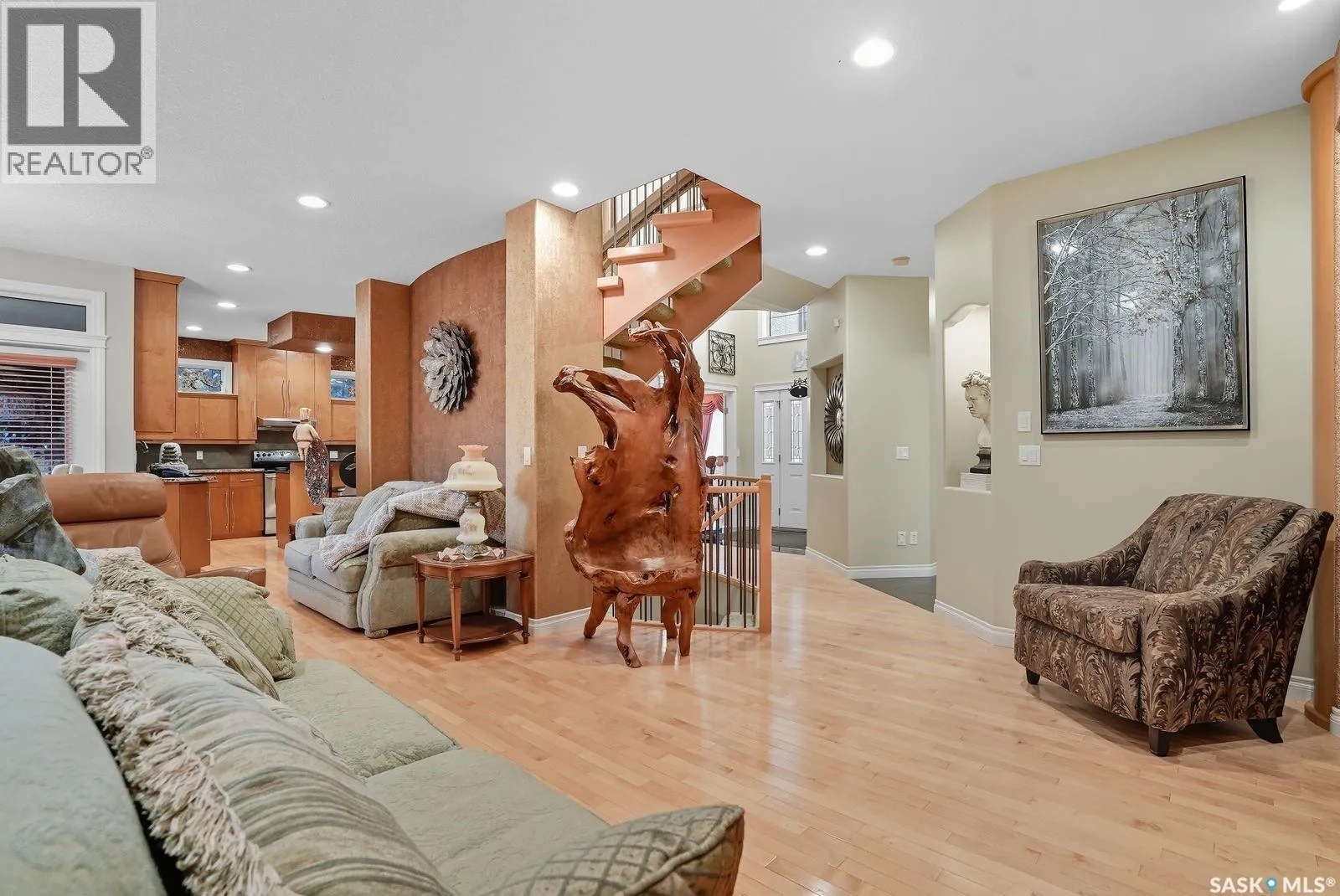 Welcome to this immaculate two-story home in the distinguished community of Briarwood! This well maintained 2452 sq ft, corner l 2 Story greets you with beautiful, mature landscaping for stunning curb appeal! Stepping in through your foyer, you are met with warm hardwood flooring throughout the main level. Abundance of natural light. Formal dining comes first with a large front facing window, The kitchen is a showpiece, featuring carefully selected stainless steel appliances, quartz countertops, designer lighting, a corner walkthrough pantry to your dining room. Beautiful open staircase that is open to all three levels. Custom architectural glass throughout the home. Convenience of main floor laundry and 2pc bath that continues to the garage. Upstairs the primary bedroom offers a walk-in closet and a 5 piece ensuite to relax and rejuvenate, featuring oversized vanities with his and hers sinks and a jetted tub. Follow the modern spindle banister down to your fully finished basement, with 2 family rooms, one of them comes with a gas fireplace for those cozy evenings. A fourth bedroom, 3-pc bath and a large storage / utility room completes your basement! Private 3 seasoned sunroom opens to lush back yard. Additional features of this home include a double attached garage, A/C, underground sprinkler, central vac, and plenty of storage space throughout. Must see home, in desirable neighborhood located close to many amenities, parks, and quick access to Circle Drive. (id:27476)