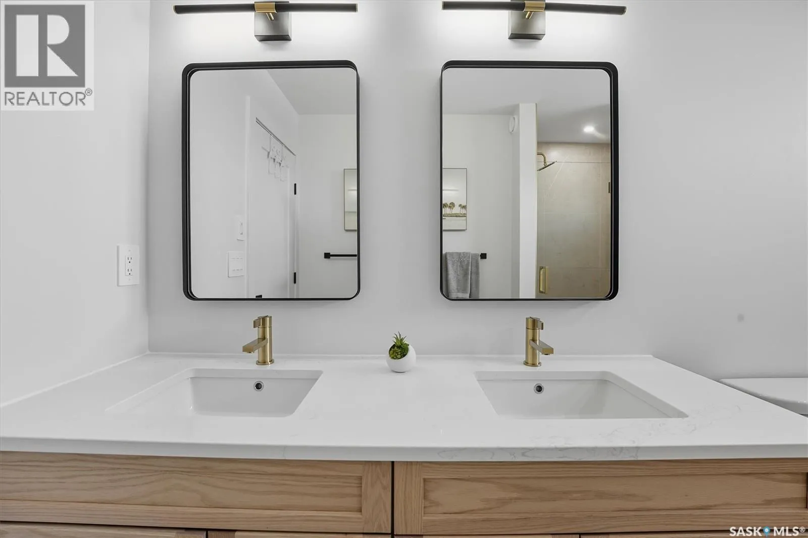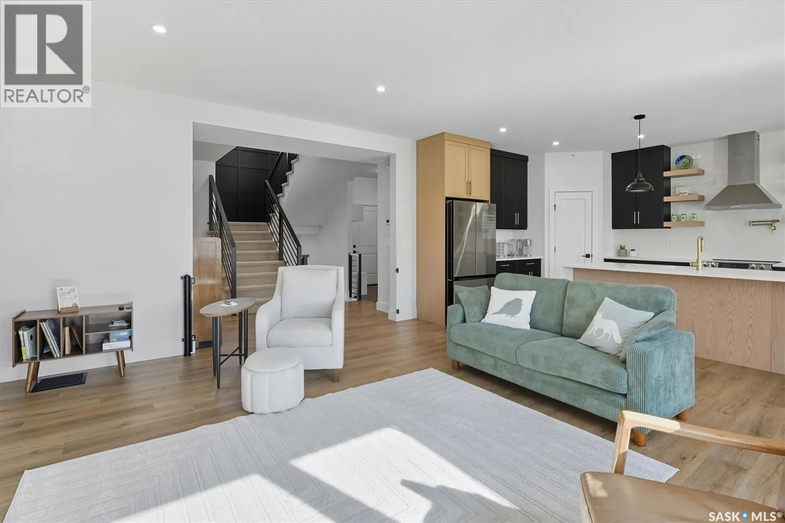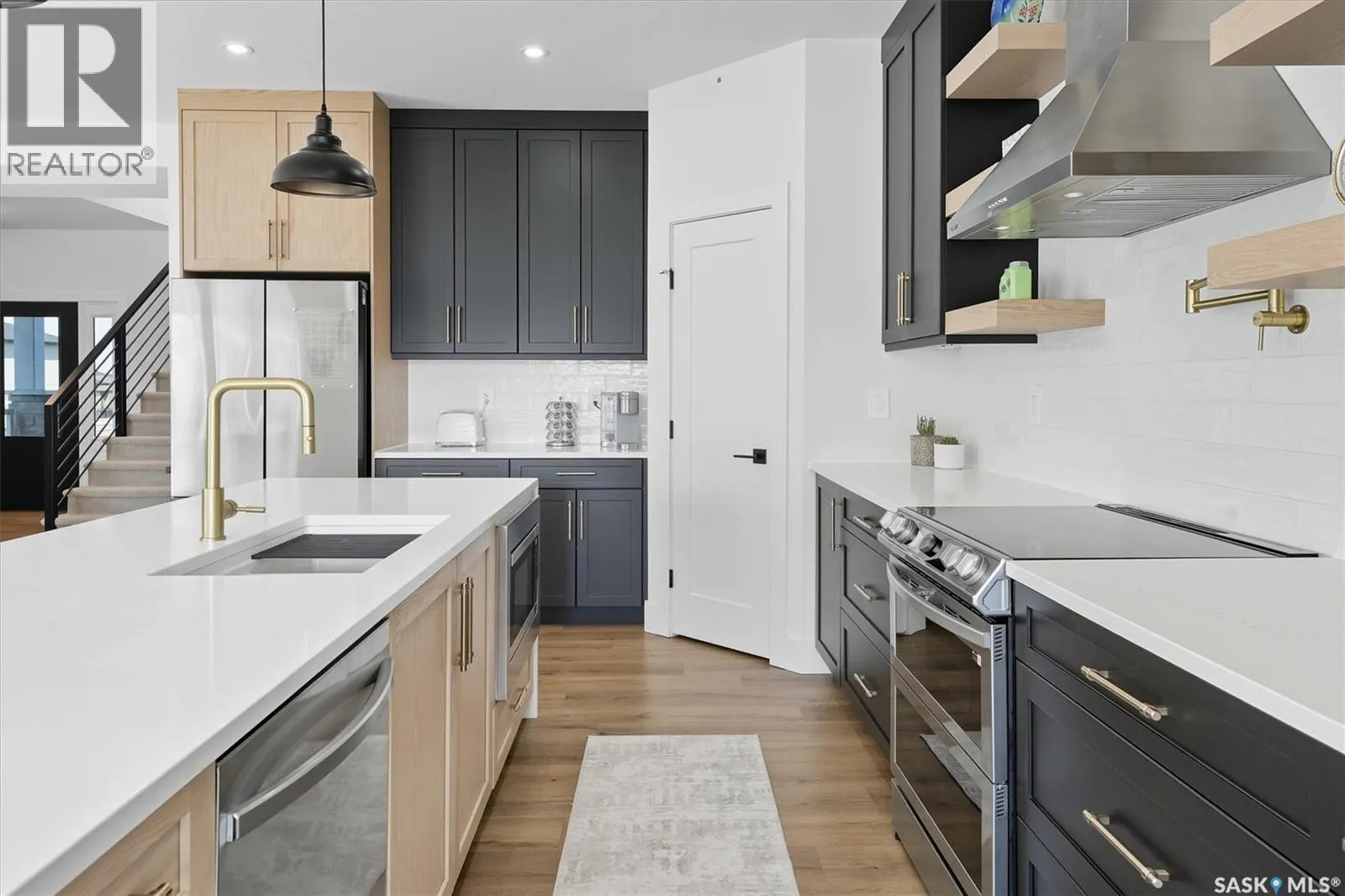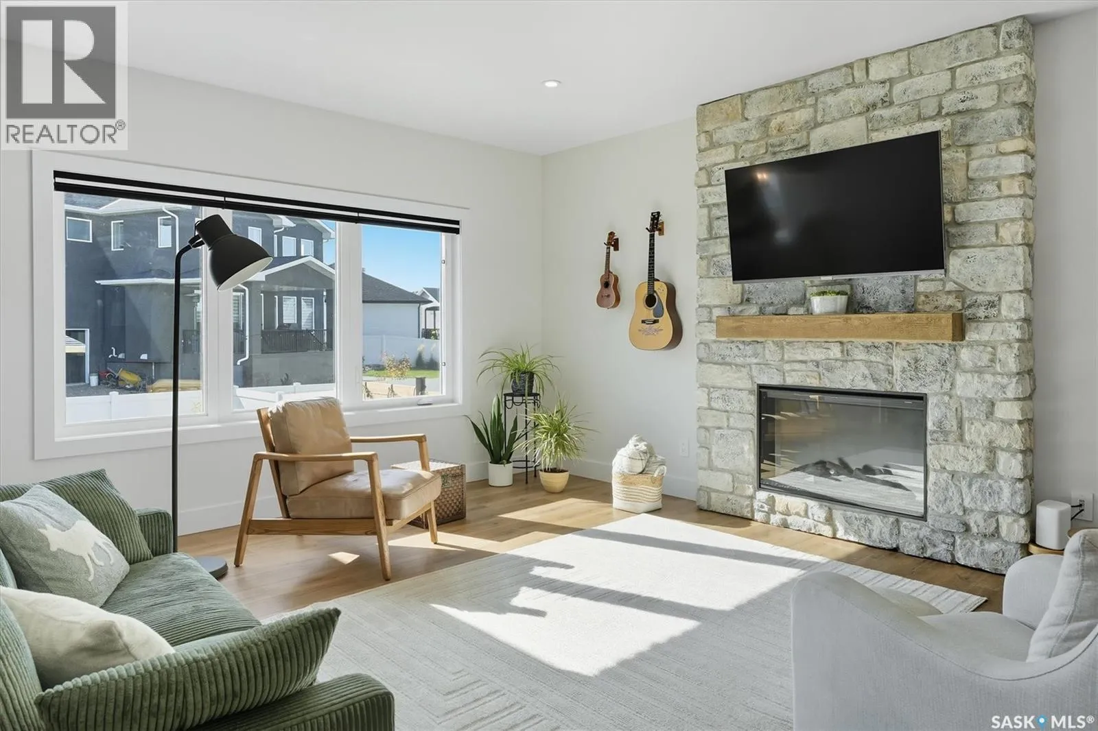 Welcome to this stunning custom-built home, where luxury and functionality meet in the heart of the sought-after Rosewood neighborhood. This impressive 2,000+ square-foot two-story home is a dream come true, especially for those who need space for their hobbies and vehicles. Step inside and be greeted by a spacious entryway that leads into an open-concept living area. The beautiful luxury vinyl plank flooring flows throughout the main floor, leading you to a bright living room anchored by a striking feature wall with a gas fireplace. The gourmet kitchen is a chef's delight, boasting extensive cabinetry, a waterfall quartz island, and top-of-the-line stainless steel appliances. Adjacent to the kitchen is a large dining area that provides a perfect space for gatherings and offers a view of the beautifully landscaped backyard. Convenience is key on the main level with a separate laundry room and a custom mudroom. Upstairs, the private primary suite is a true retreat. It features an oversized walk-in closet and a must-see ensuite bathroom, designed with a spa-like feel. Two additional spacious bedrooms and a full bath complete the upper level, offering plenty of space for the whole family. The fully finished basement adds even more living space, with a family room perfect for movie nights, two additional bedrooms, and a four-piece bathroom. The real showstopper is the massive triple tandem garage, which is finished, heated, and features an overhead door with access to the backyard. Outside, the home is just as impressive with a triple driveway, RV parking and a beautifully landscaped yard. The backyard is fully fenced and includes a deck with a natural gas BBQ hookup, making it an ideal spot for outdoor entertaining. This home is just steps away from walking paths and green spaces that lead directly to the nearby school. With its impeccable design and prime location, this is an opportunity you don't want to miss. (id:27476)