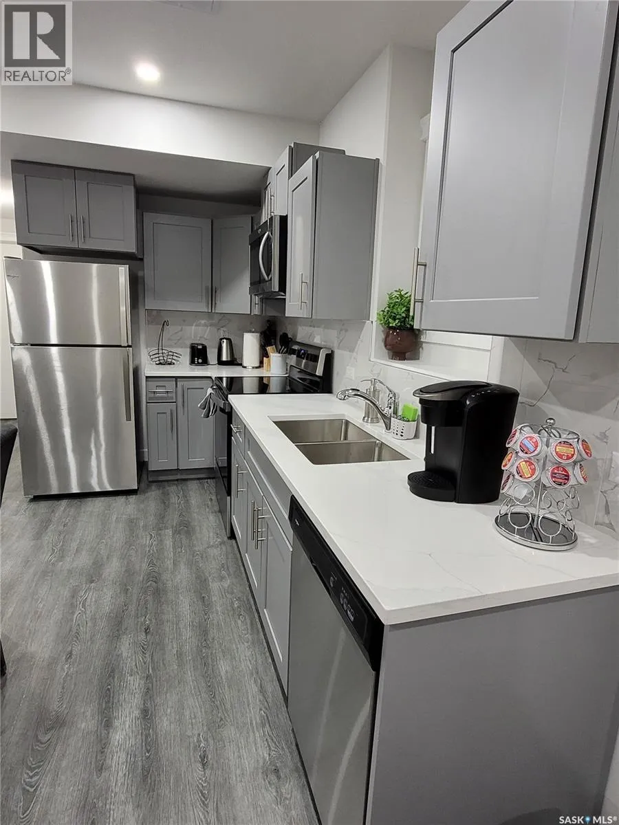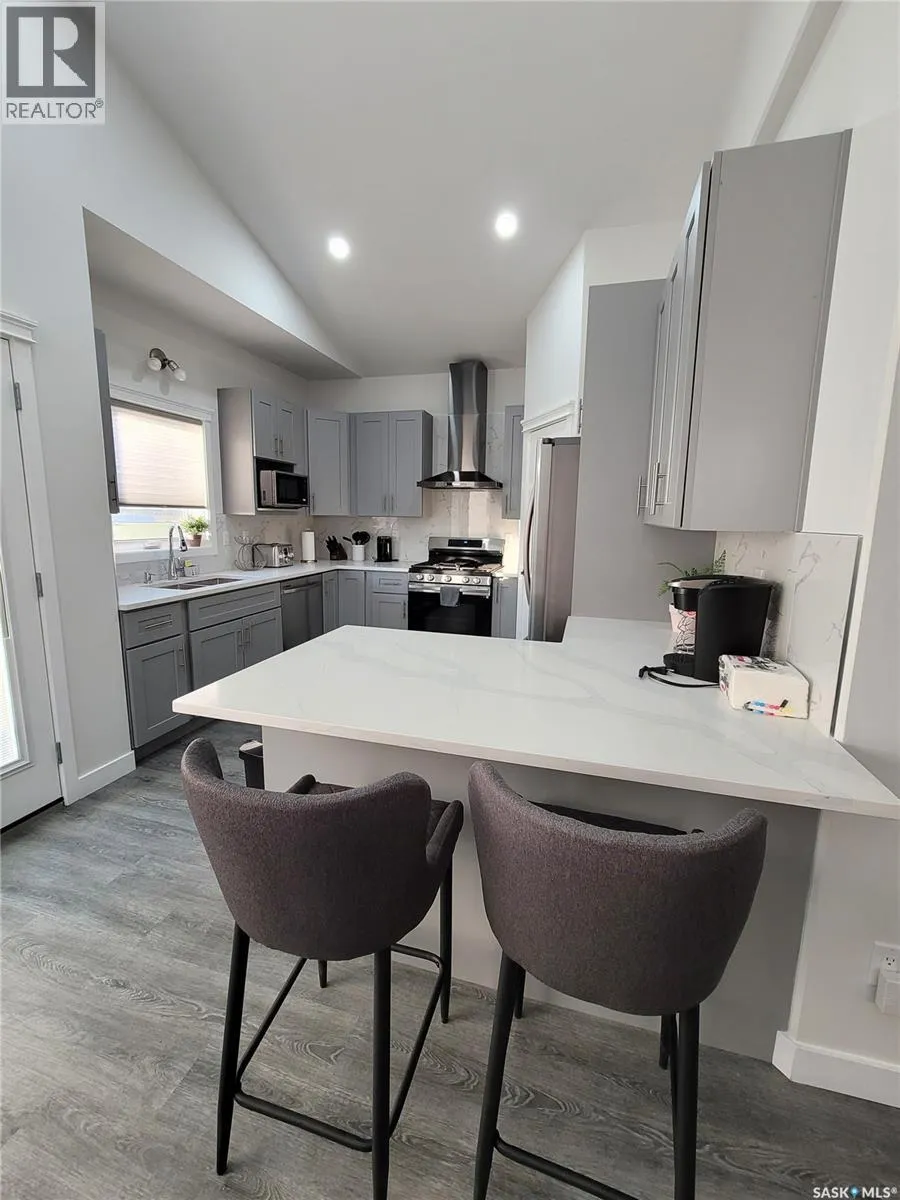 Beautiful modified bi-level on one of Kensingtonâs largest lots at 539 Ells Crescent, featuring vaulted ceilings, a sun-drenched dining area, luxury vinyl plank, quartz counters, and upgraded appliances with a gas stove; the main home offers three generous bedrooms and three baths, plus a fully finished legal two-bedroom suite with matching high-end finishes for instant rental income. Outside you'll find a concrete driveway, thoughtfully landscaped front yard, and a northwest-facing deck perfect for long summer evenings, dramatic sunsets, and possible northern lightsâan exceptional blend of space, style, and income potential. (id:27476)