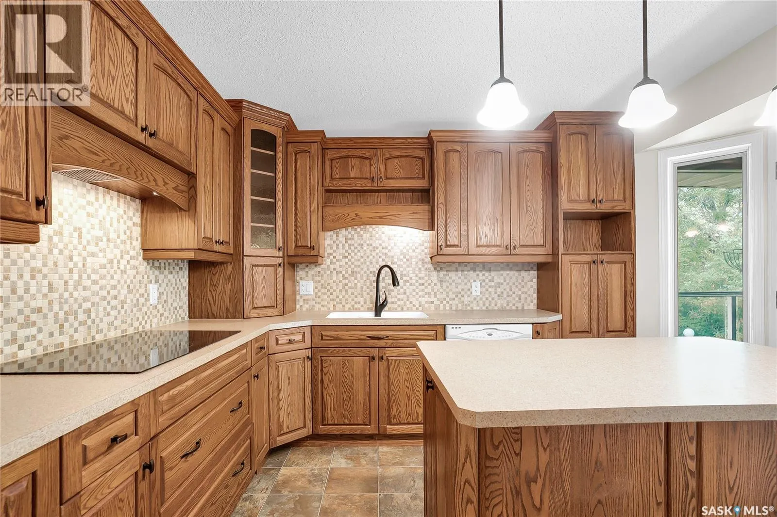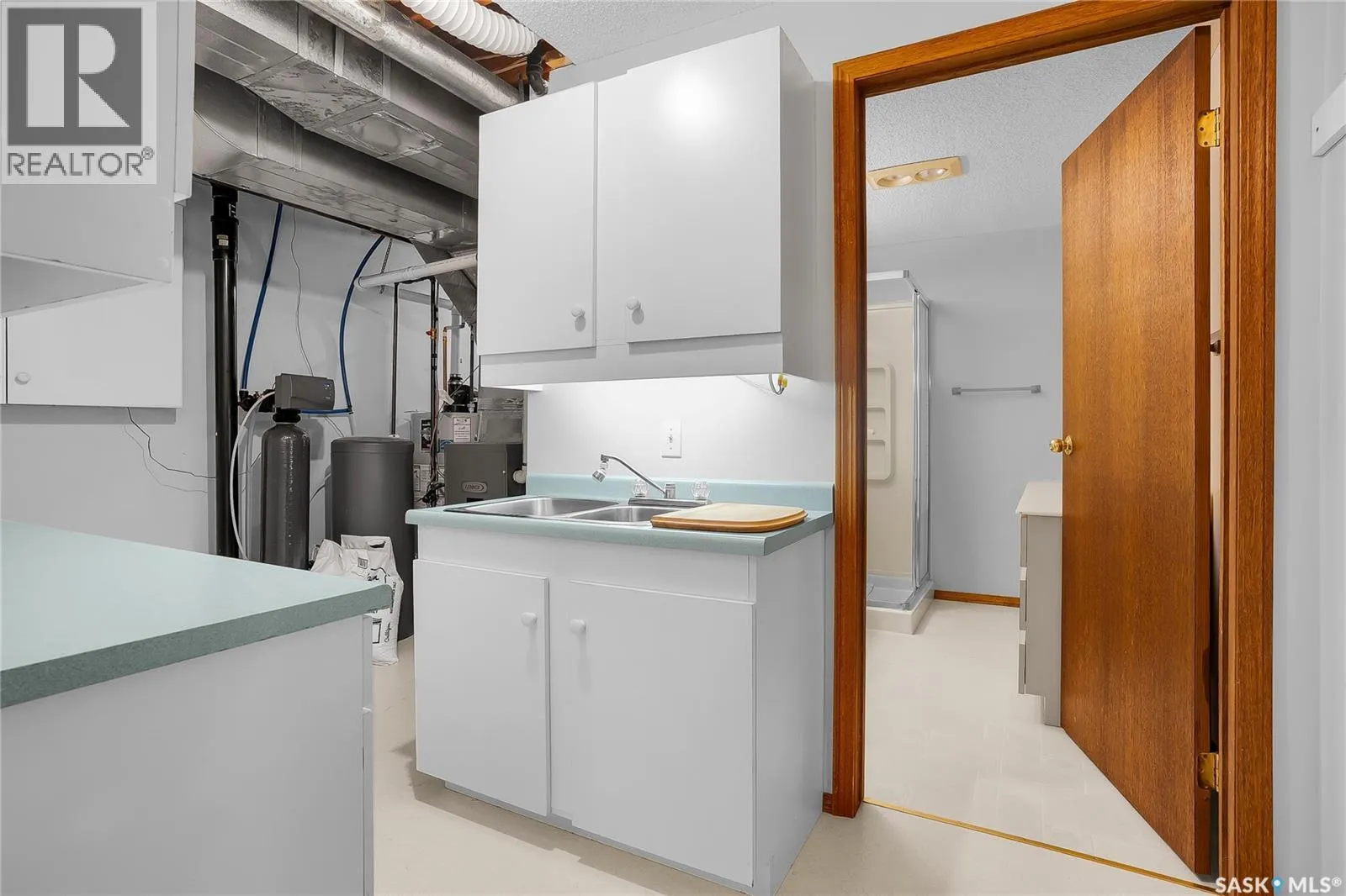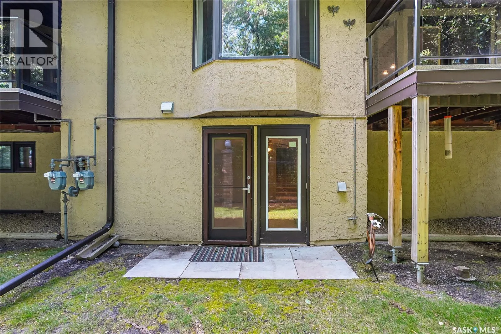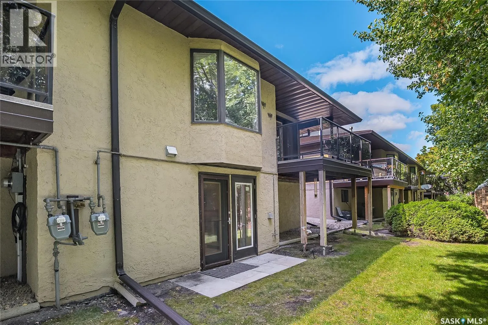 Woah! Stop the car! A walk out bungalow condo with a 2 car garage in a gated community? YES! This is a 1,488 sq. ft. stunner offering the kind of quiet, secure lifestyle that people wait years to find. Once inside the gates youâll discover a welcoming environment that feels more like a private retreat than just a development. A true highlight of this property is the full-sized 20x20 double garage, a rare and highly valued feature in condo living. Inside, the main floor is designed for ease and comfort, complete with main floor laundry, an updated, meticulously cared for oak kitchen, and thoughtful upgrades including a newer wall oven, exterior venting range hood, central vac, and water softener. The oversized deck off the kitchen has been recently resurfaced, offering an exceptional outdoor space with natural gas hookups for a BBQ or fire table which is perfect for entertaining or simply enjoying the serenity of your surroundings in bliss filled privacy. The spacious walkout basement opens directly to a lush green backdrop of mature trees and Meadowlark Park, creating a natural extension of your living space. A gas fireplace warms the basement family room on cooler evenings when company is over. The large lower-level workshop offers versatility of use for tinkering on projects or storage, plus the flexibility to take some of that space to easily divide it into an additional large bedroom with a quick wall. Living here means more than just a beautiful home, itâs about the lifestyle. A peaceful community where neighbours value privacy, security and a sense of belonging, all while enjoying convenient access to Circle Drive, shopping, dining, and essential services nearby. This is where comfort, convenience, and exclusivity decide to call home and it's ready for you. (id:27476)